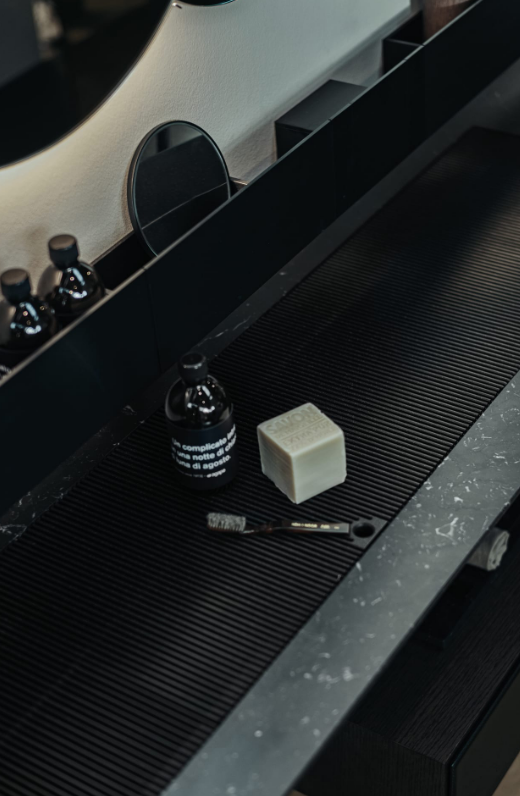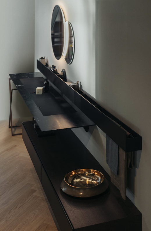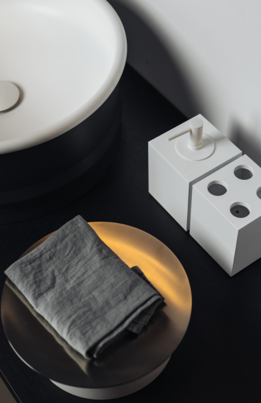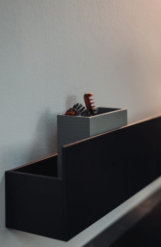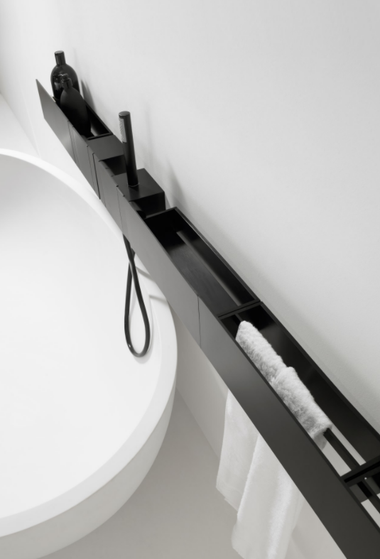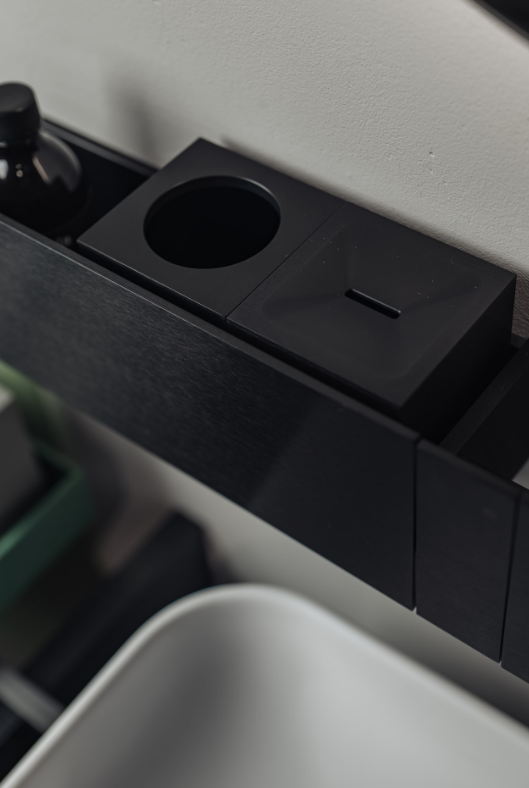 Accessories made from brushed anodised aluminium in black finish, to be matched with the range of taps with the same name. Due to their unique shape, we recommend that all wall-mounted accessories are fixed to a perfectly flat surface.