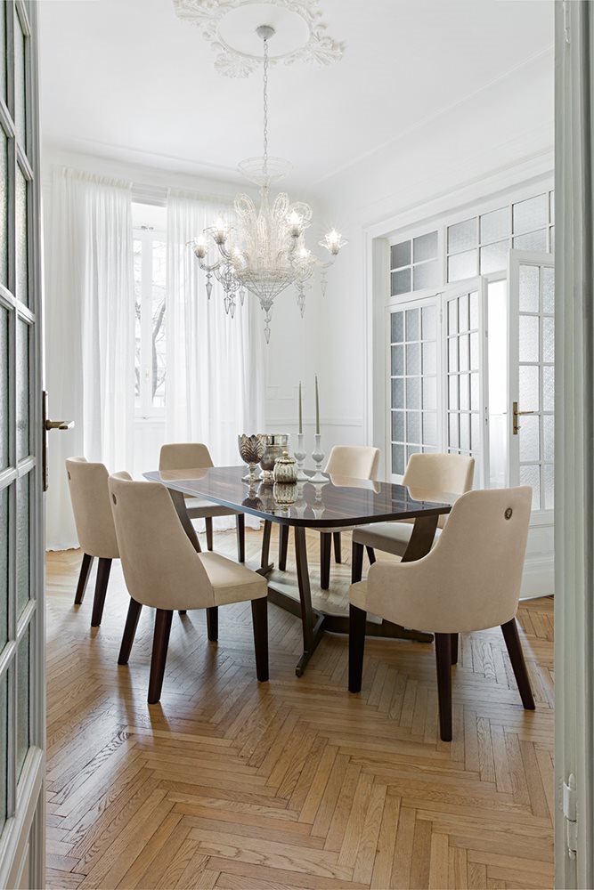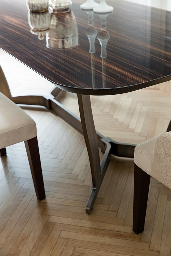The matched metal base and rich veining in the ebony make the Bogart table quite unique, ideal for classic and modern interiors.