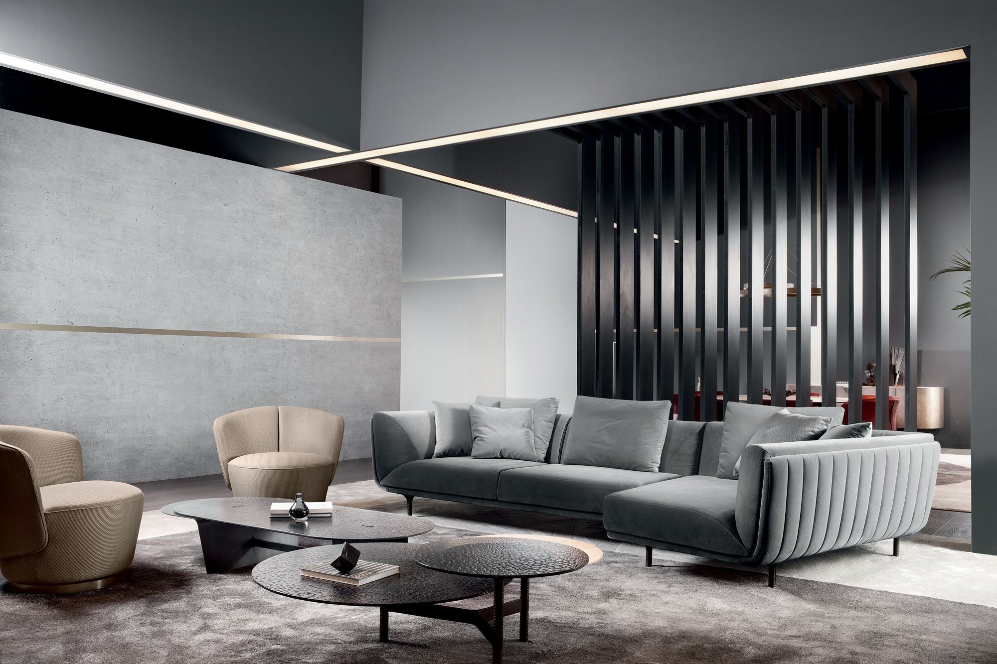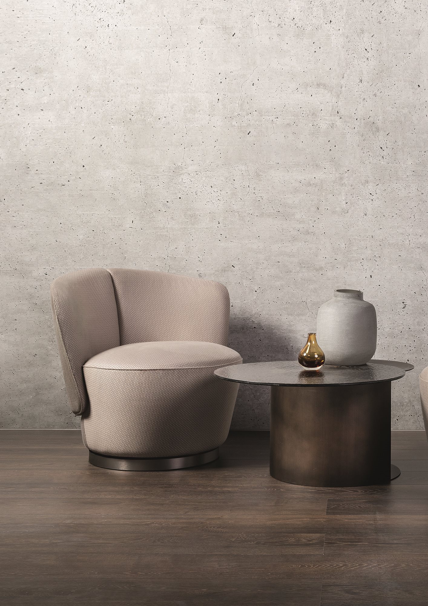Glass and metal combined create unexpected reflections that reverberate in the tables and in the console of the Premiere collection.