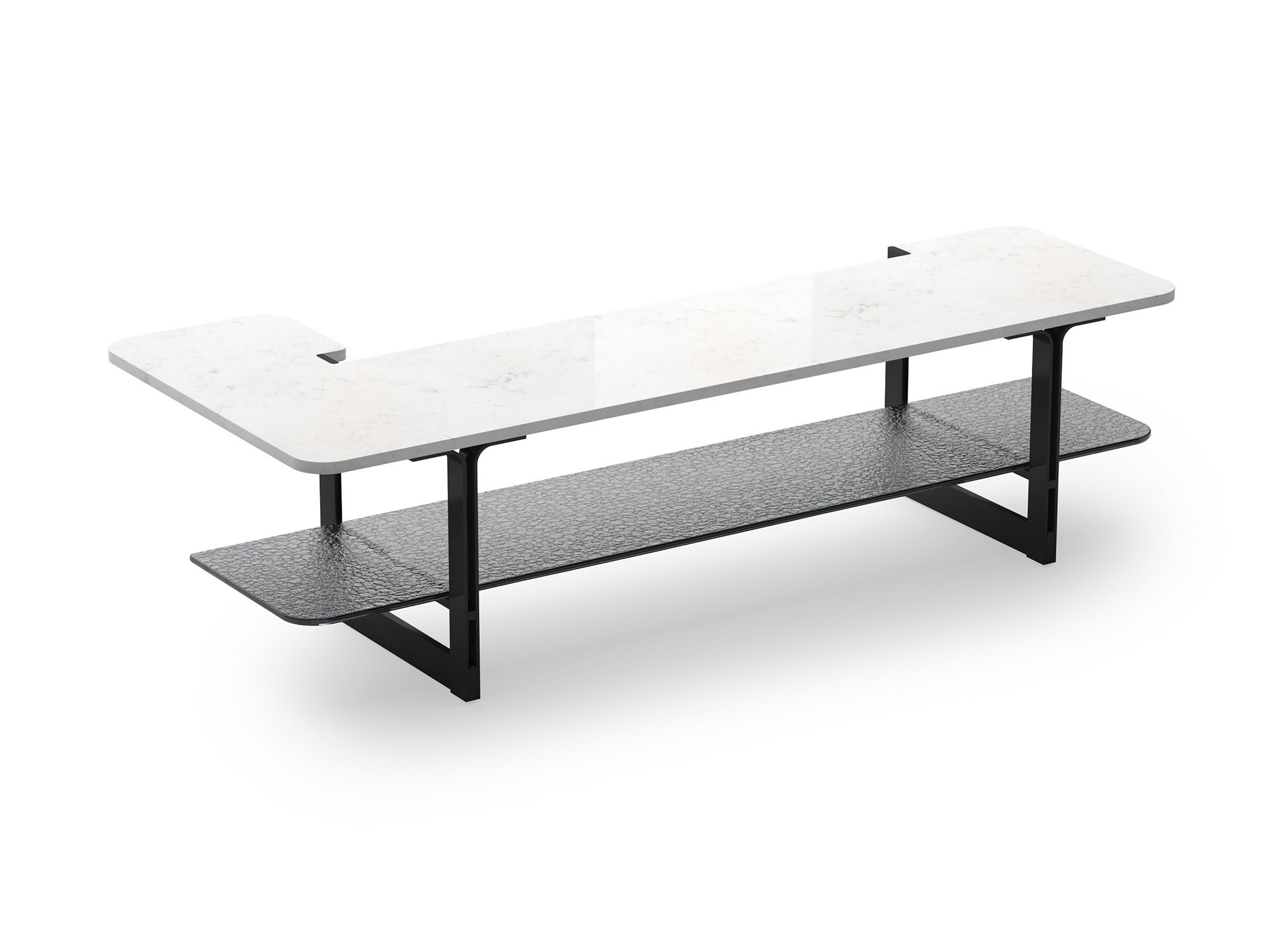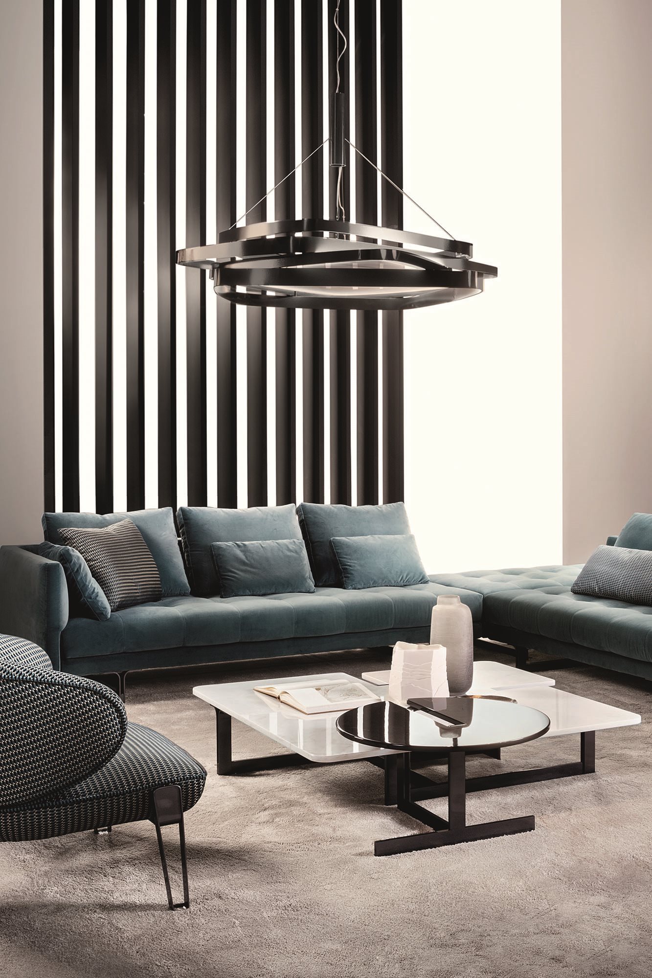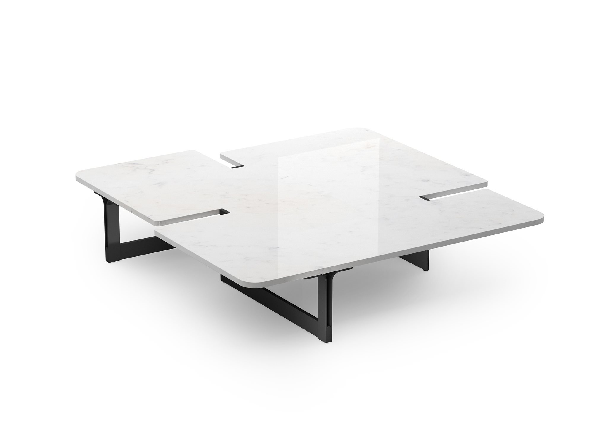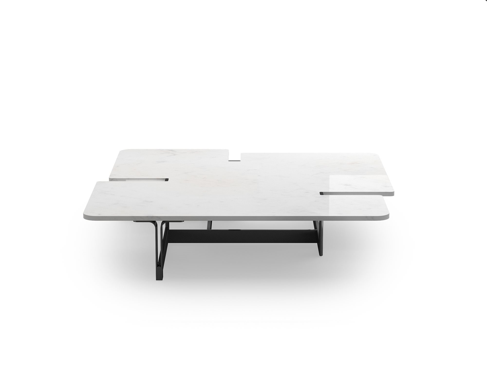The geometric composition and the cuts in the tops are the distinctive features of the coffee and side tables in the Valery collection. Carefully designed with refined craftsmanship, especially reflected in the particular anchoring of the metal frame.
