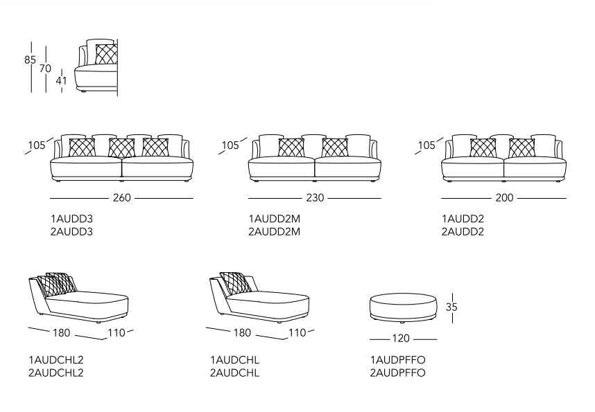 Sofas VIVIEN / GRACE / AUDREY are characterized by rounded and romantic lines. They are the result of a perfect combination between a classic and contemporary style. The high smooth back cushions VIVIEN and the special back cushions with diamond sewing of the models AUDREY and GRACE make them unique pieces, with three different souls able to satisfy the needs of the most demanding interior designers.
