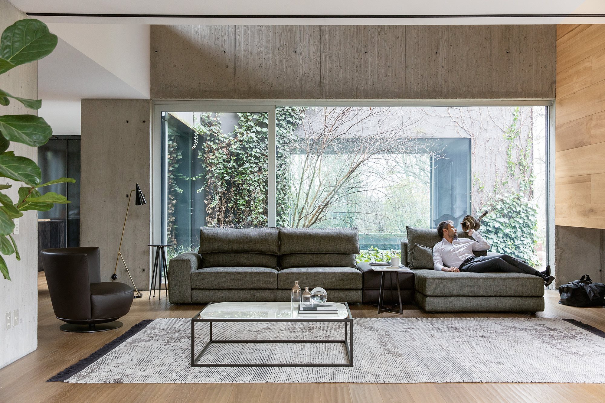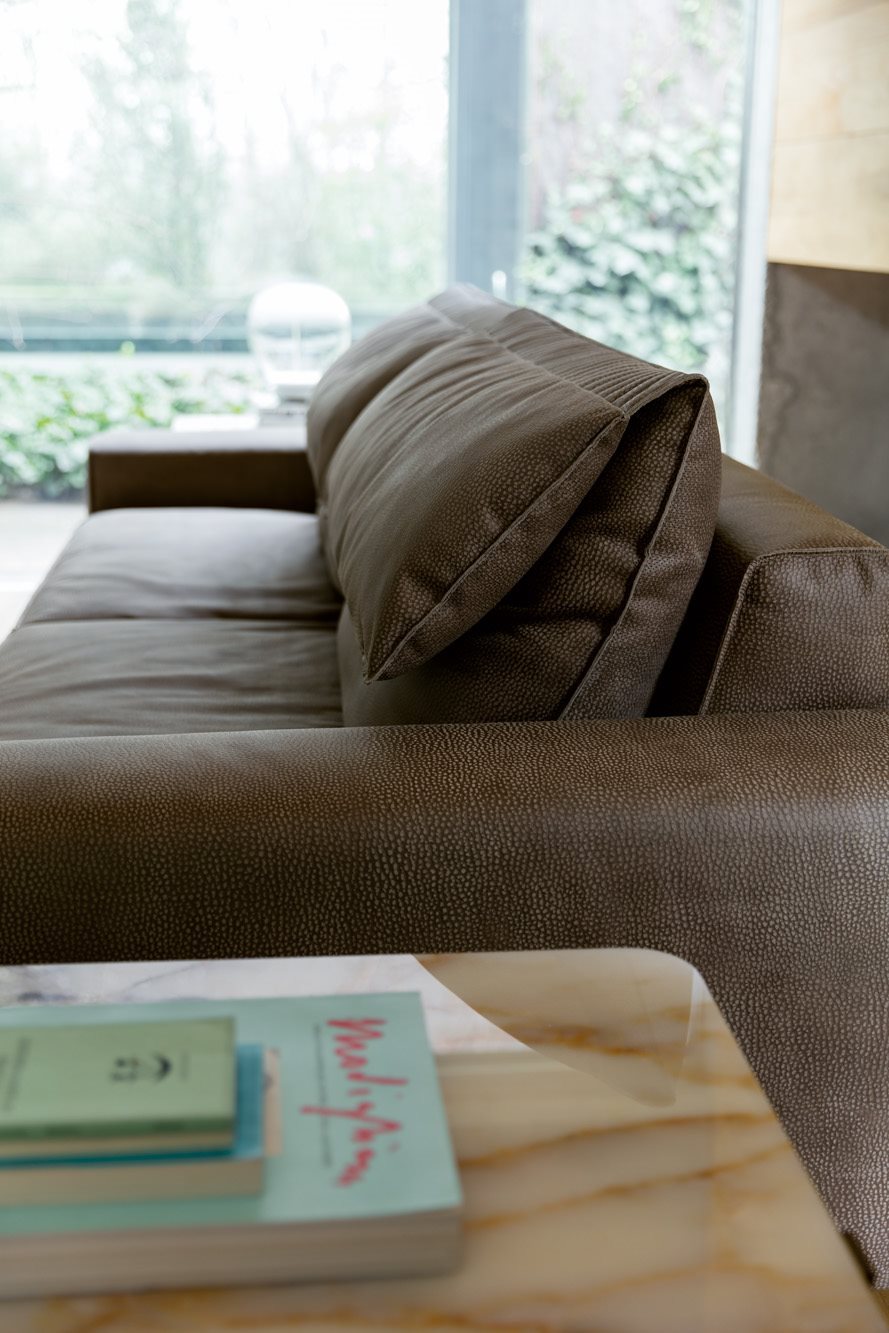 The Game seating system combines an ordered and essential design with an enveloping softness and a unique level of personalization. An elegant quilting stitching, inspired by the world of leatherworking, divides the backrest cushion in two padded parts. The smaller part functions as lumbar support or head rest, depending on how the cushion is oriented: the user can create "his" ideal sofa, achieving maximum comfort in any situation, from relaxing to reading to conversation. The system also includes a hassock and elements with low backrests, which, when combined with the standard elements, create original and adaptable compositions for any space.