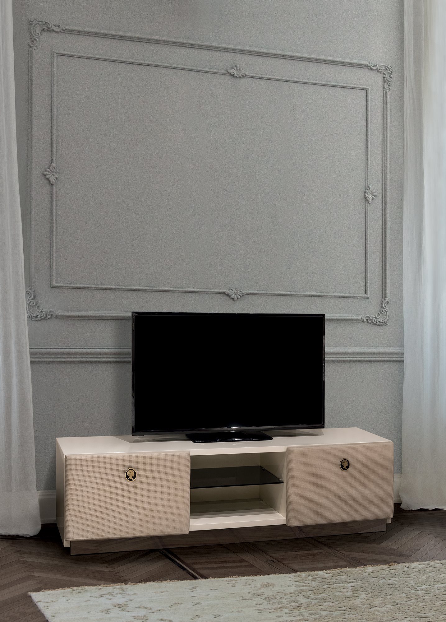Jasmine is a family of refined storage units perfectly interpreting the new trends of contemporary living. The drawers are covered in printed leather with weave effect that lends the elegance and style typical of superior Italian leatherwear to the entire collection.