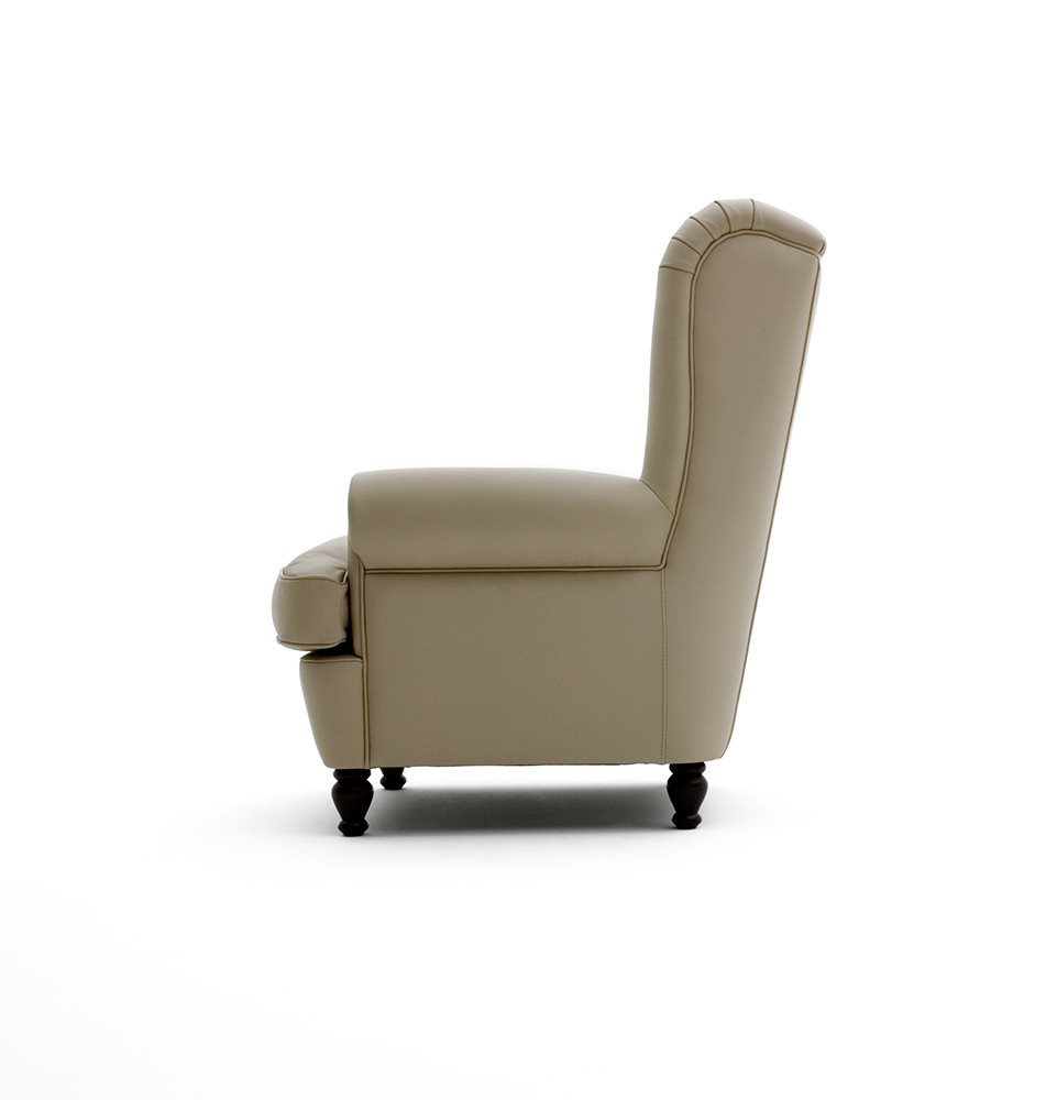 Poltrona e pouff. Piedini in legno finitura mogano, h. 12 cm.