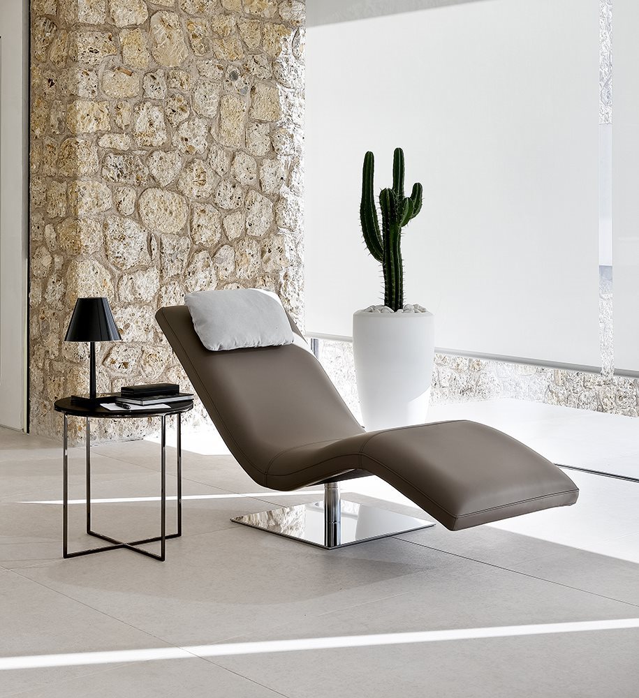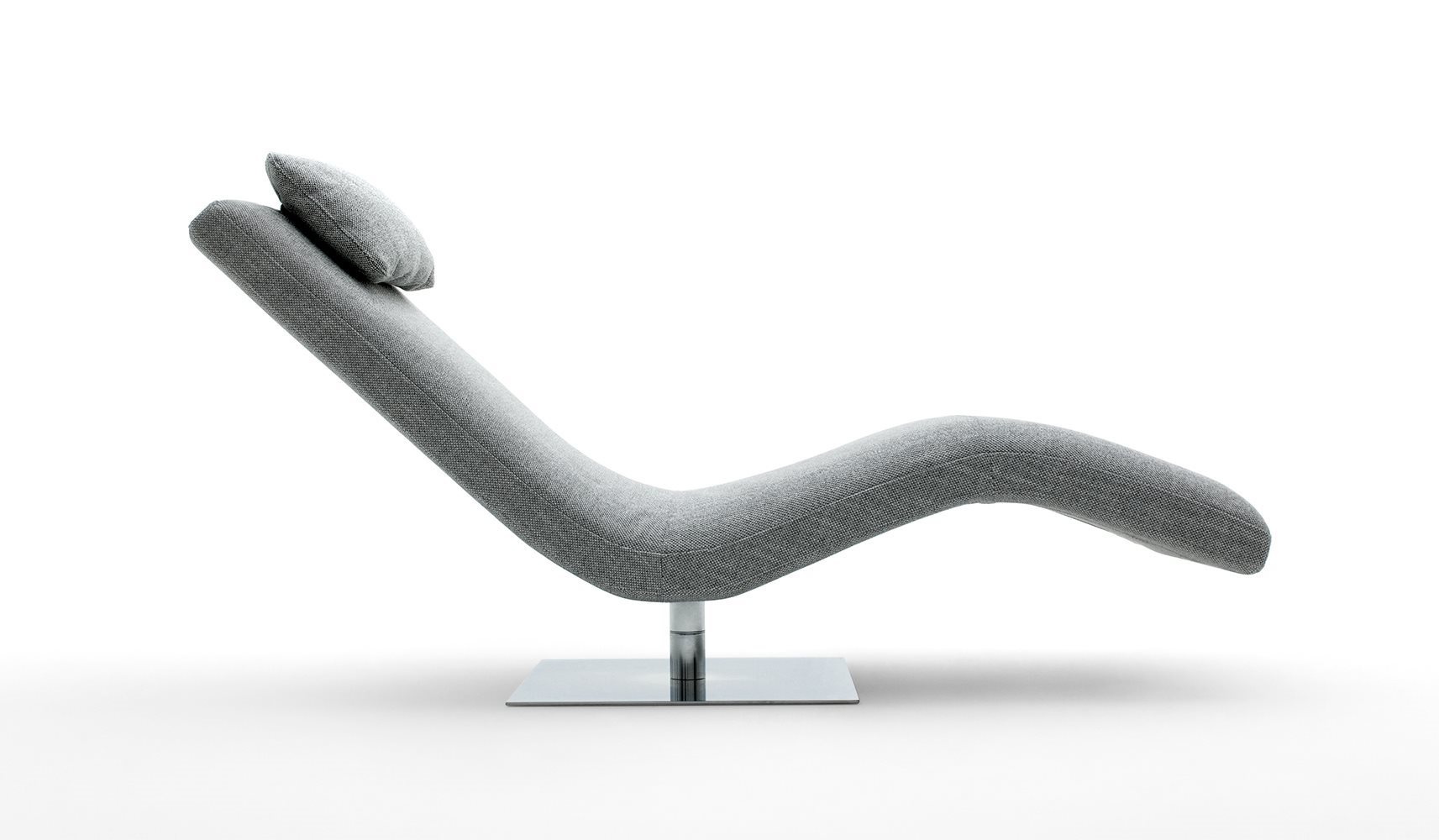 Chaise longue. Swivel chaise longue with headrest. Chromium plated basement fix or swivel.