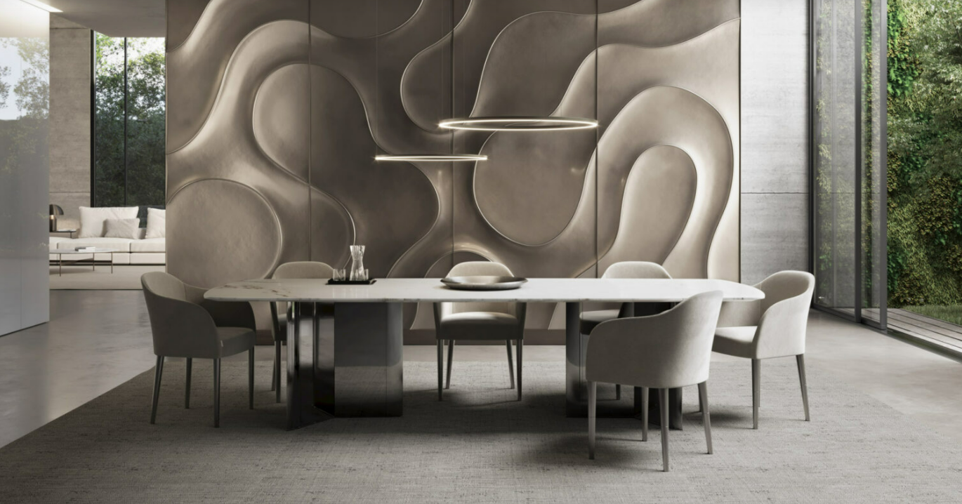 Relief lines forming an abstract and fluid landscape. a curvilinear, undefined trend that highlights its contemporaneity.