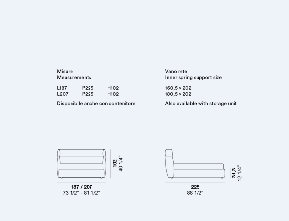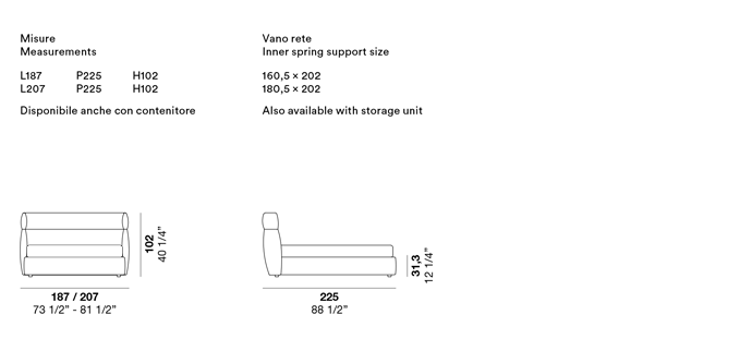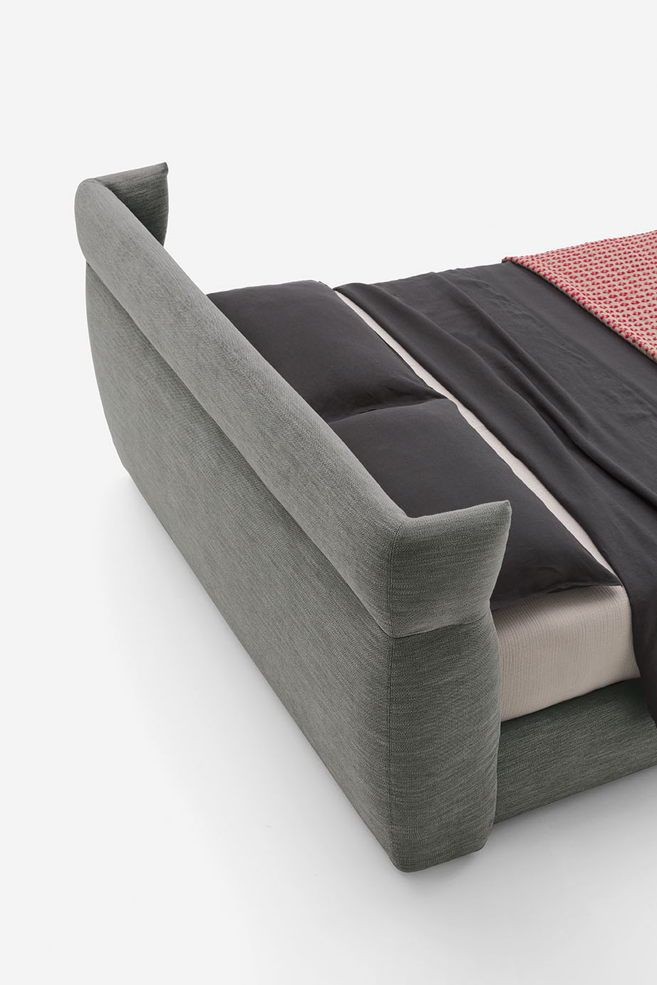 The Oregon 2.0 is a modern designer upholstered bed that stands out for the particular shape of its headboard with side parts that create an aesthetic and functional effect of continuity.
