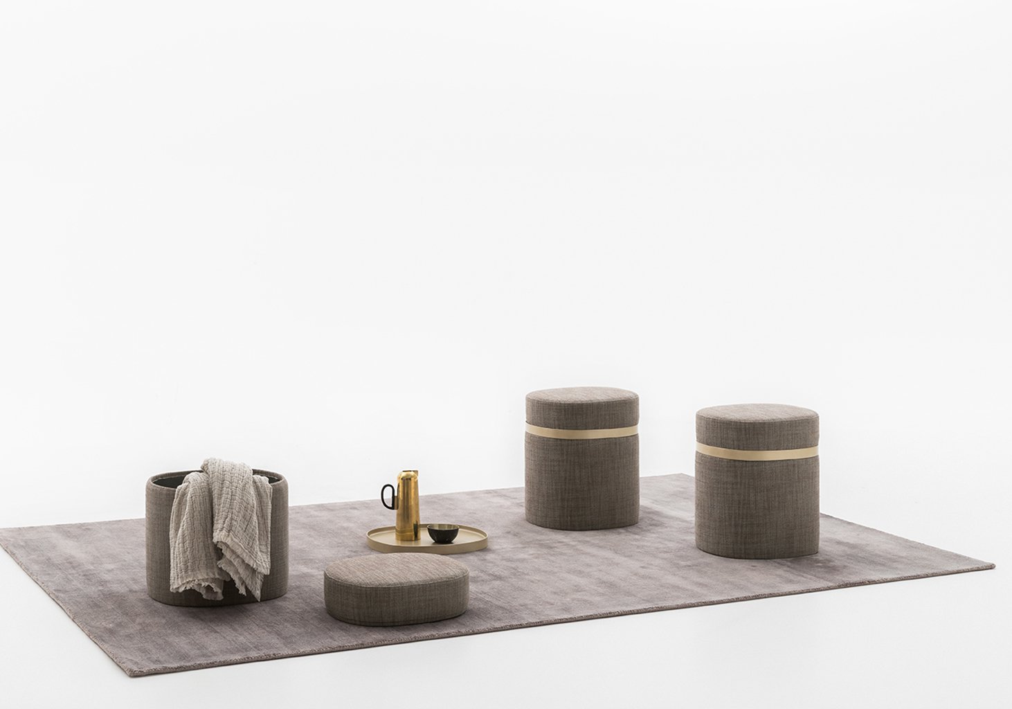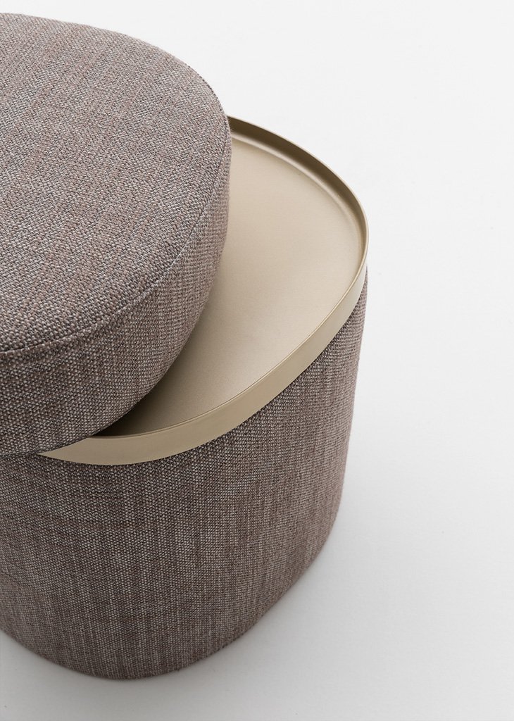 Nobu is an upholstered storage unit with a removable cushion that conceals a rigid polyurethane tray.