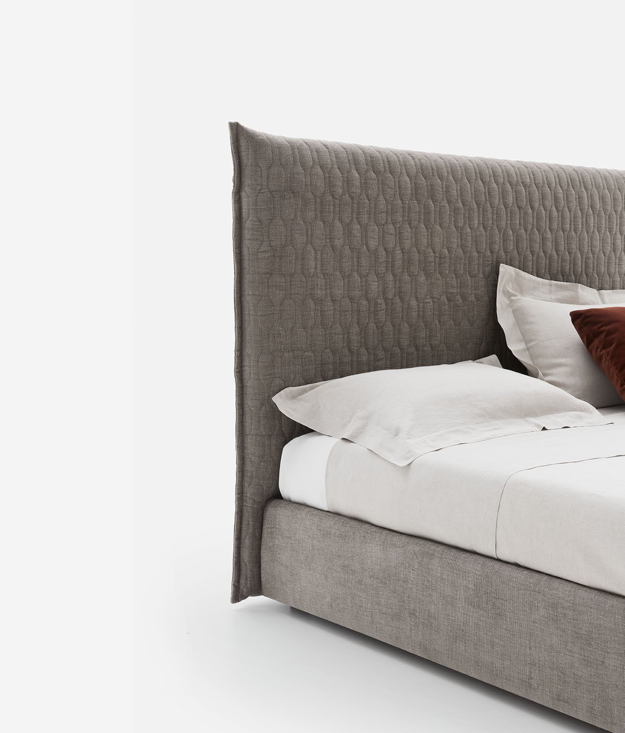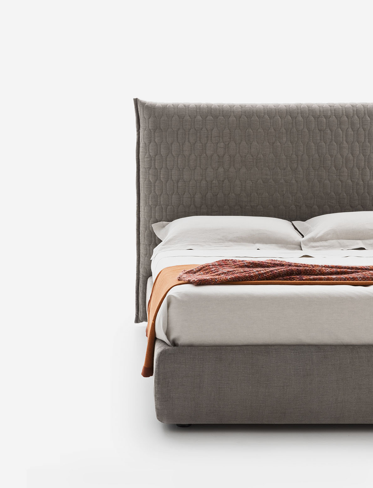 Allen 2.0 is a designer upholstered bed with removable cover that features a tall headboard with attractive stitching in a hexagonal pattern. In a wide choice of sizes, the Allen 2.0 upholstered bed is also available with storage.