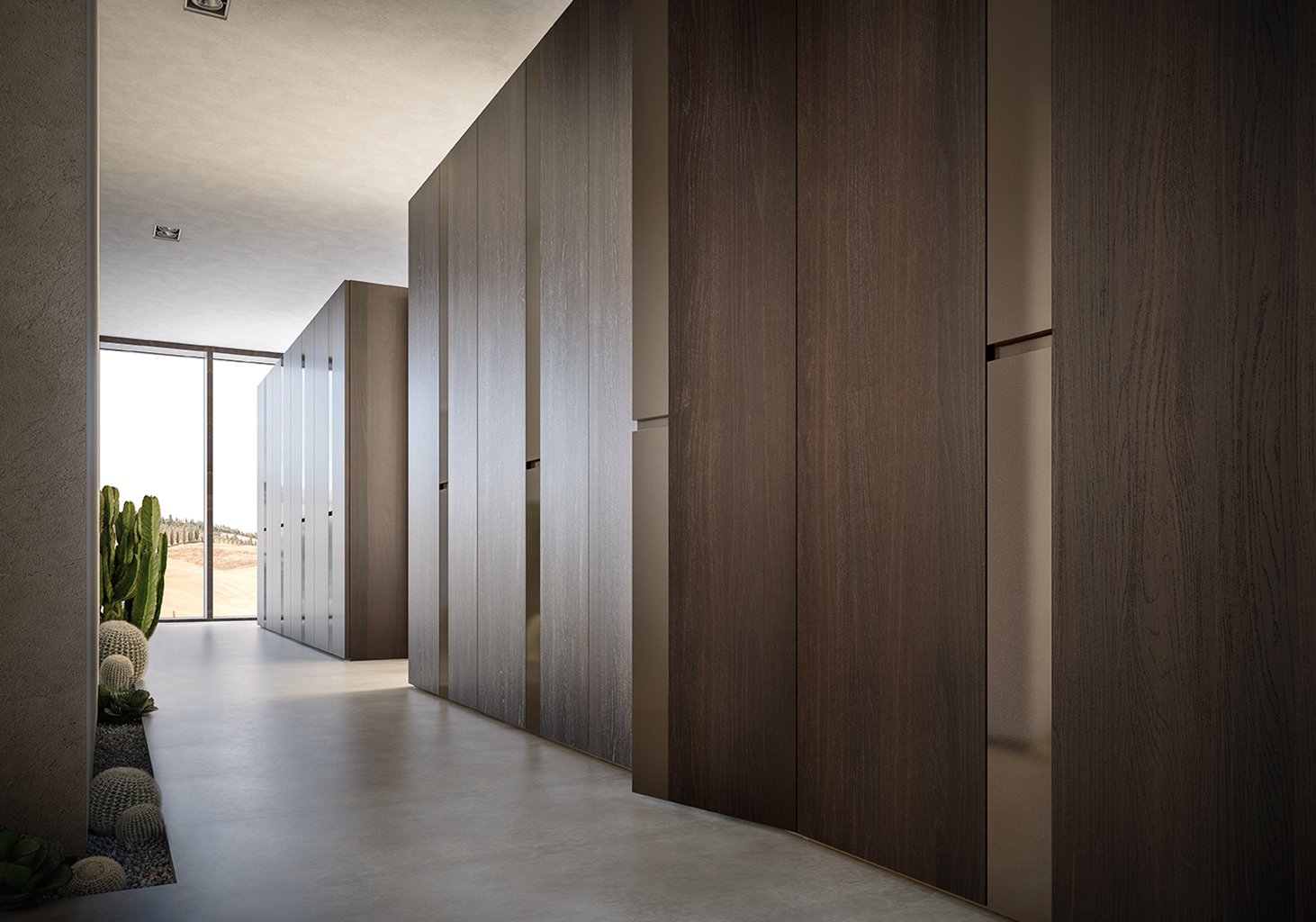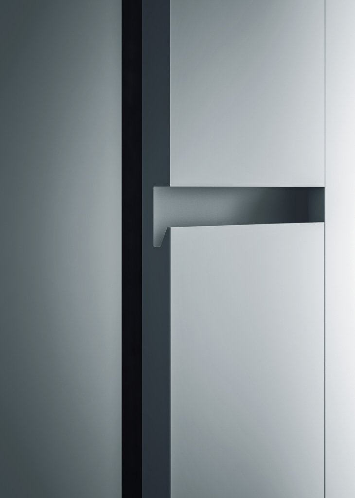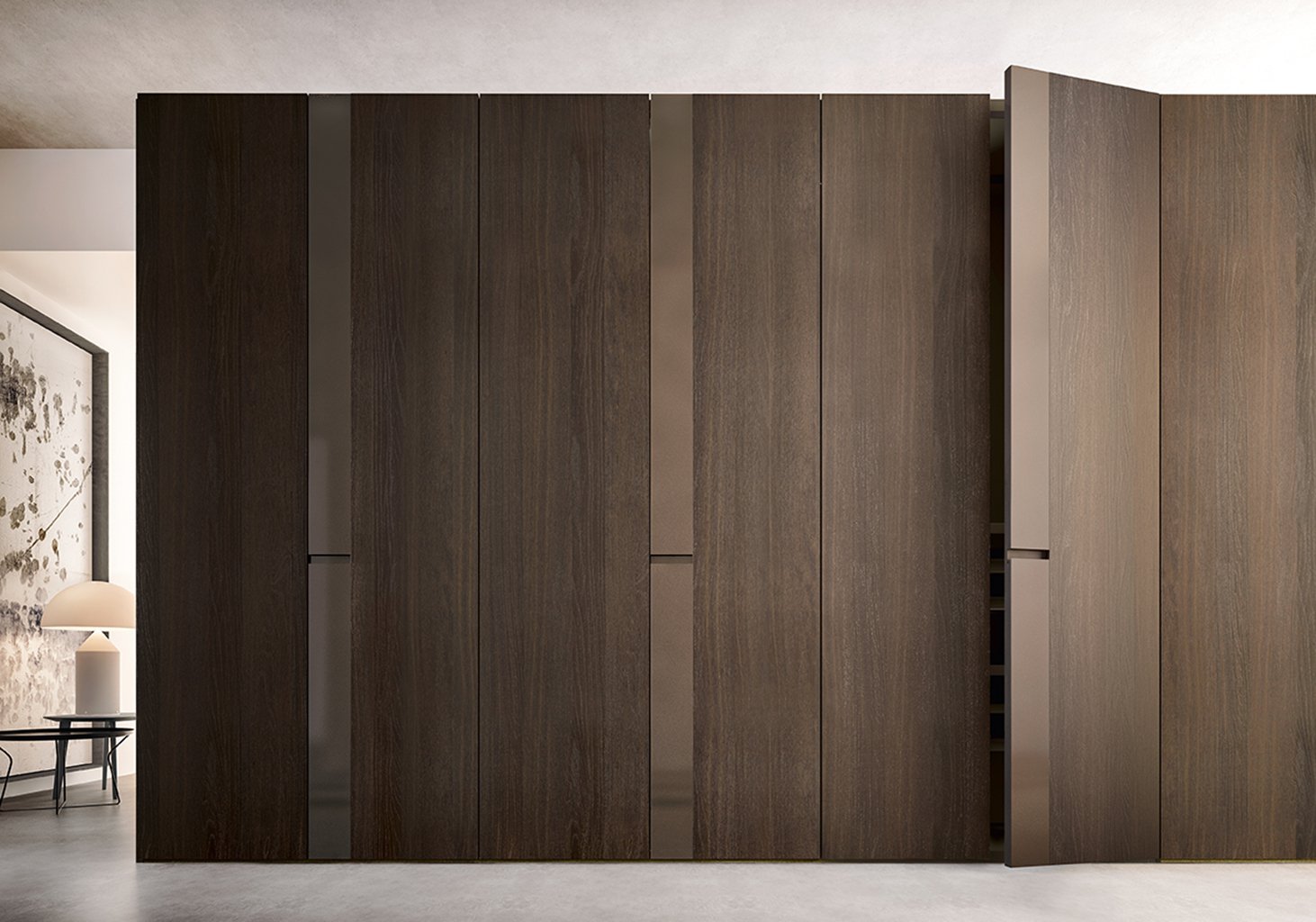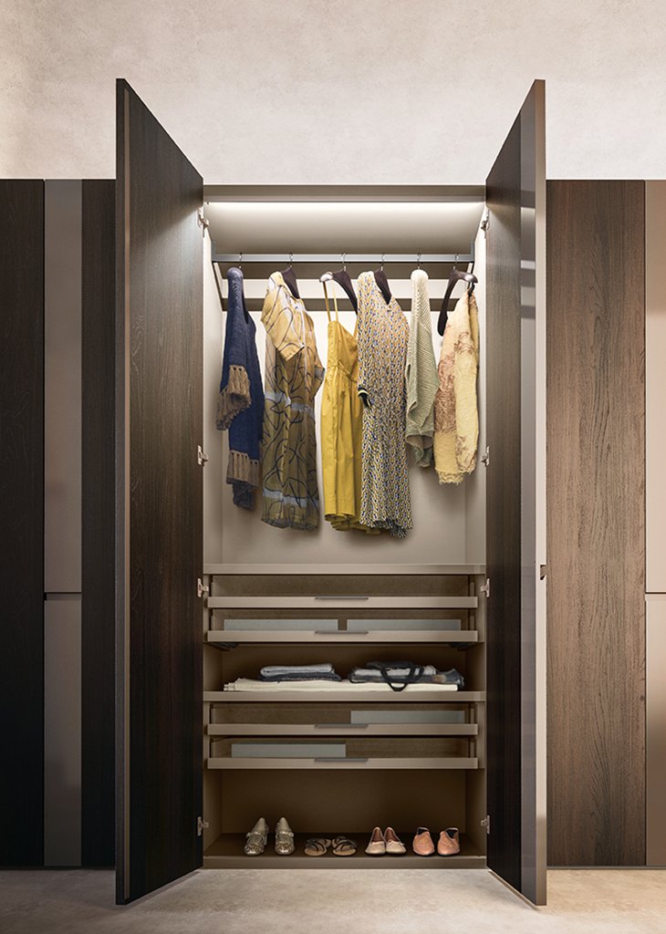 The design of the door of this modern designer wardrobe is distinguished by the two contrasting strips that make up the door panel.