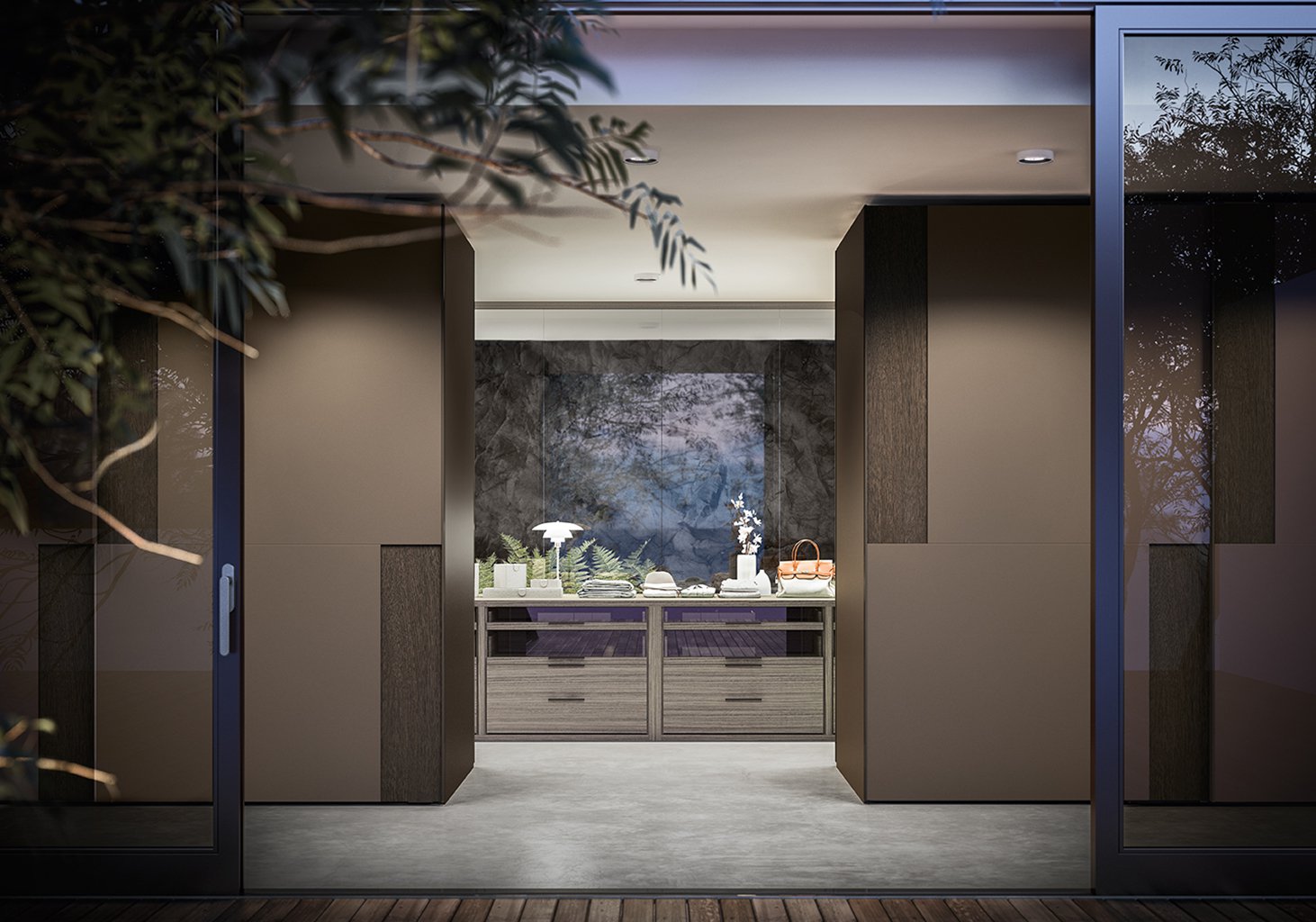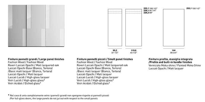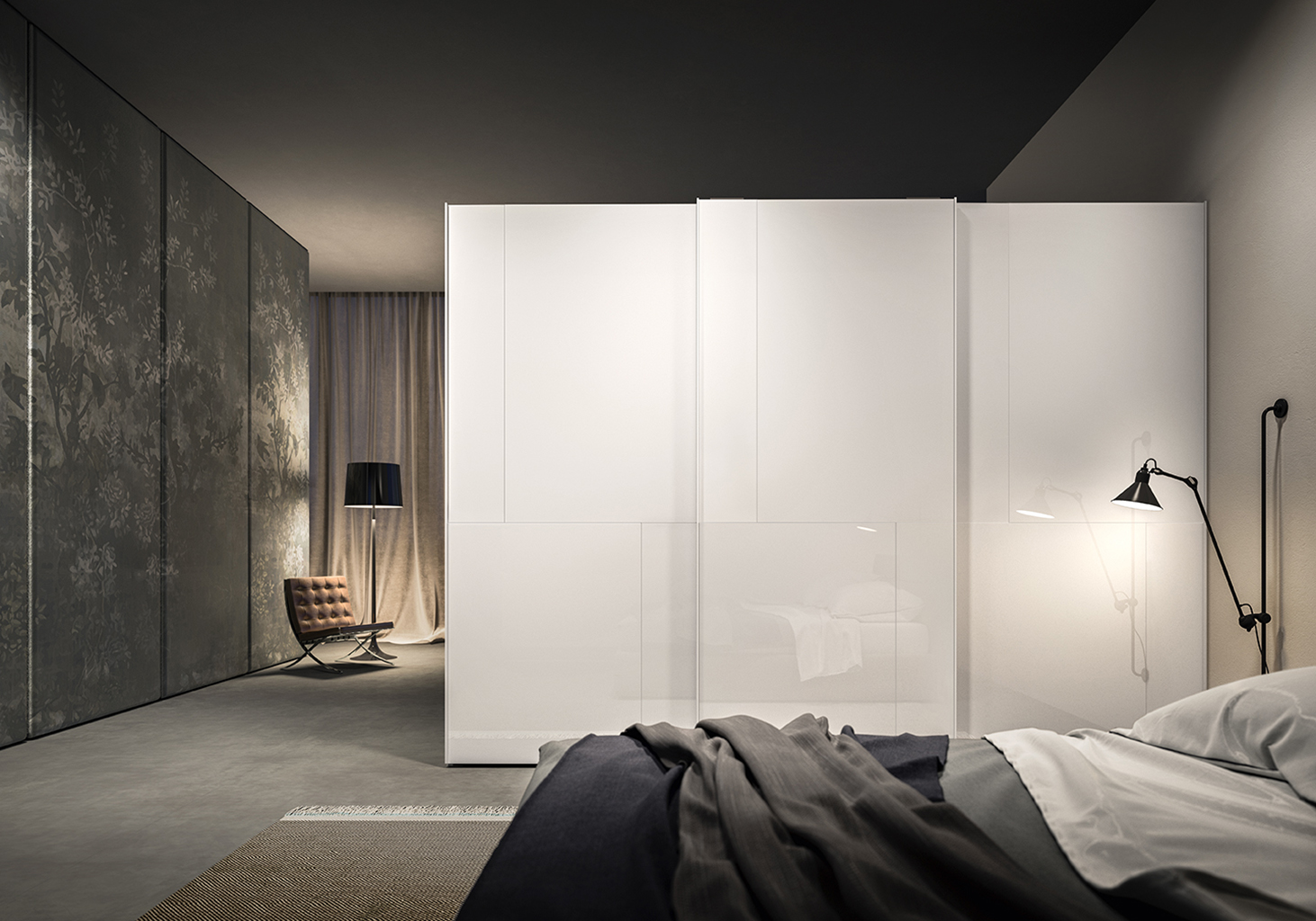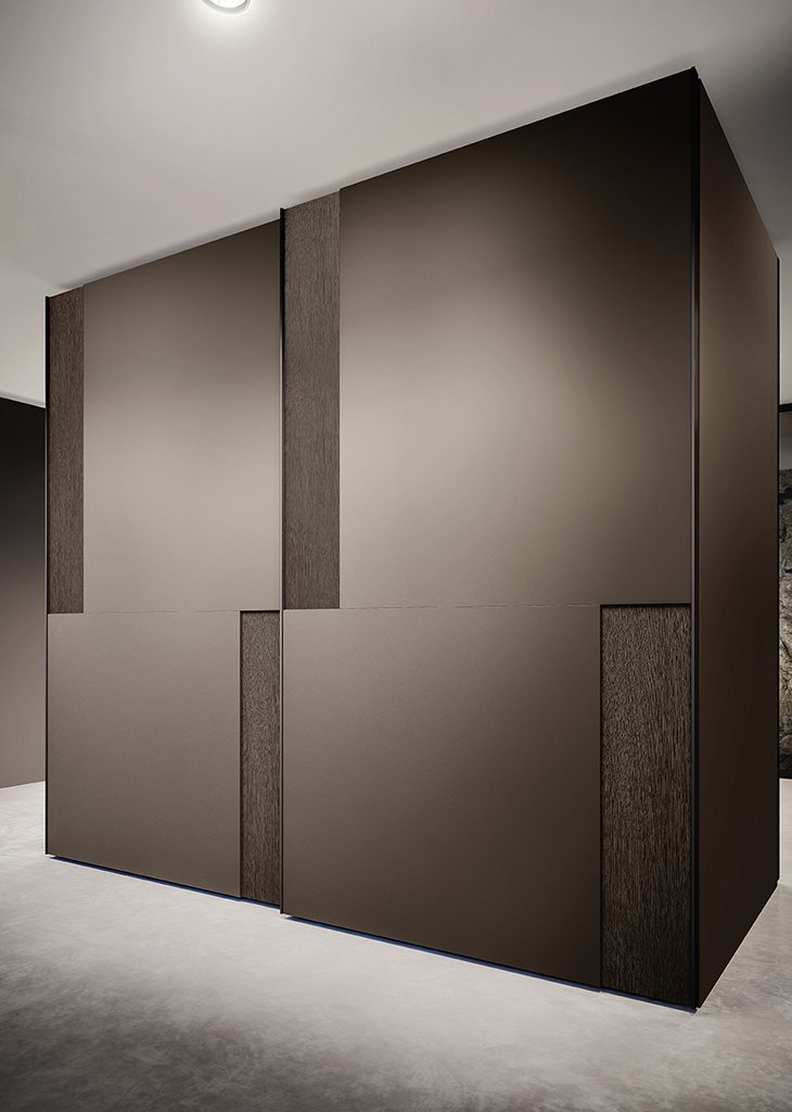 Rubic is a modern wardrobe with a sliding door that features the juxtaposition of panels of different thicknesses. The combination of contrasting finishes creates further pleasing visual and tactile effects.
