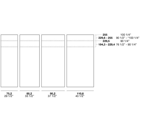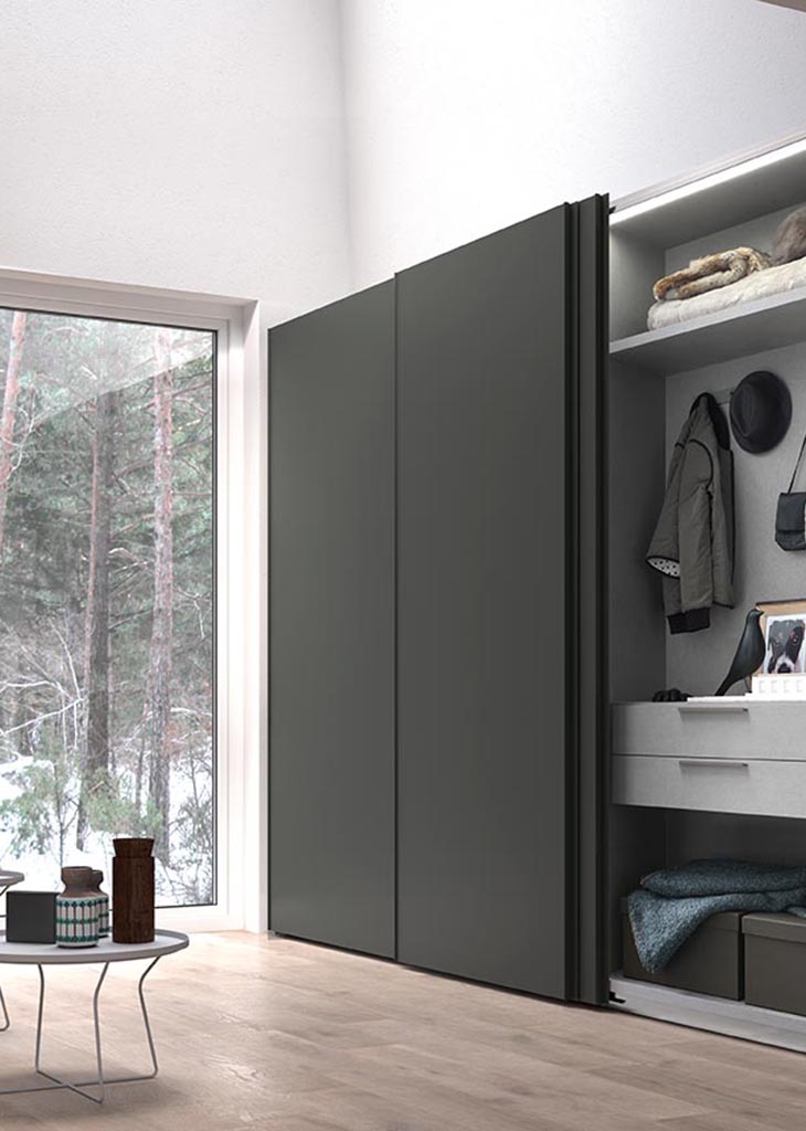 Available in swinging and sliding versions, it can also be combined with modules with drawers with the groove profile running horizontally.