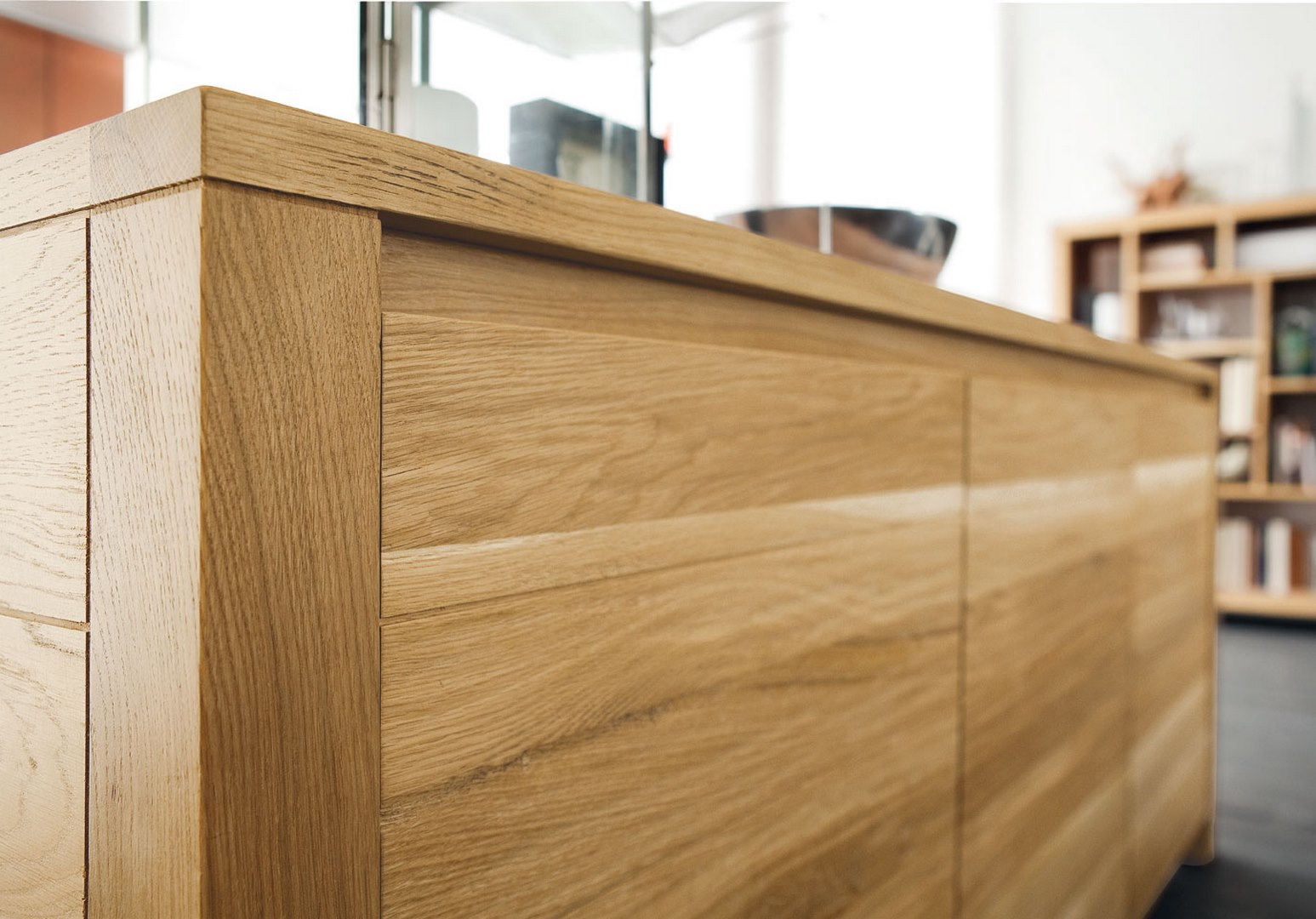 In the Eco Natural Living collection, we have the two-hinged door sideboard ECO, with one drawer and one deep drawer,in Bianco oak finish.