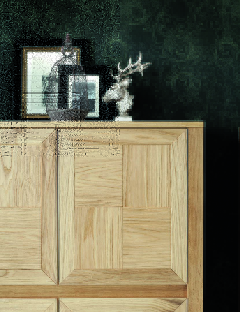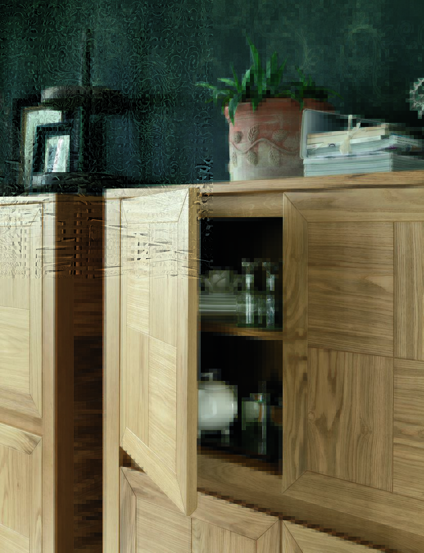 The unit with four wooden hinged Break doors, in Alaska oak finish, is put in evident by the A1, Cromia 2, and wallpaper in the background.