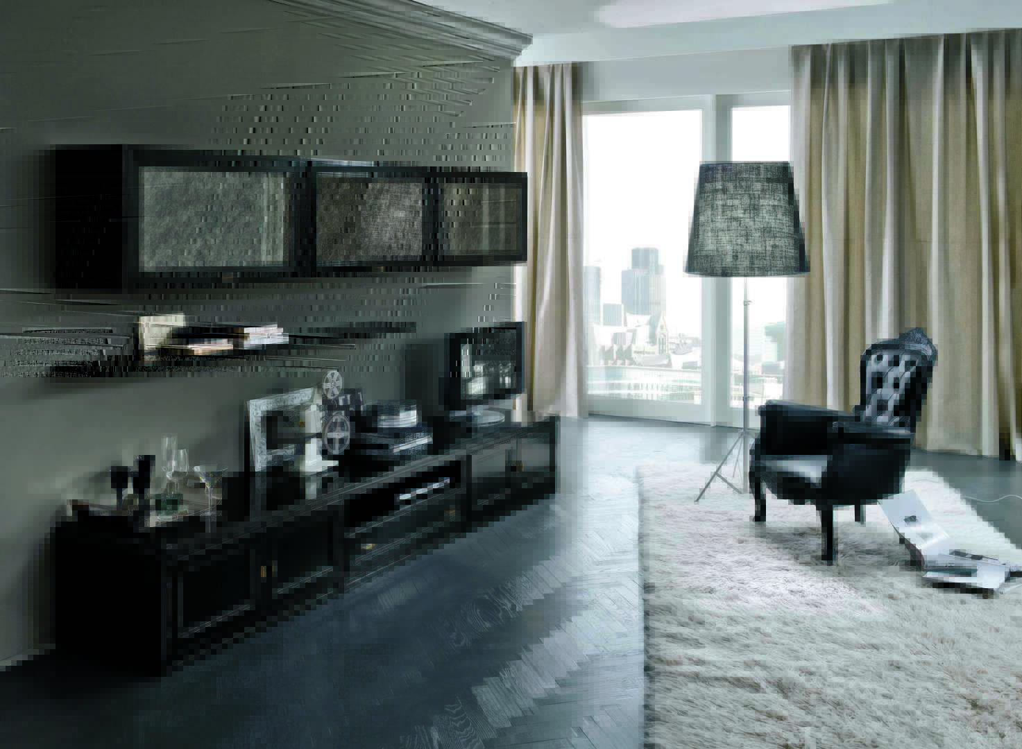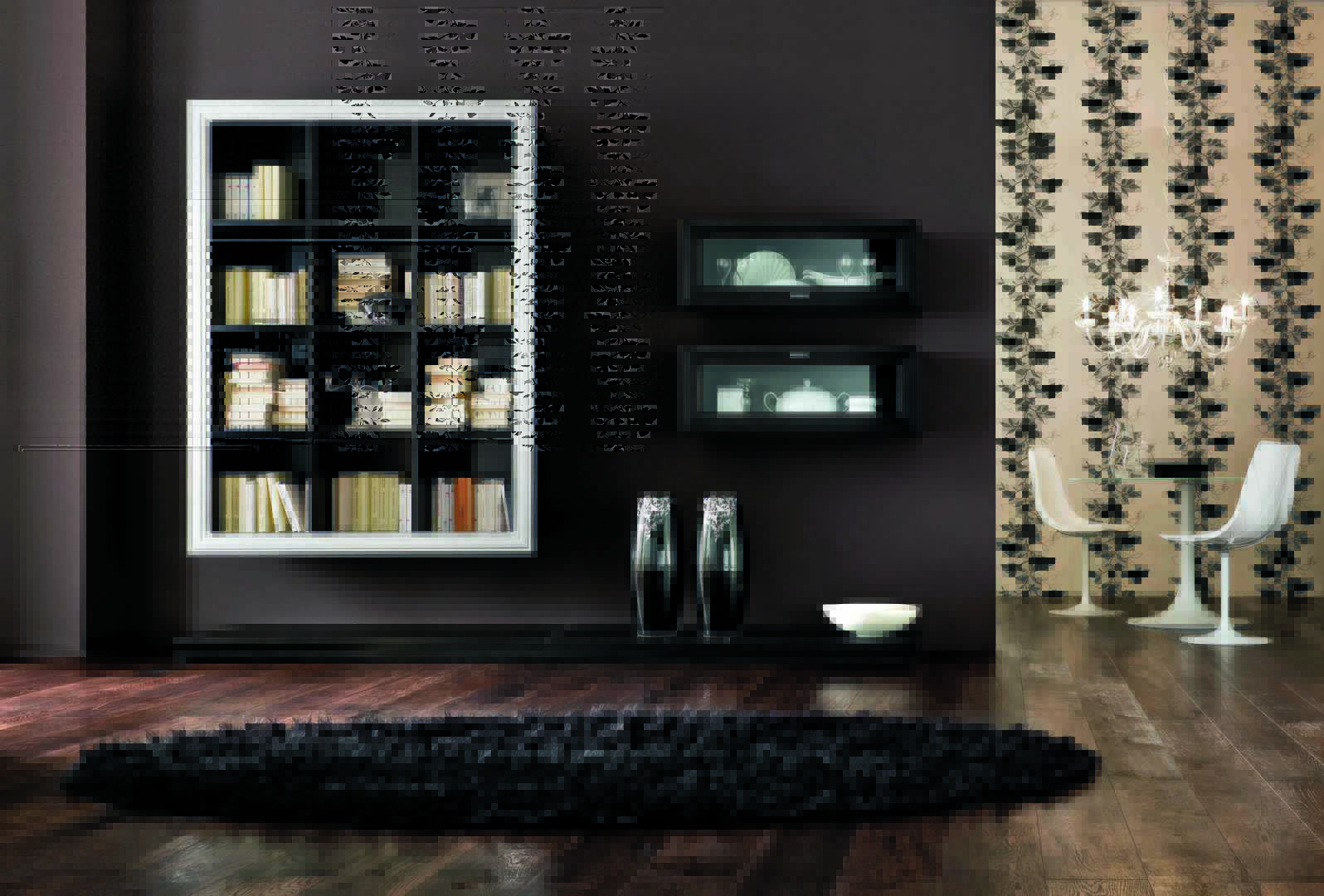 Here are also presented three wall units in Basalto finish, with handles in Ottone forgiato finish.