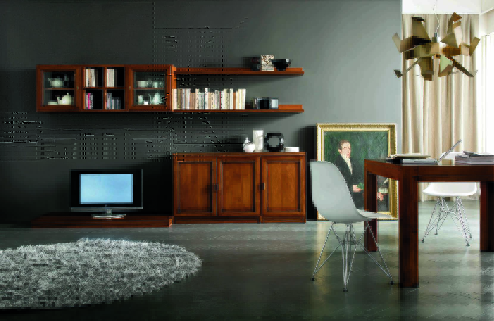 In the photo is presented a Modula composition made of three bases with one drawer each; one base a “C” and one shelf. It’s all in Essenza Noce finish.