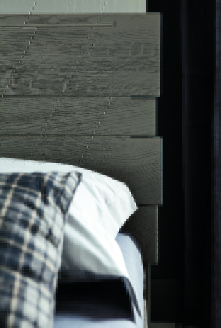 The Wooden boards placed horizontally, different for length and width, characterize the Kenzo headbord.
