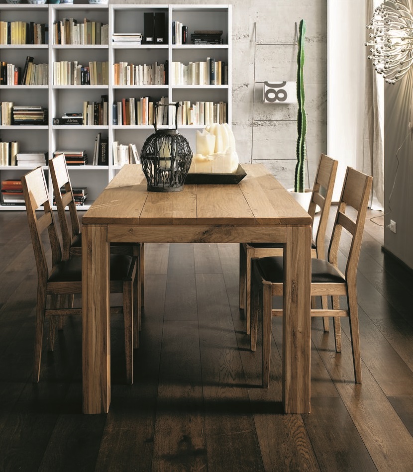 In the Eco Natural Living collection there is rhe Camilla chair, with oak frame and padded eco-leather seat, Testa di moro E7.
