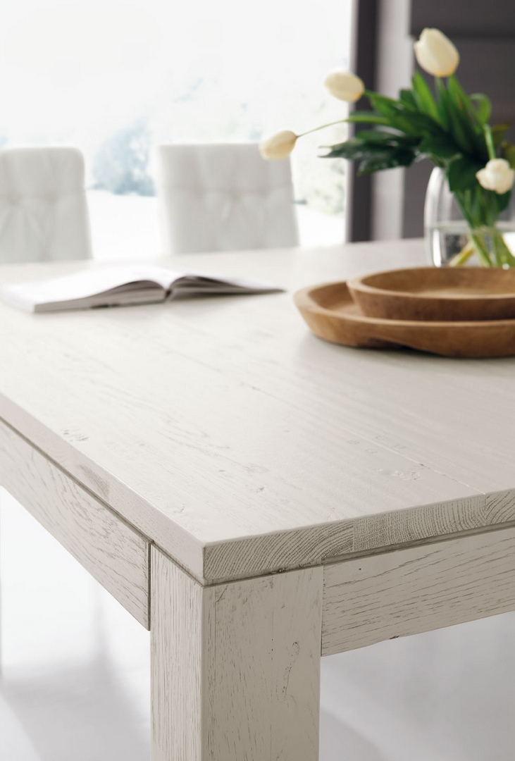 Nantes table in solid european oak, with Bianco finish: