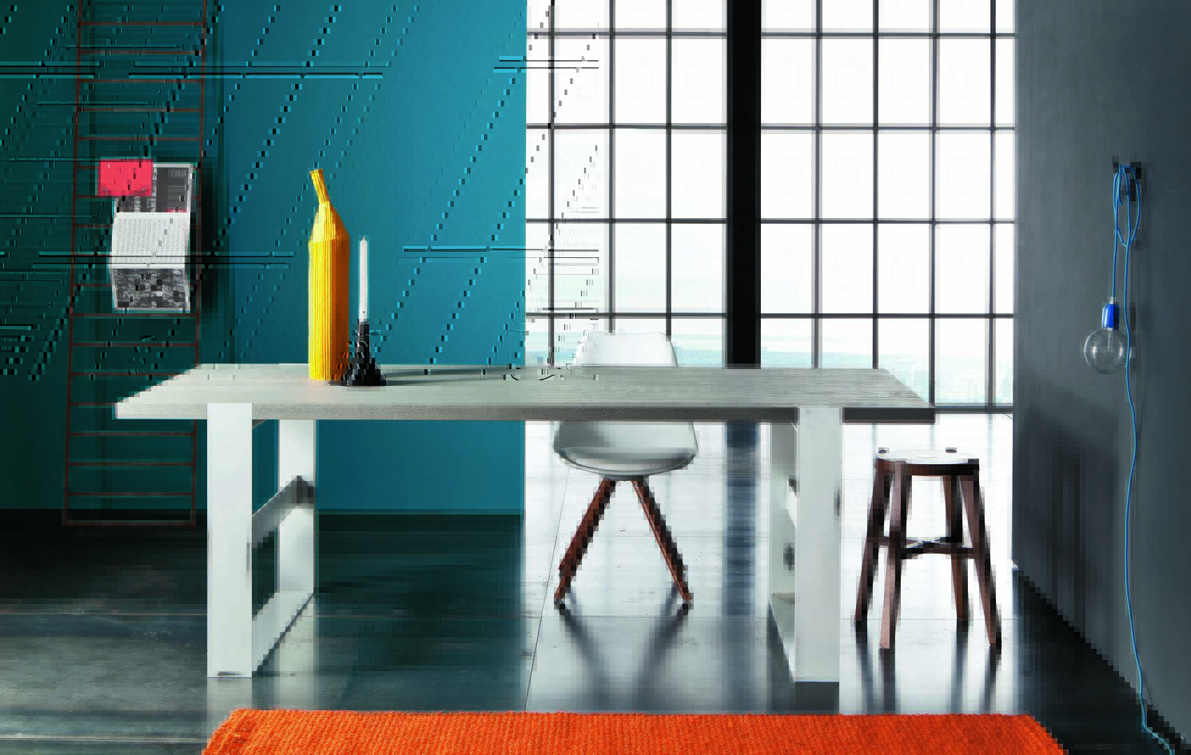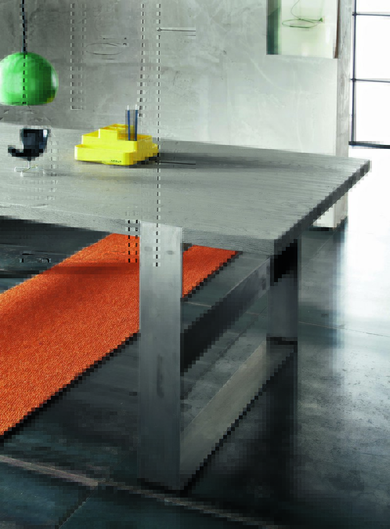 Parigi table in Visone sabbiato solid oak finish, with Super iron legs.