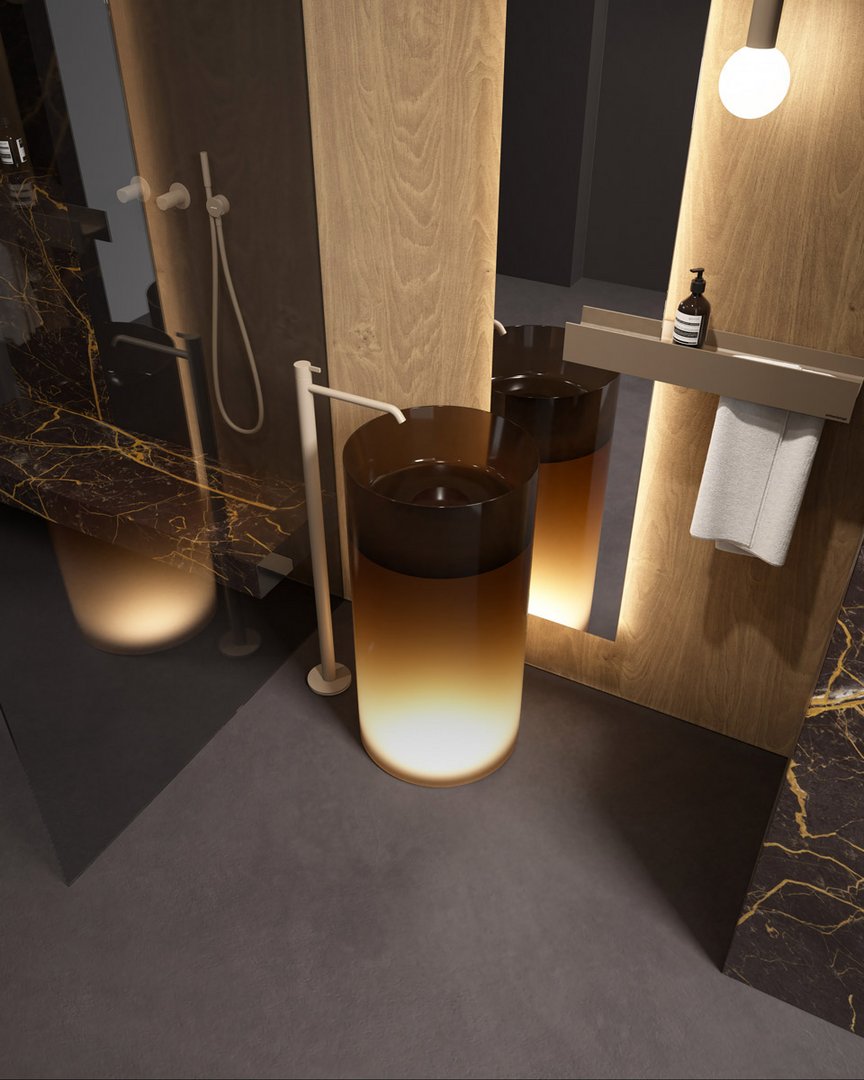 Leggero e delicato come un soffio di vento, traslucido e luminoso come l’acqua che riflette colori e sfumature, regolare e geometrico per una purezza assoluta e senza tempo. Breeze è il lavabo freestanding in Cristalmood di antoniolupi dotato di un bordo sottilissimo per fondersi idealmente con l’elemento naturale che contiene al suo interno. Un volume che si nasconde, che vuole “sparire” visivamente per lasciare all’acqua e al suo movimento il ruolo di protagonista assoluta.