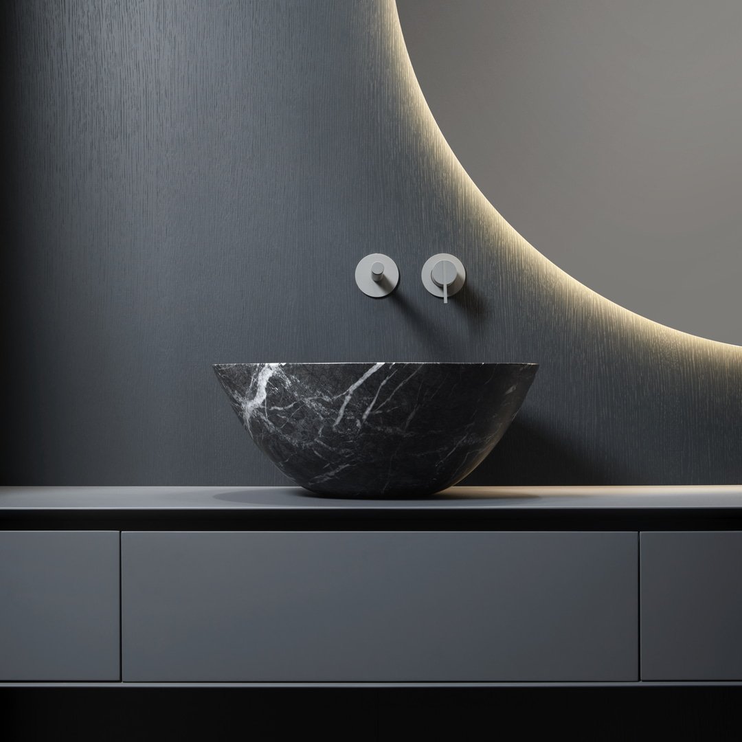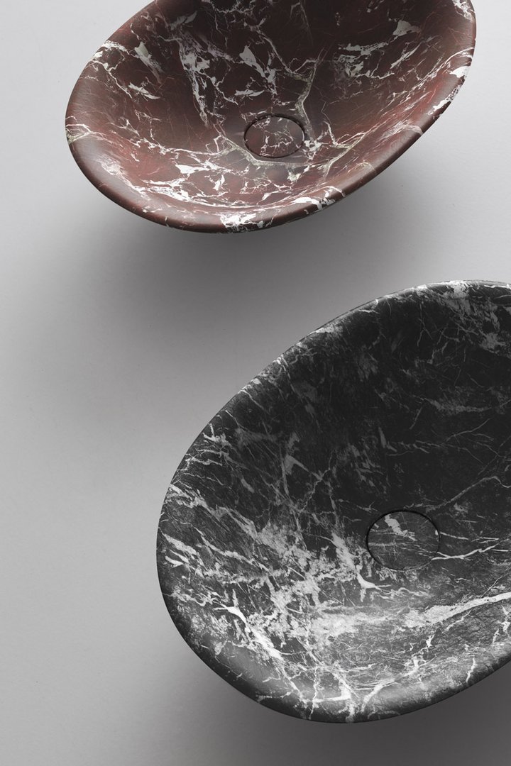 Una superficie, una mano, una carezza, curve sinuose che chiedono di essere sfiorate. L’azienda reinterpreta la collezione dei lavabi SERVO nata nel 2010 realizzandola in marmo.