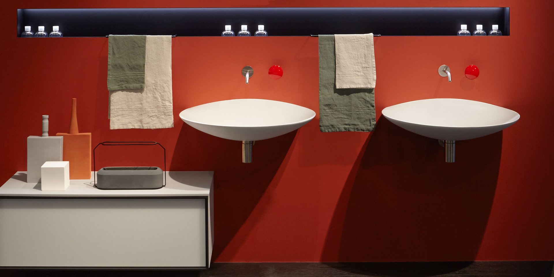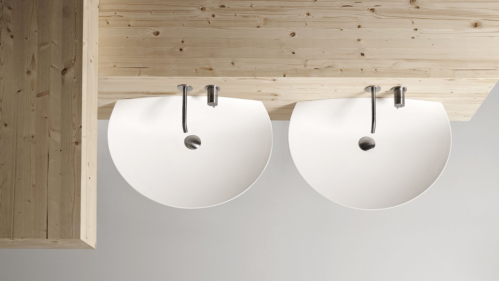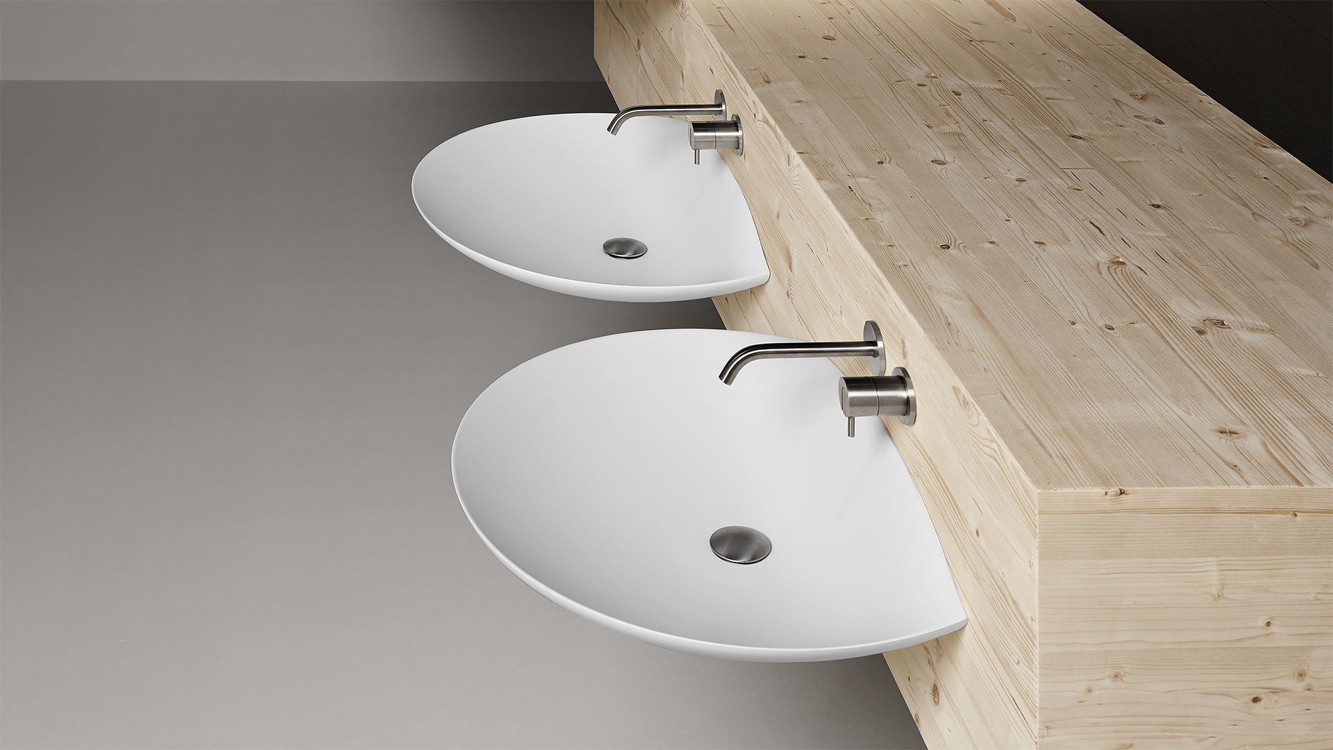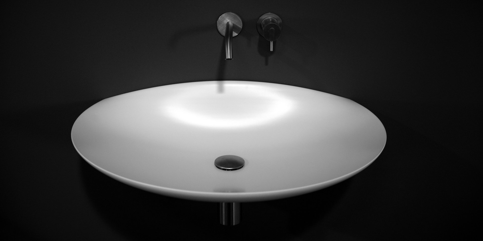 Oval top wall mounted Flumood sink, complete with drain pipe fitting and