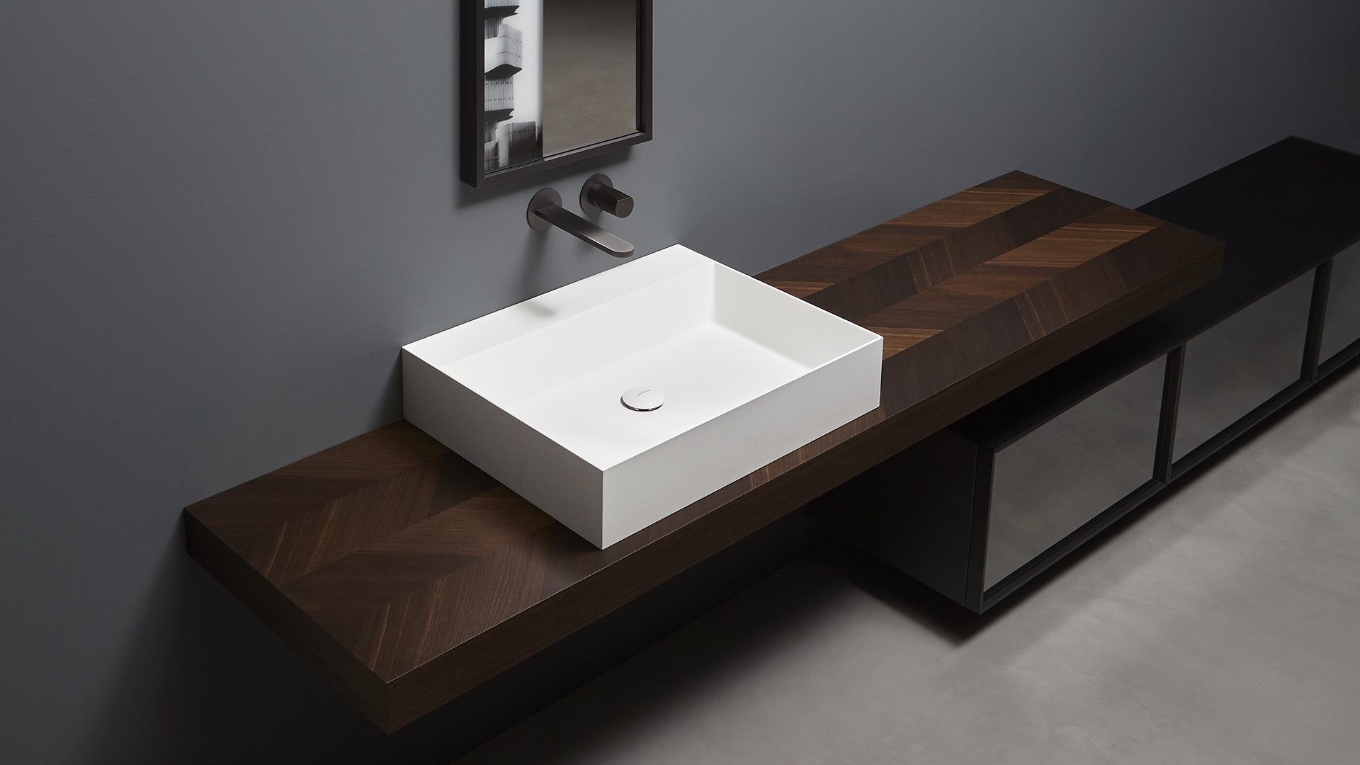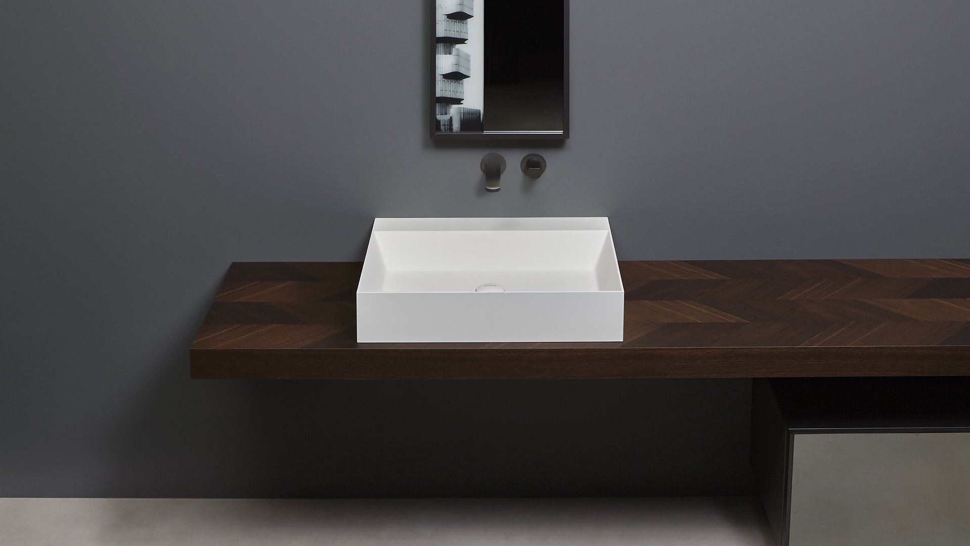 Rectangular top mount or wall mount white or colored Flumood sink complete with drain pipe fifitting and open plug.