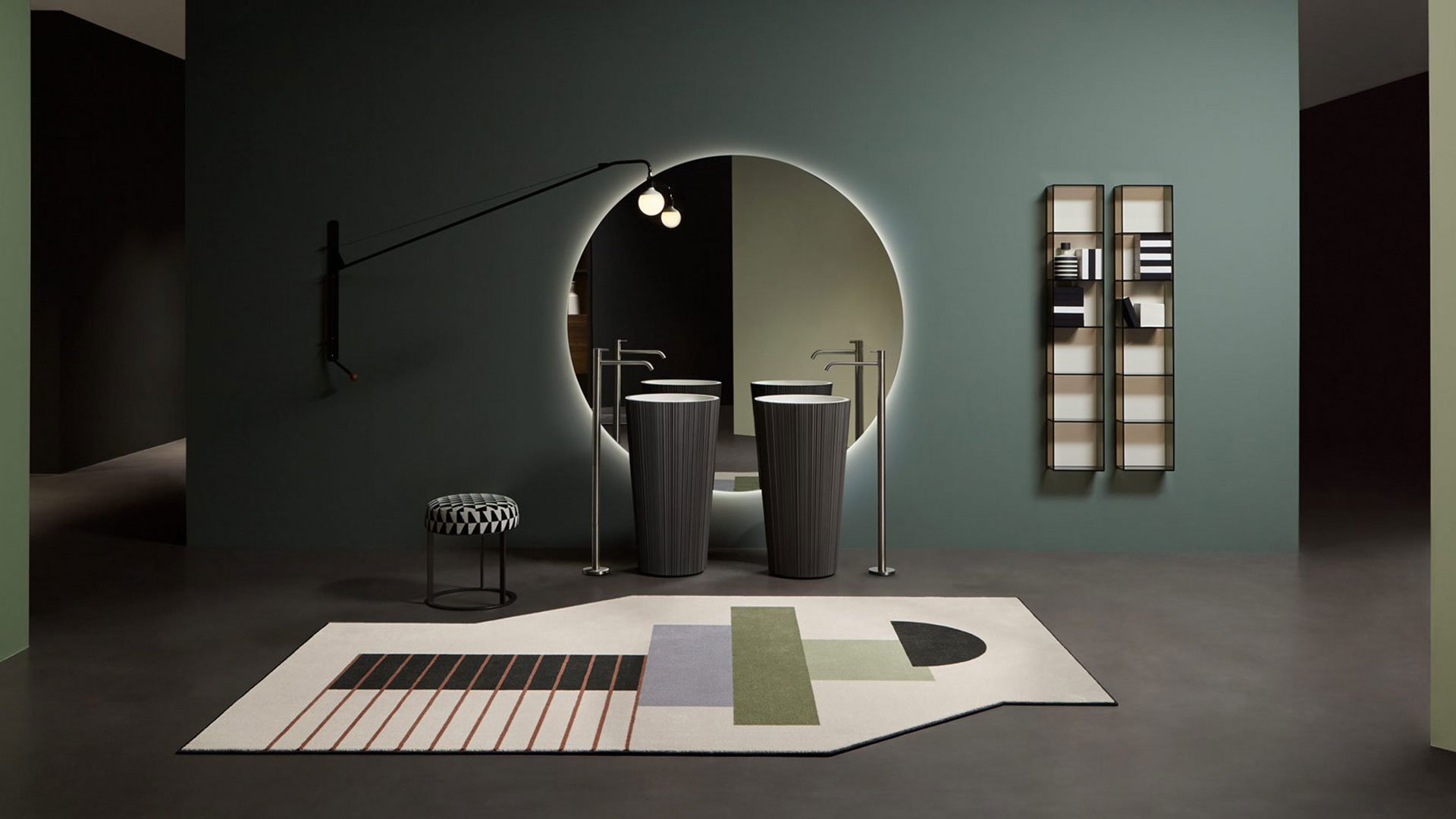 Freestanding flumood sink with floor drainage complete with open plug, siphon and flexible hose.