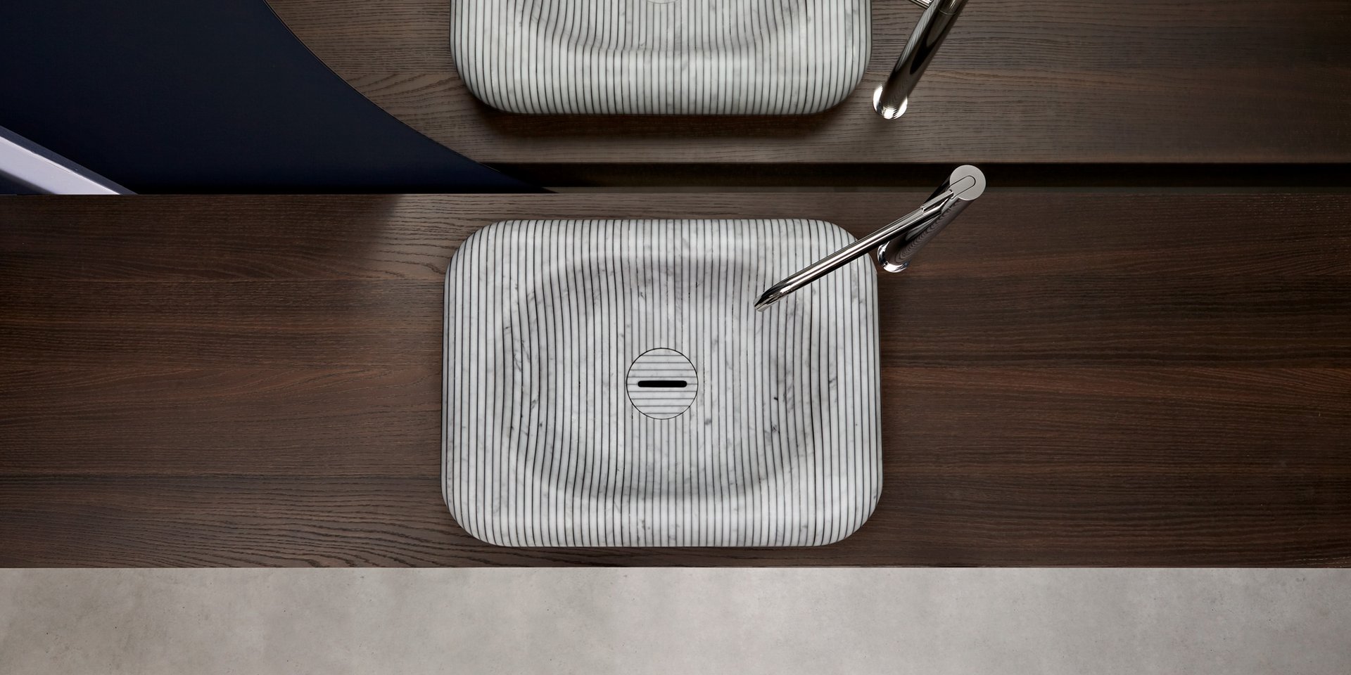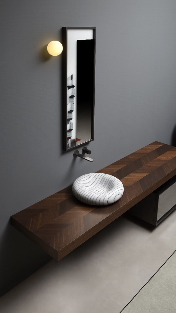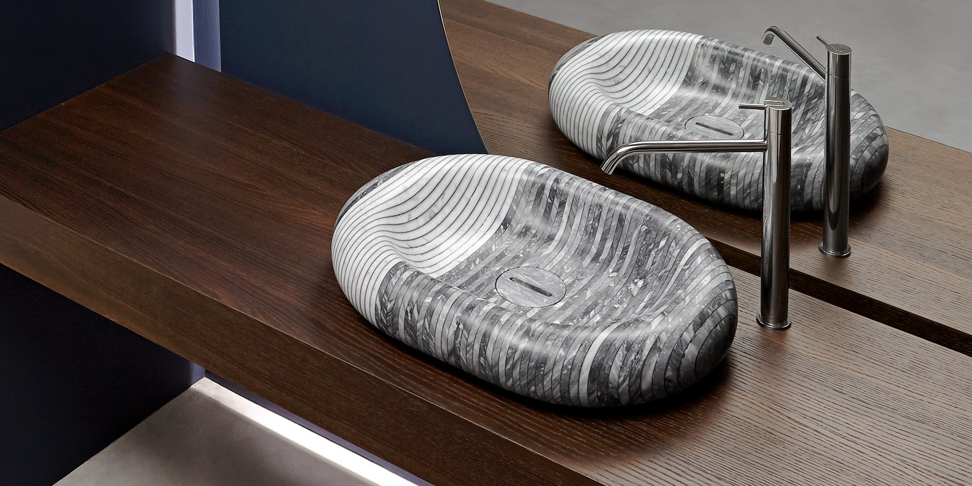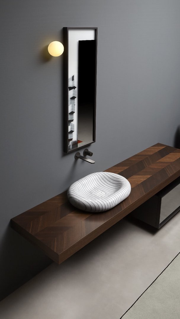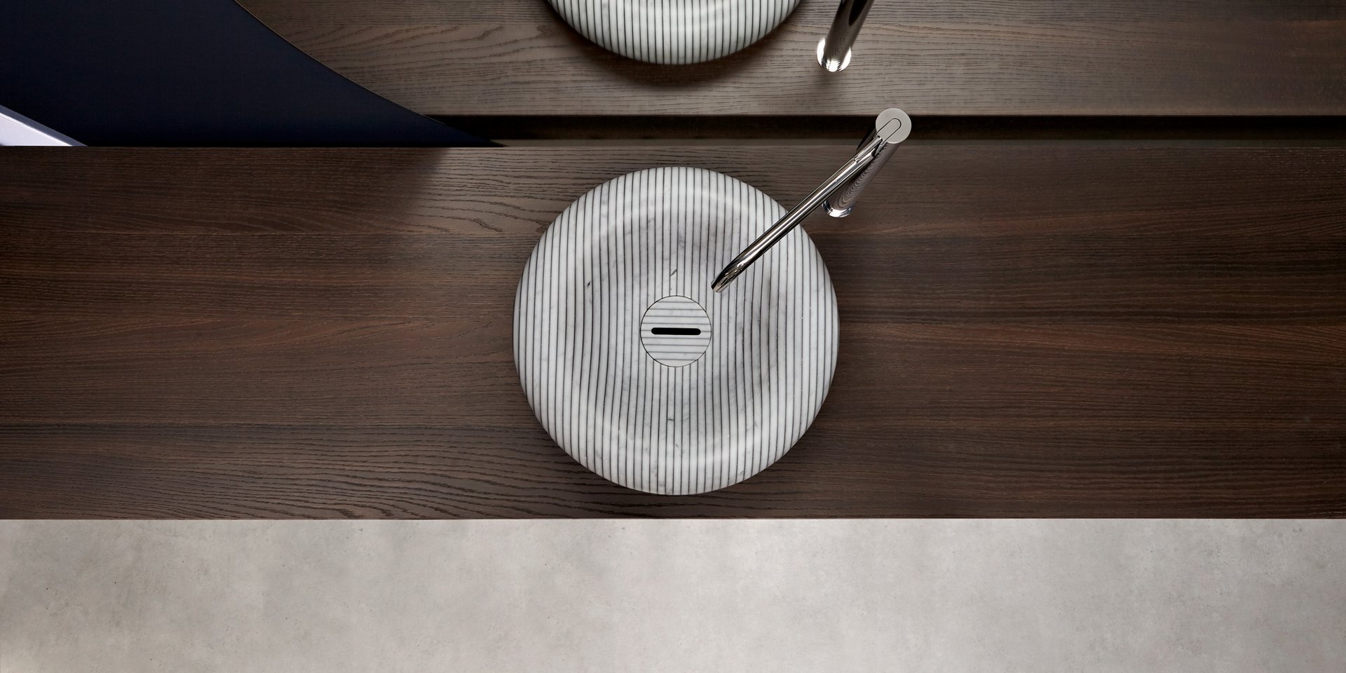 Round top mount stone sink complete with drain pipe fitting and open plug