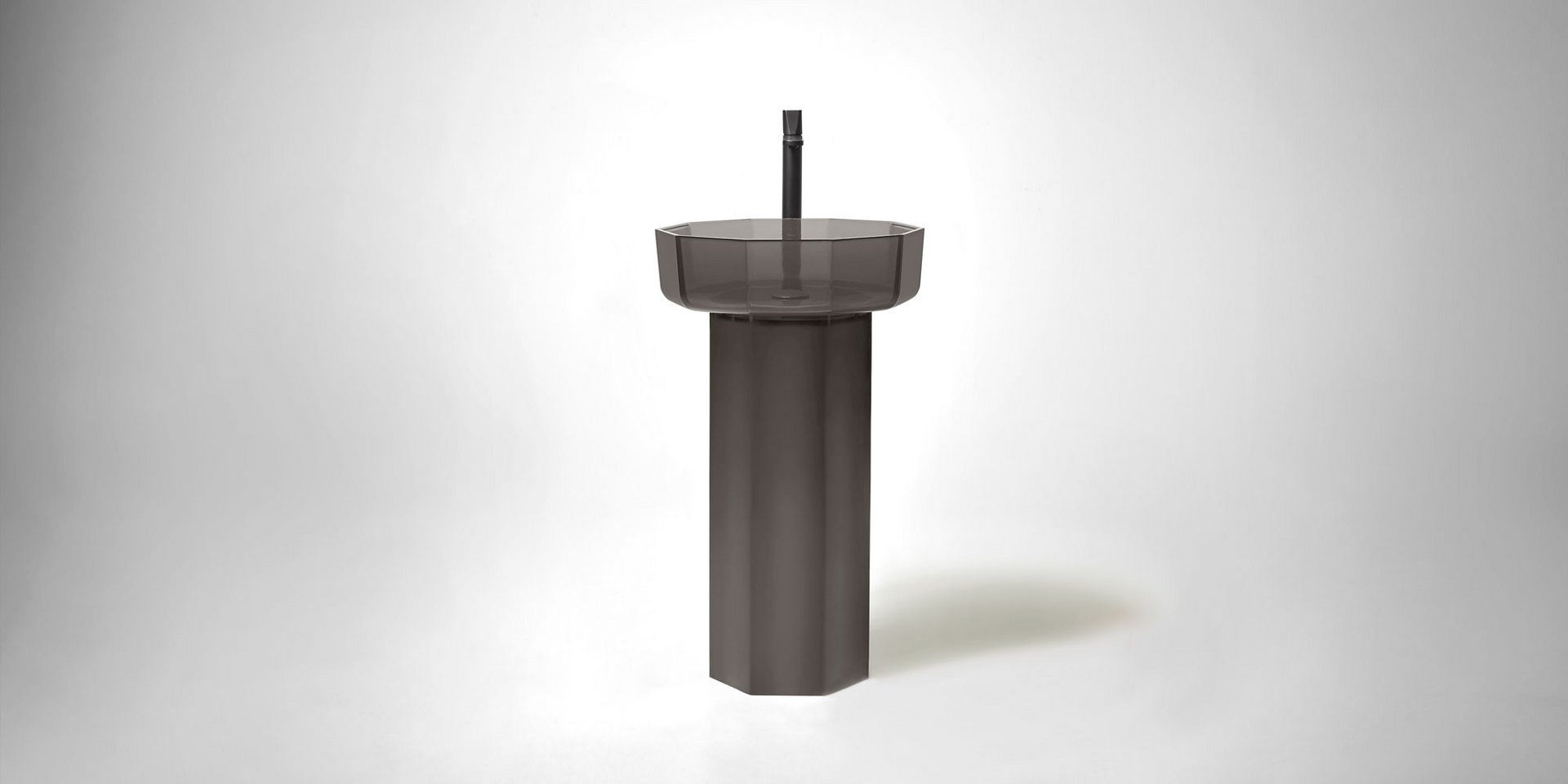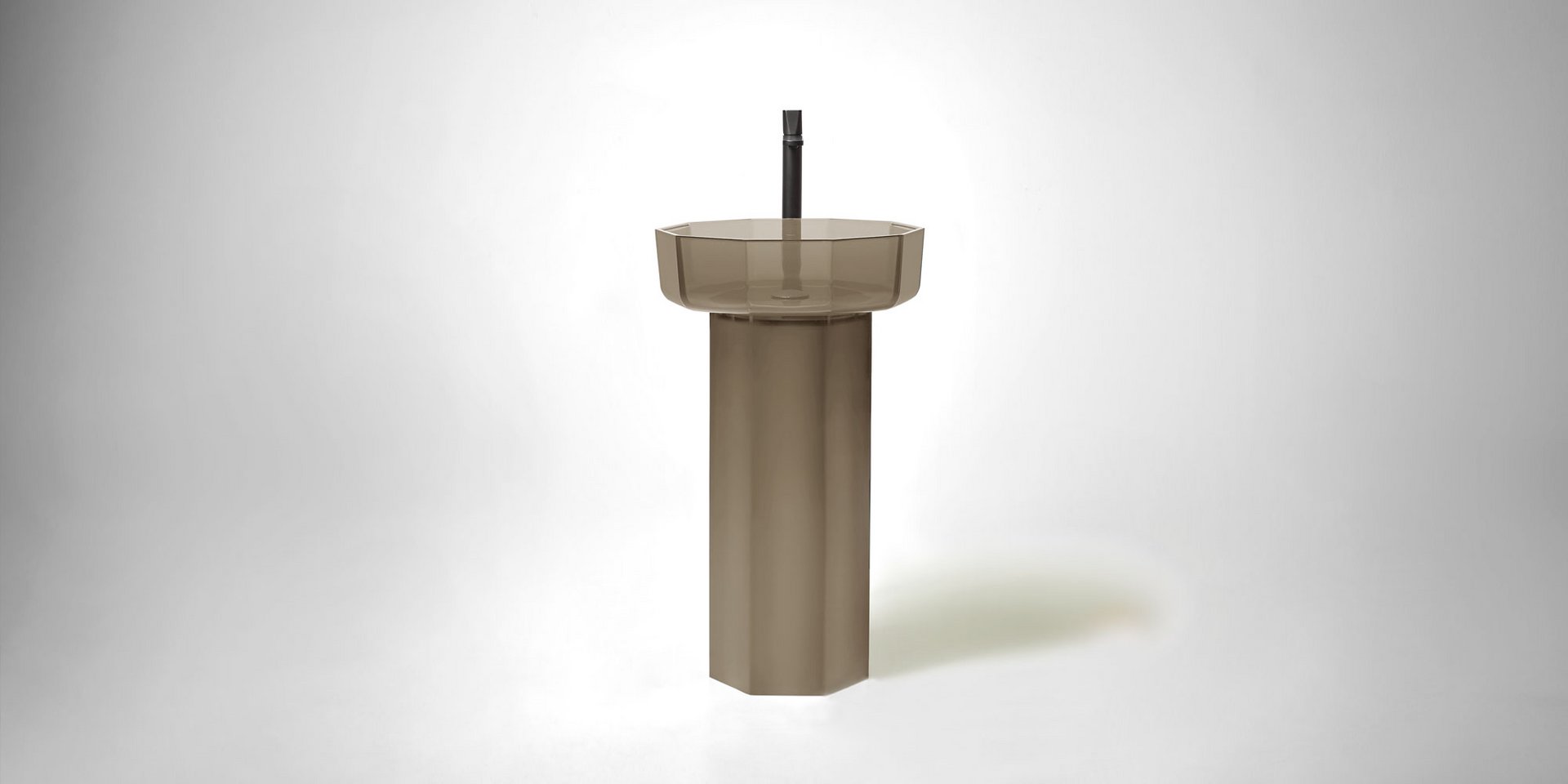 Decagonal shape sink in Cristalmood available in various colors as per our color chart, to be used top mount or combined with base Art. OPALE20 or Art. OPALE21, complete with drain pipe fitting and open plug.