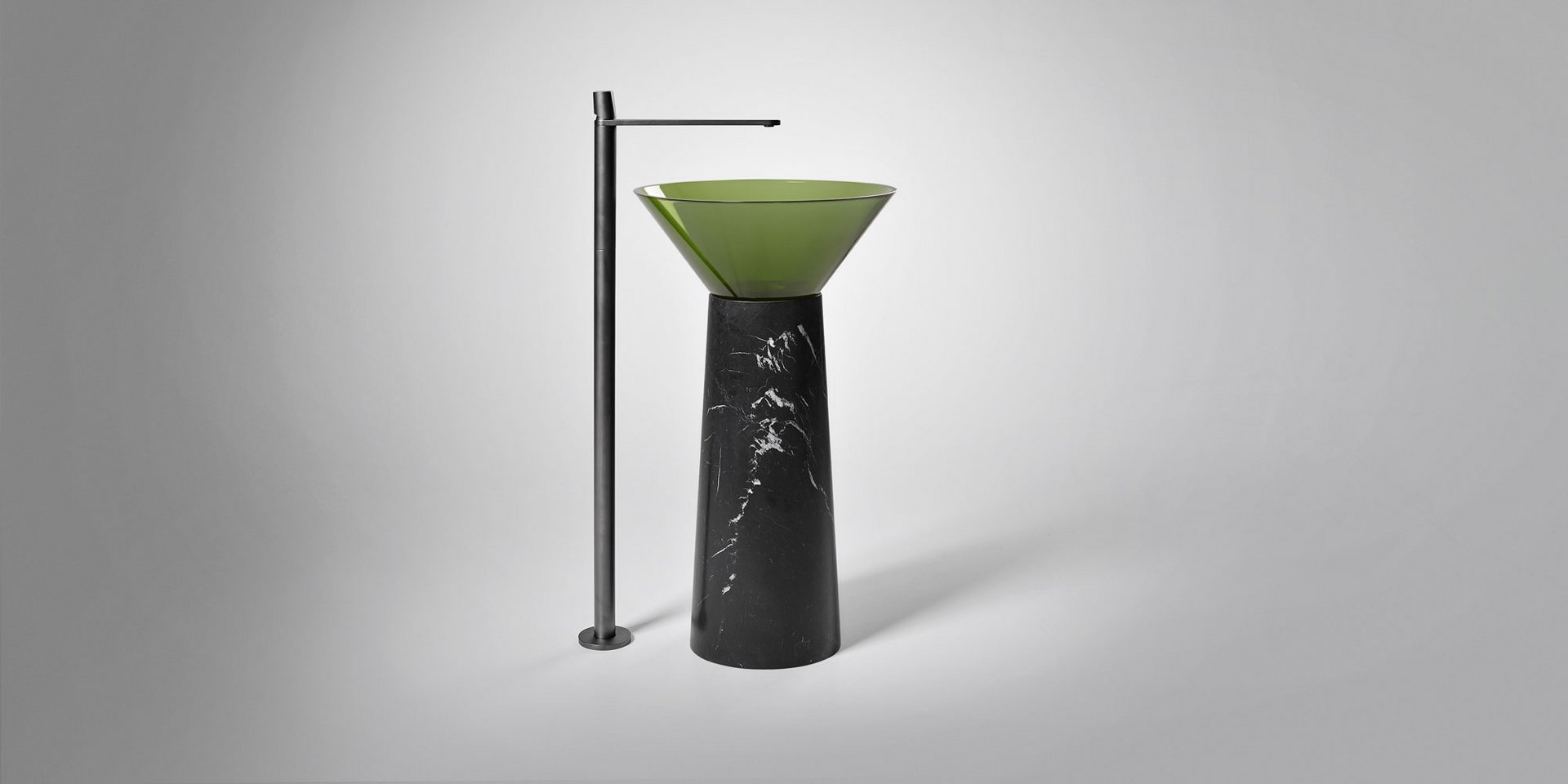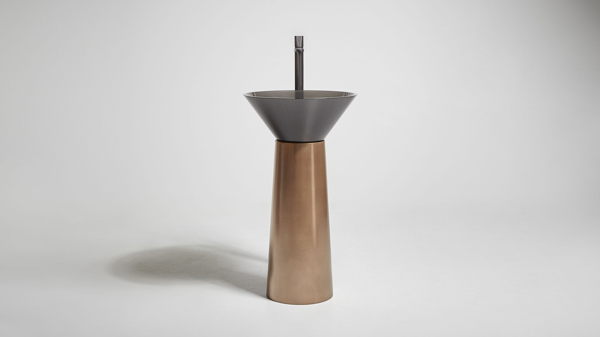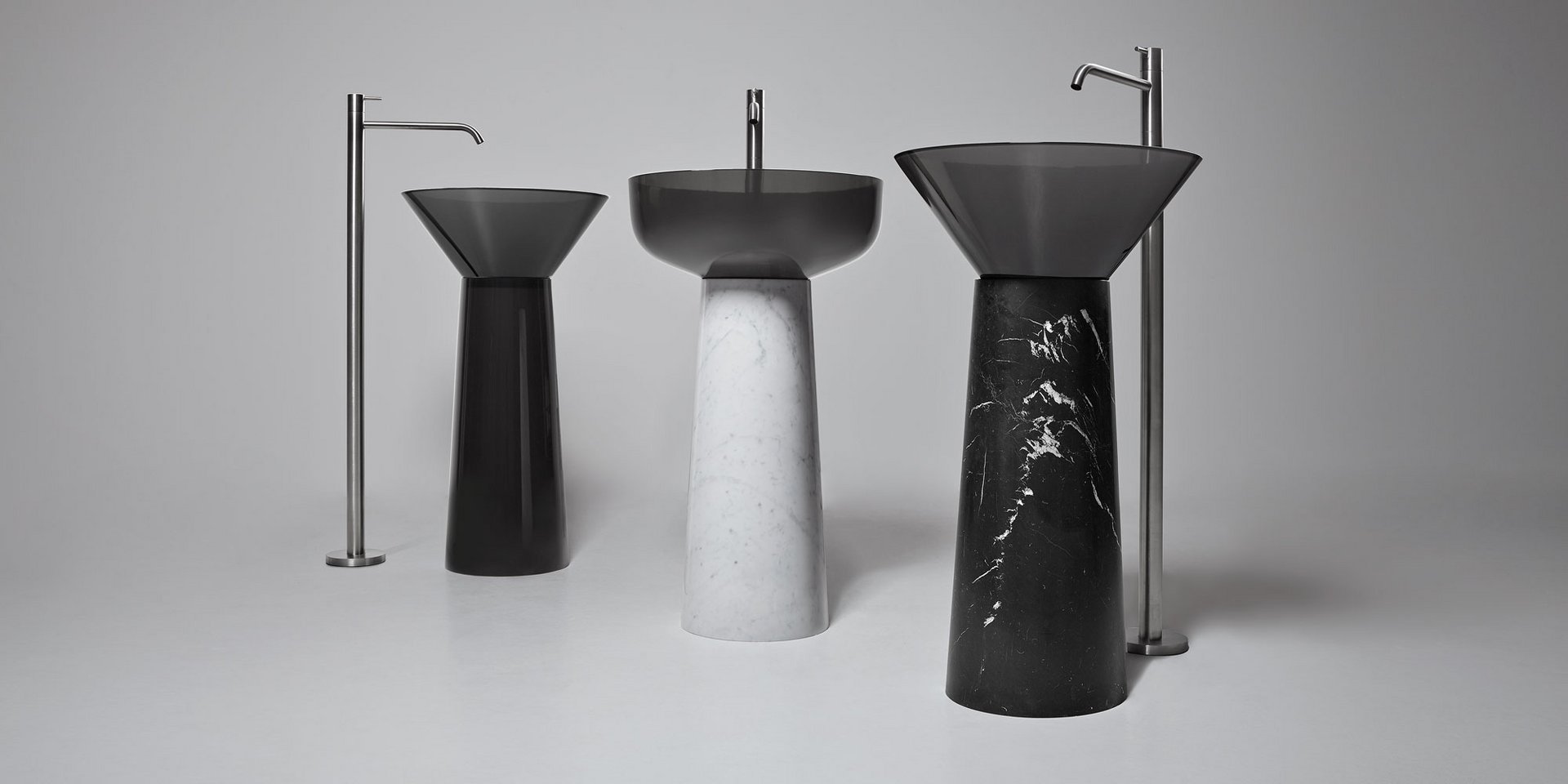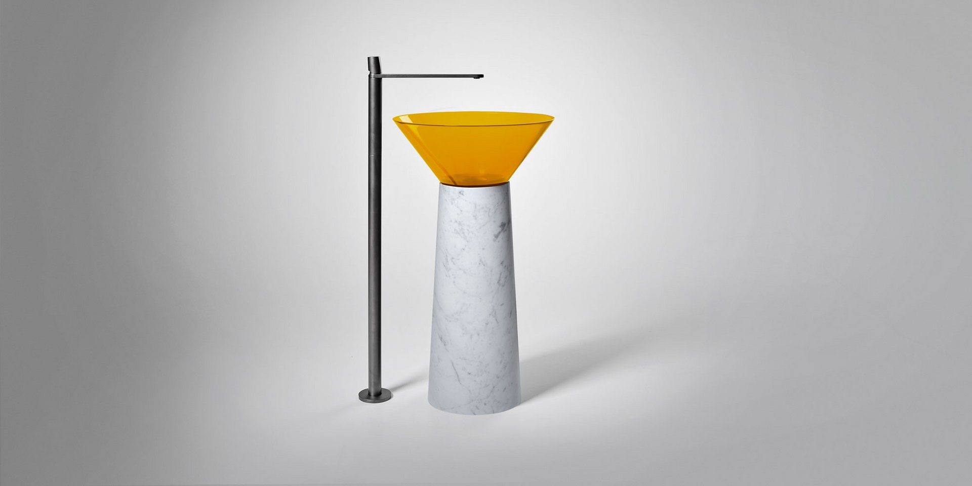 Round sink in Cristalmood, avialble in various colors, top mount or to be combined with pedestal Art. ALBUME20 complete with drain pipe fitting and open plug