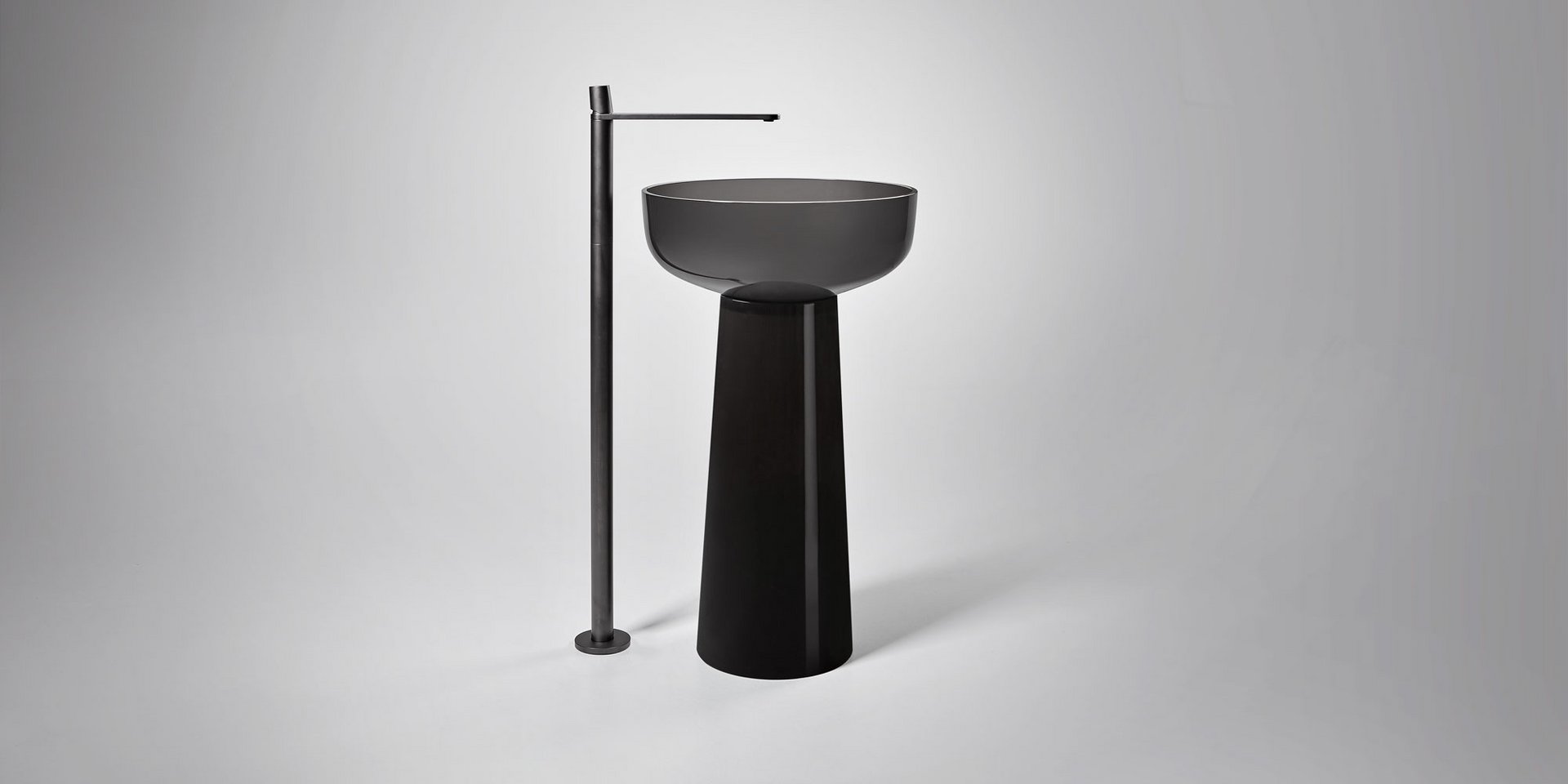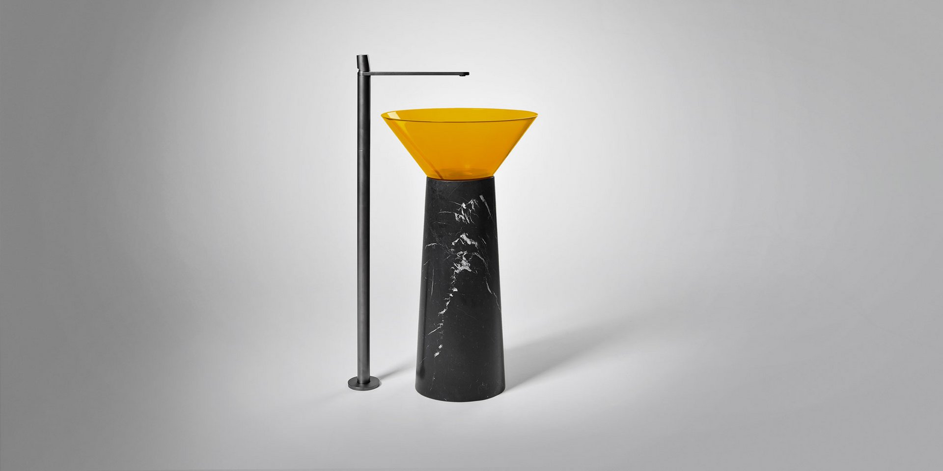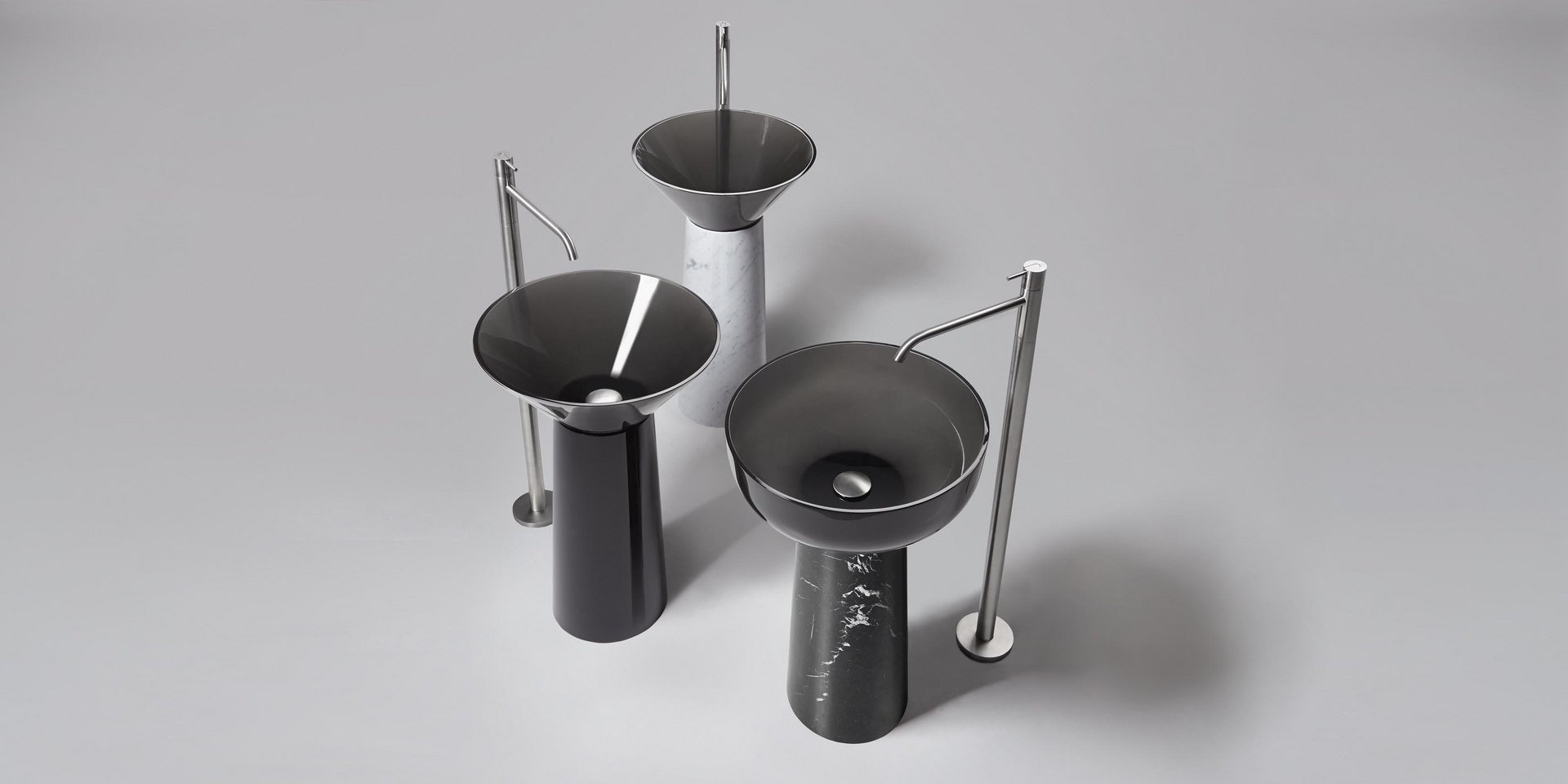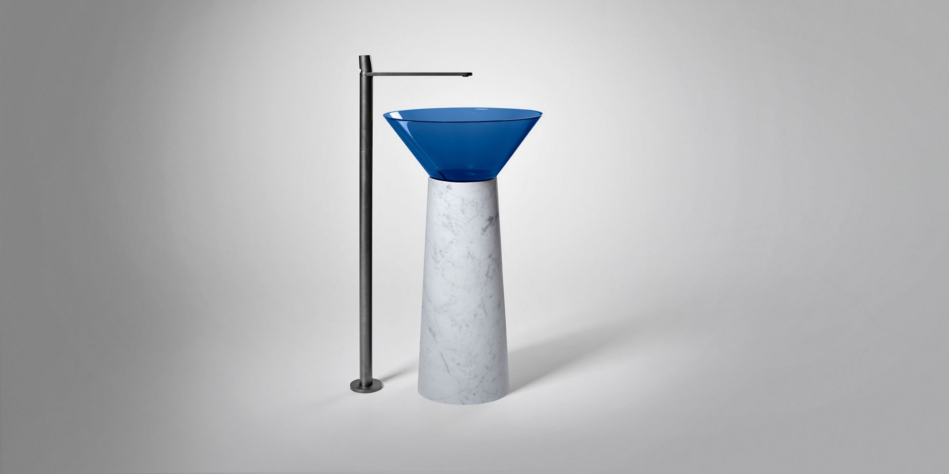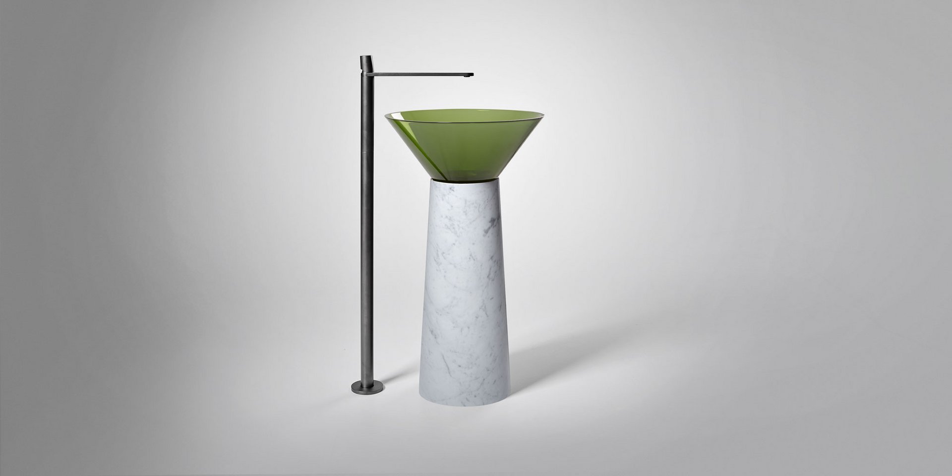 Round sink in Cristalmood, avialble in various colors, top mount or to be combined with pedestal Art. ALBUME20 complete with drain pipe fitting and open plug