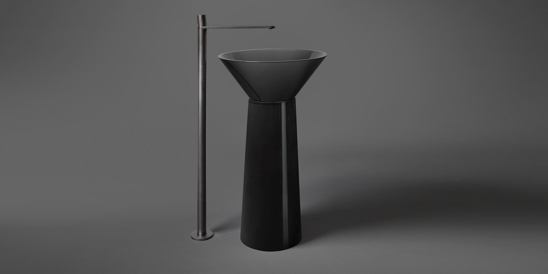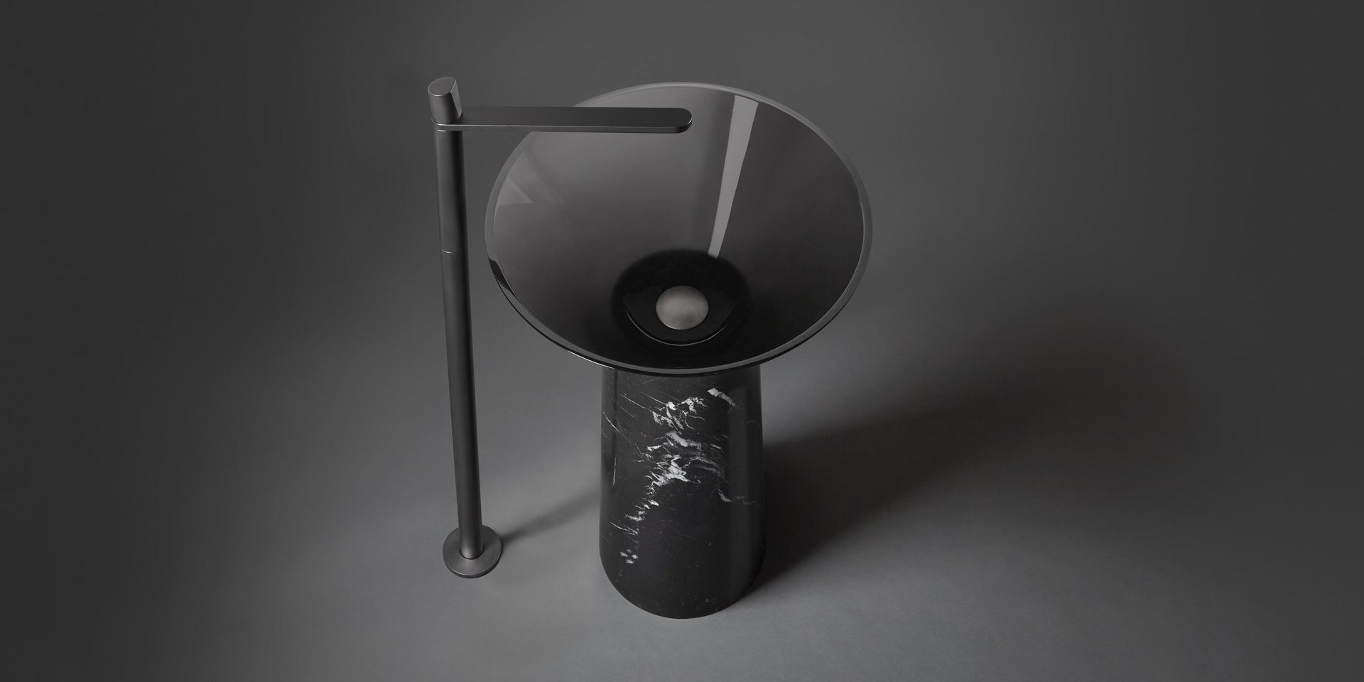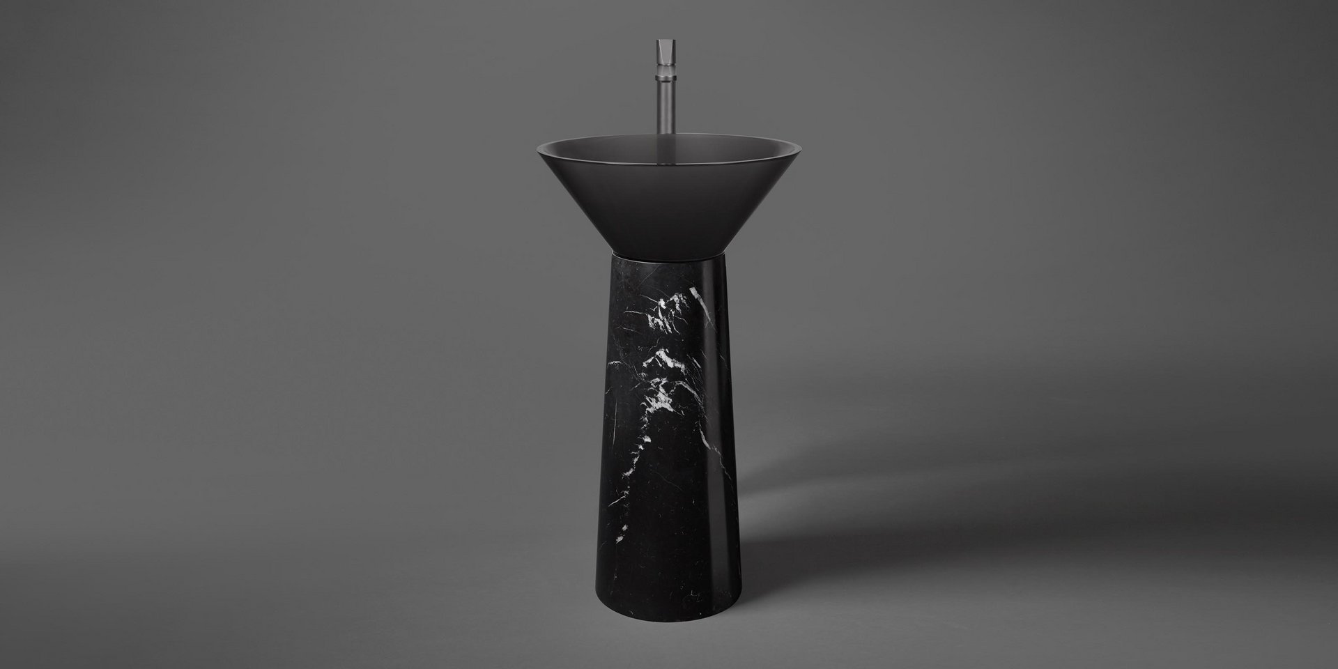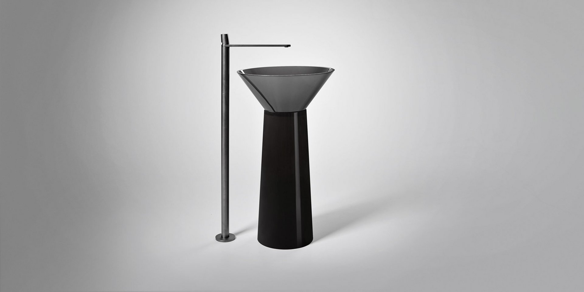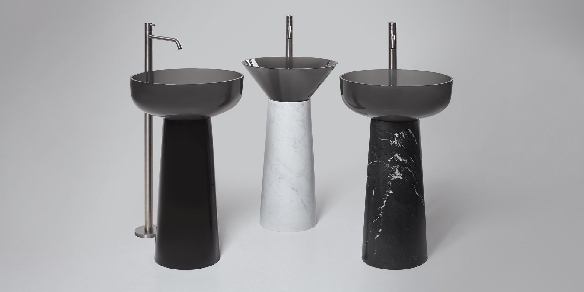 Round sink in Cristalmood, avialble in various colors, top mount or to be combined with pedestal Art. ALBUME20 complete with drain pipe fitting and open plug