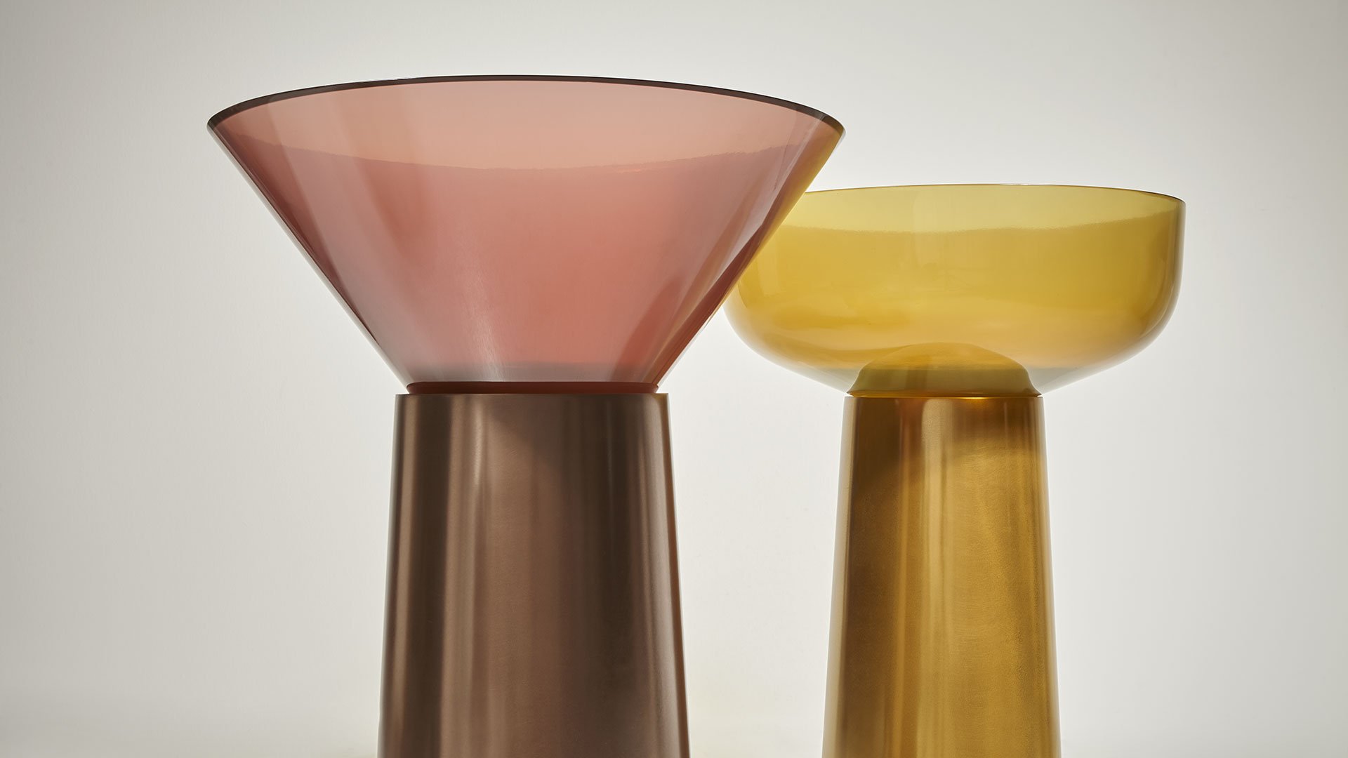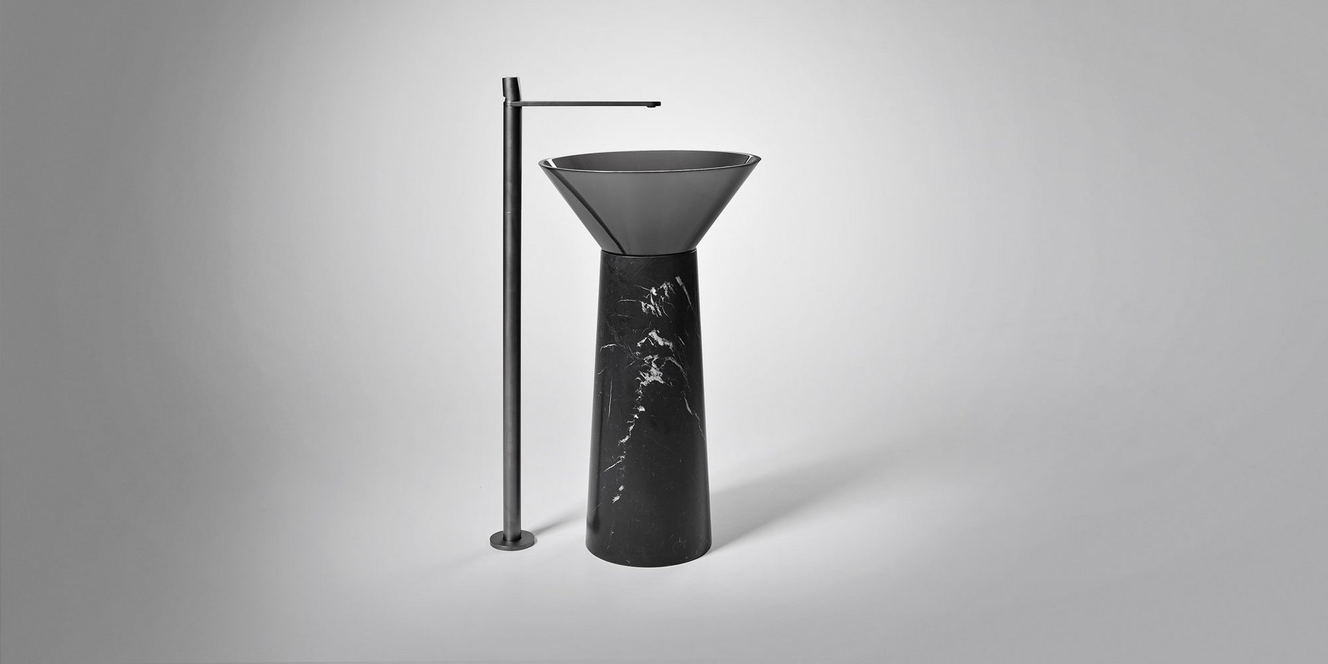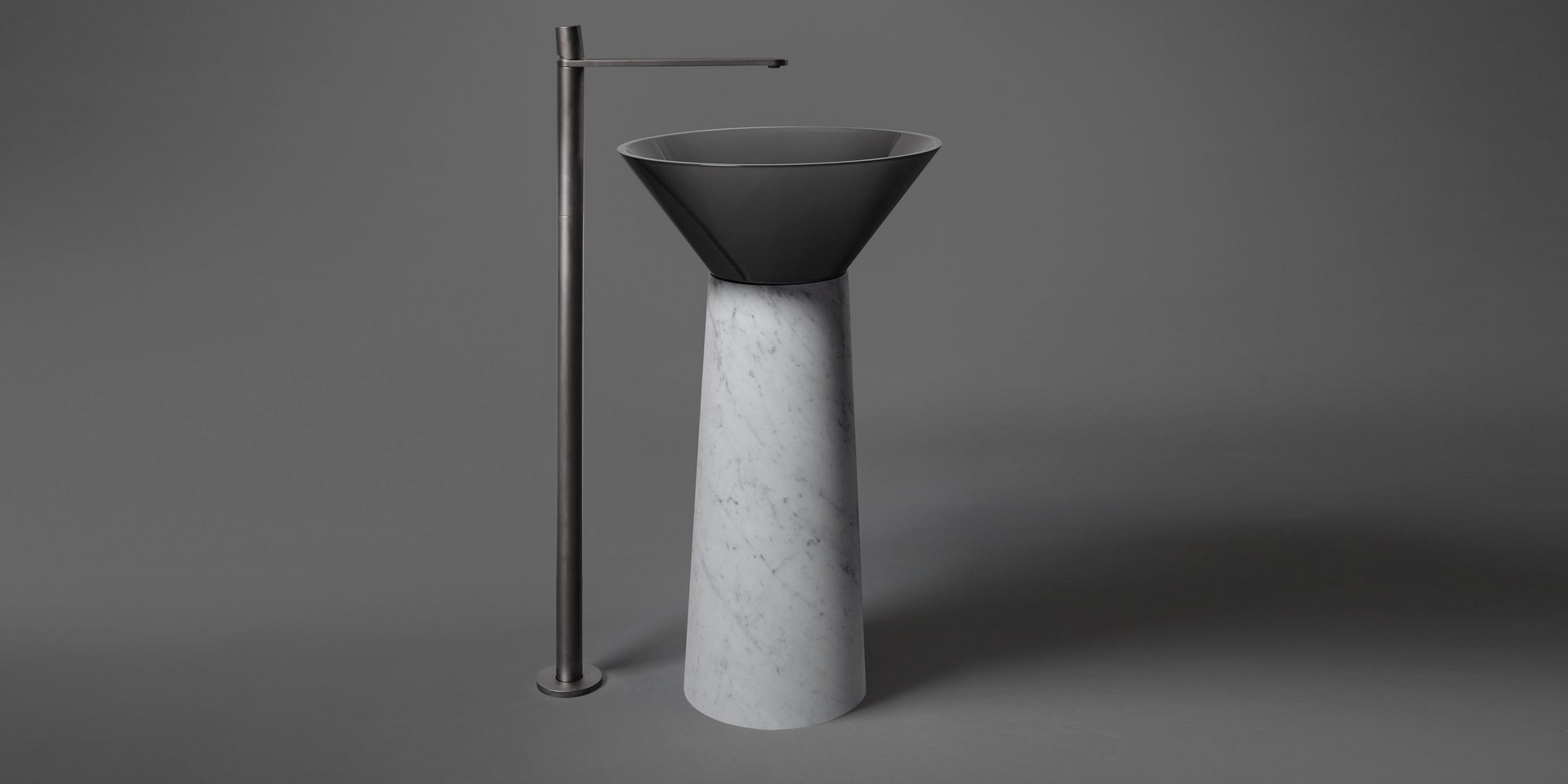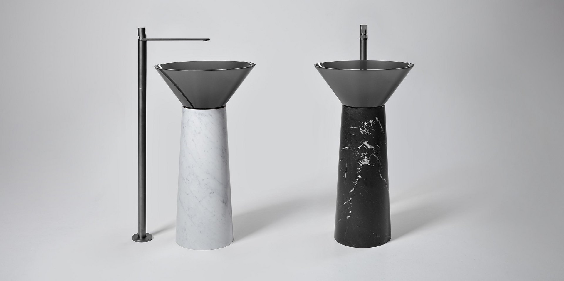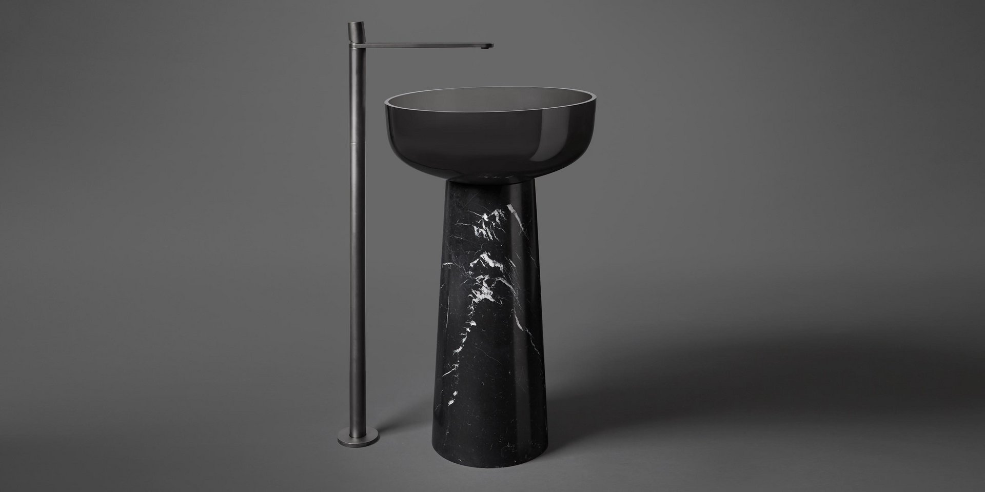 Round sink in Cristalmood, avialble in various colors, top mount or to be combined with pedestal Art. ALBUME20 complete with drain pipe fitting and open plug