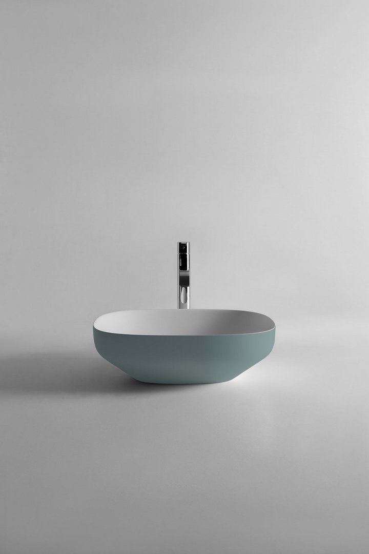 Oval top mount Flumood? sink complete with drain pipe fitting and open plug that can be lacquered externally.
