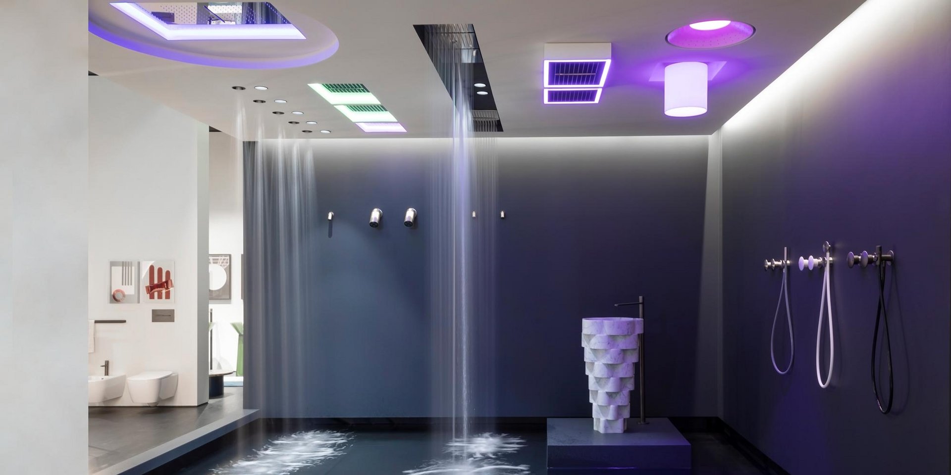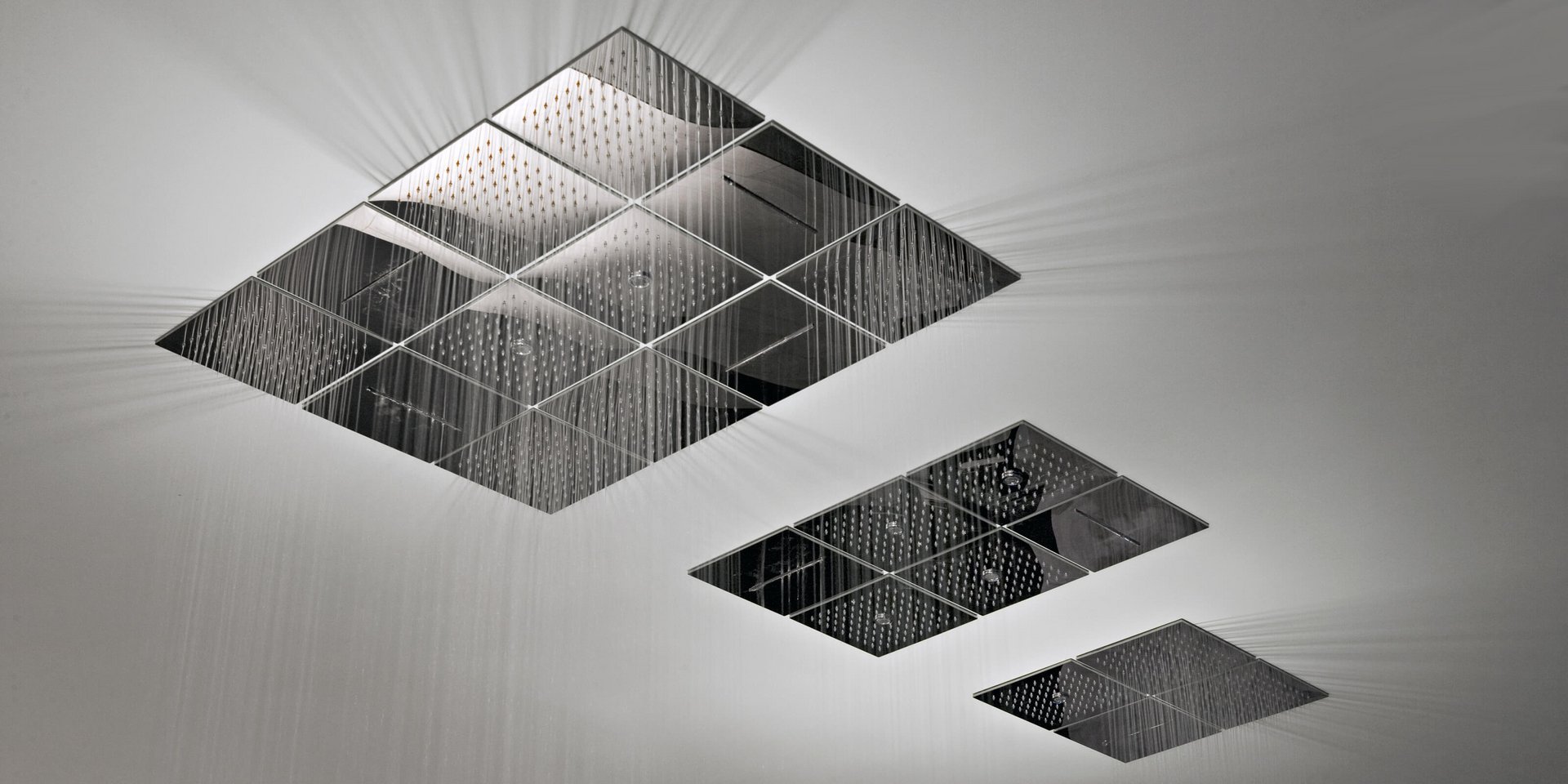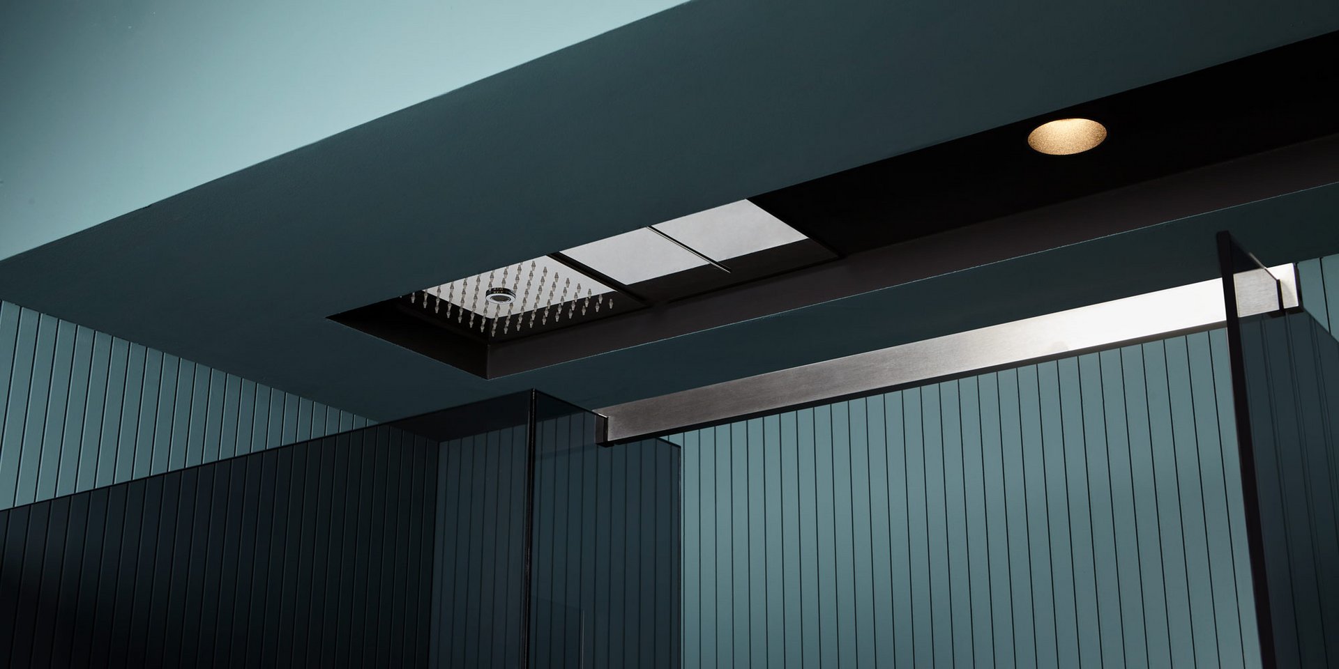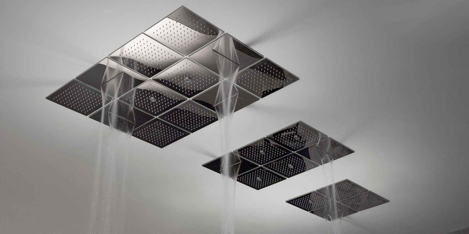 Encased modular showerhead with hard center jet in polished stainless steel AISI 304.