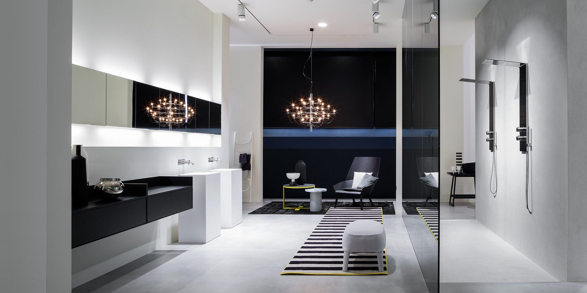 Wall cabinet with 2 double face mirrored doors and 1 internal shelf for H 50 cm or with 2 internal shelves for H 75 and H 90 cm.