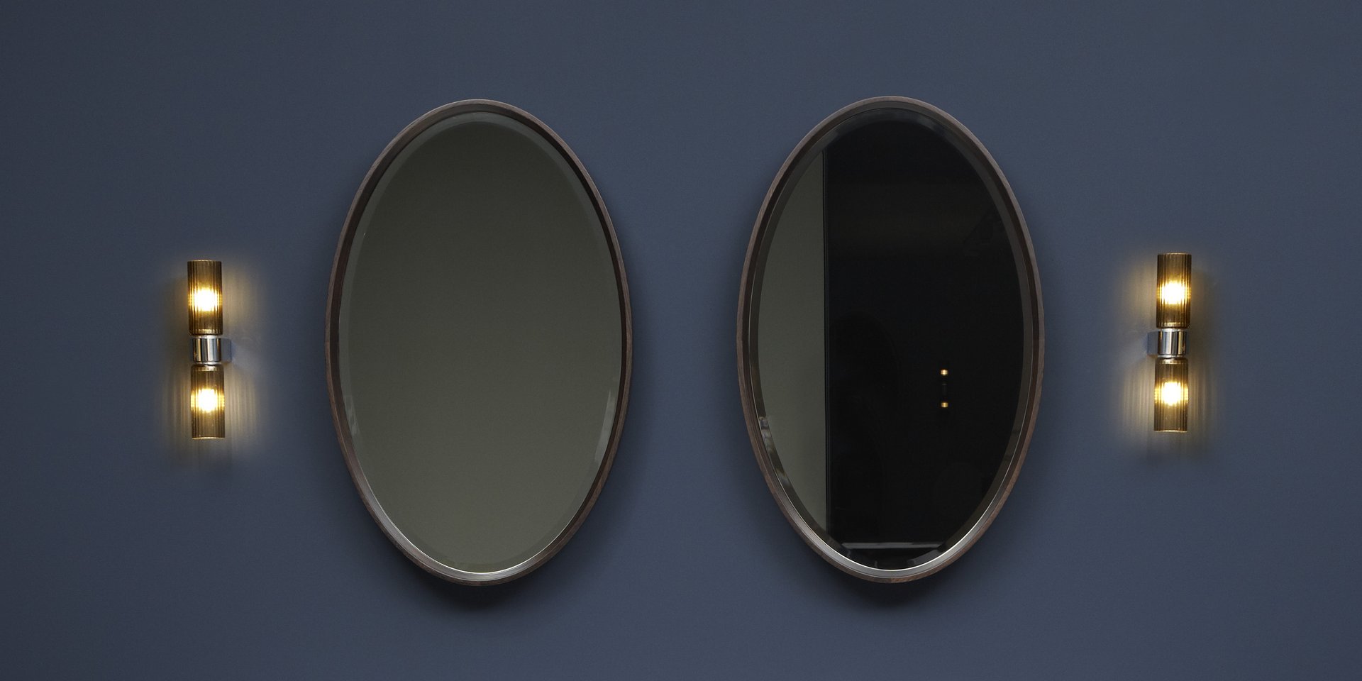 Horizontal or vertical oval beveled mirror with solid wood frame
