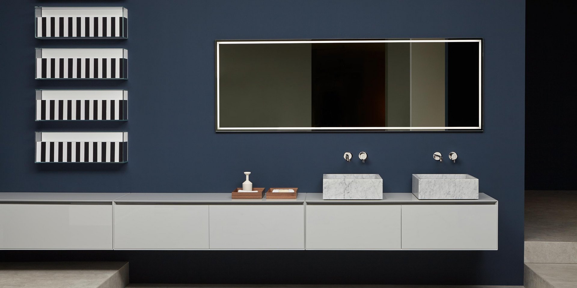 Polished edge mirror 4 mm thick with white led lighting, complete with black frame.