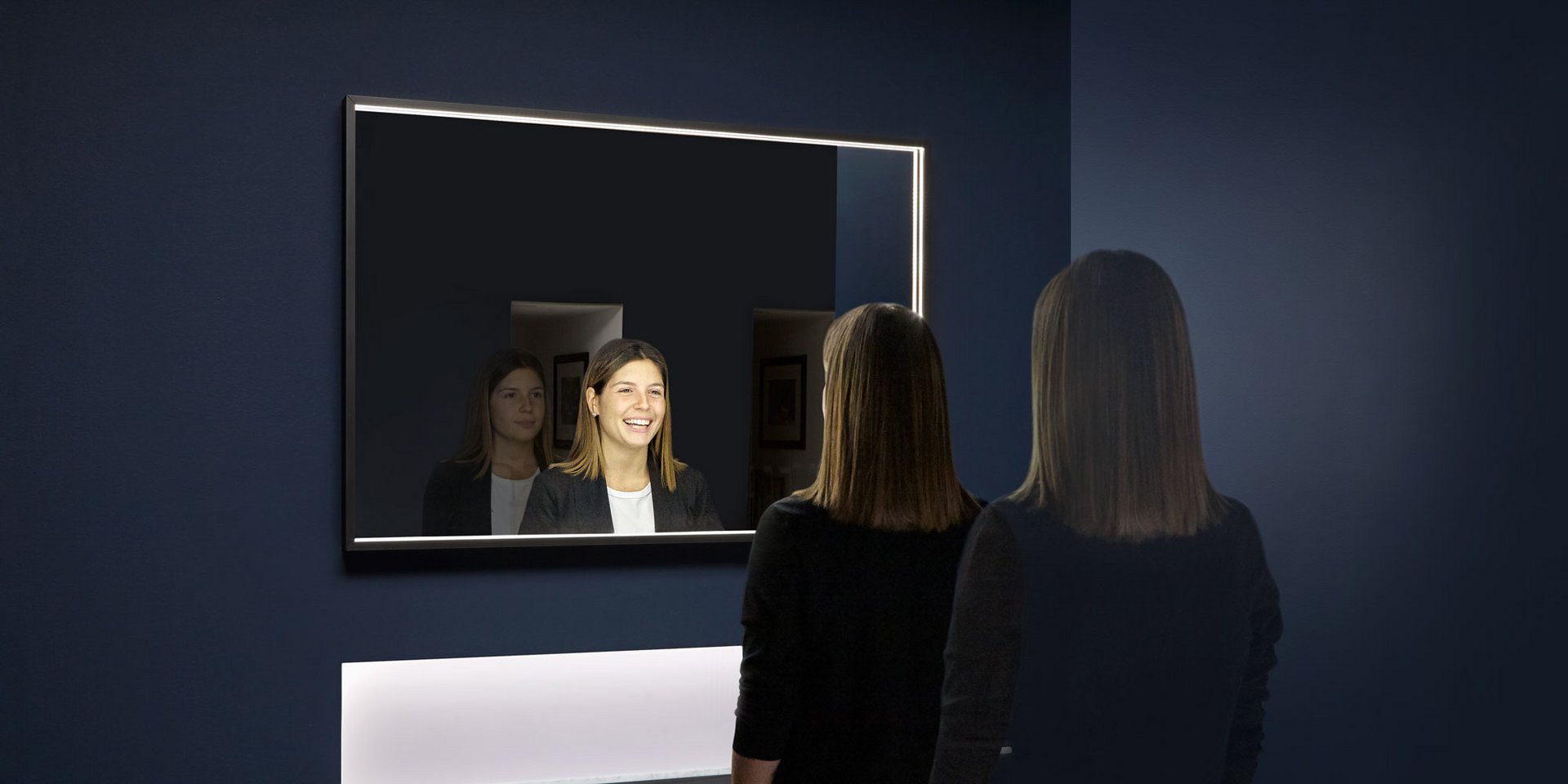 Horizontal or vertical mirror 4 mm thick with bronze aluminum frame and white led lighting.