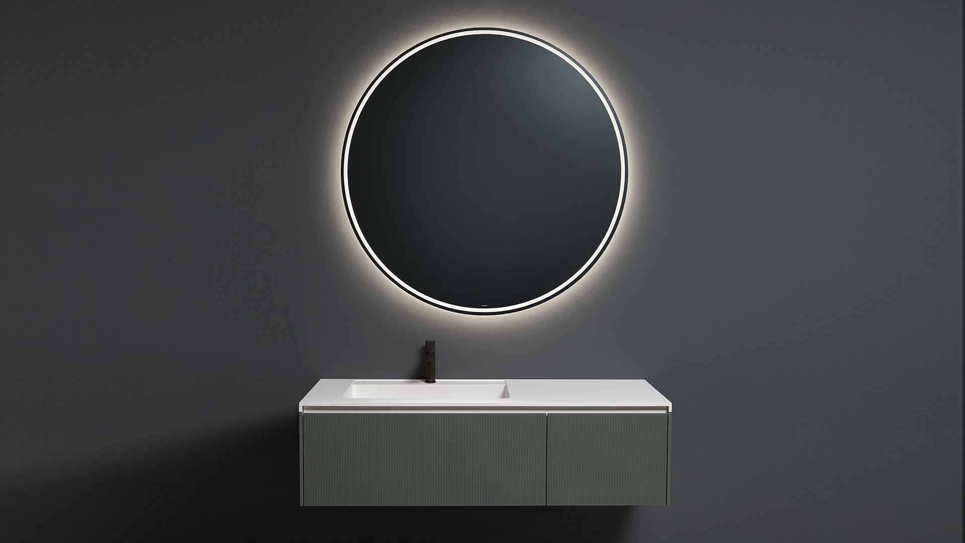 Polished edge mirror 5 mm thick with white led lighting, complete with black frame.