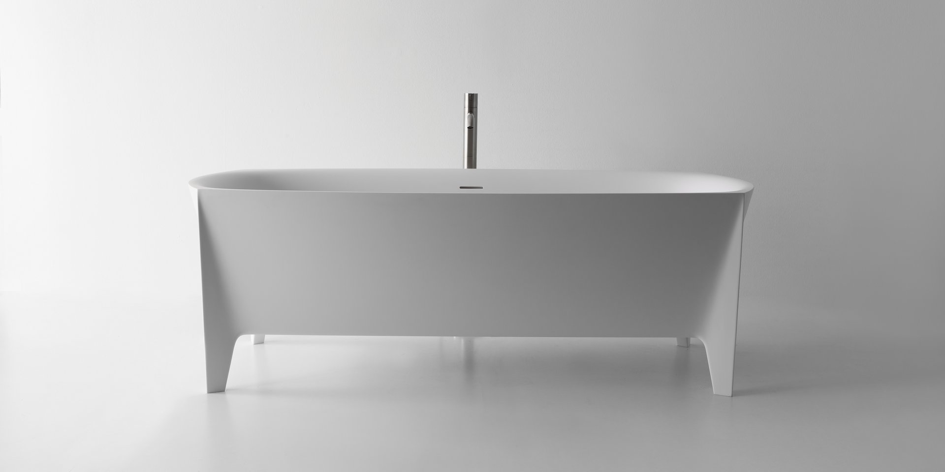 Rectangular Cristalplant bathtub with feet, complete with drain with pressure plug, siphon and flexible tube, that can be lacquered externally.