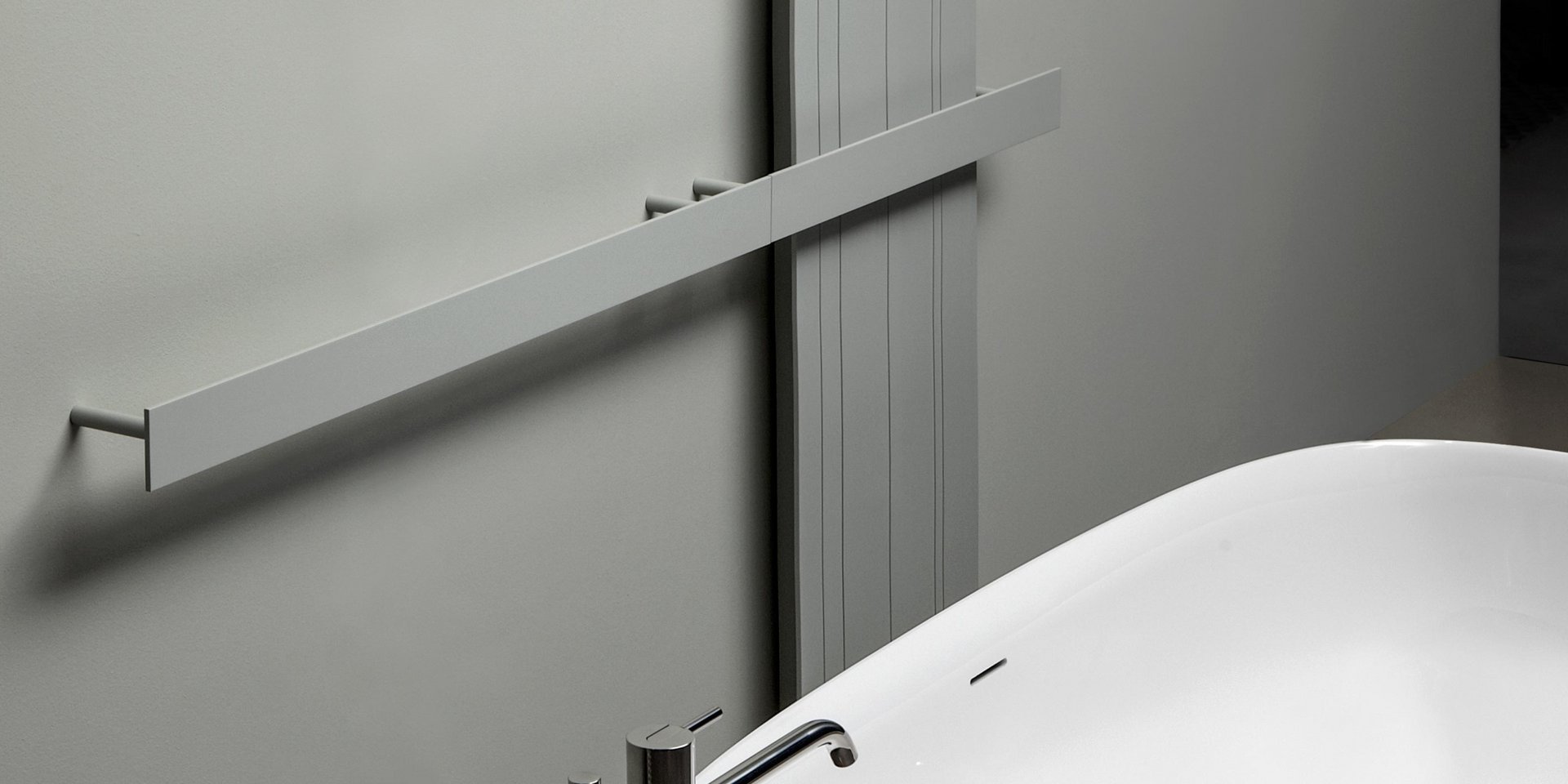 Towel holder in aluminum lacquered matt white, black or embossed as per our colour chart.