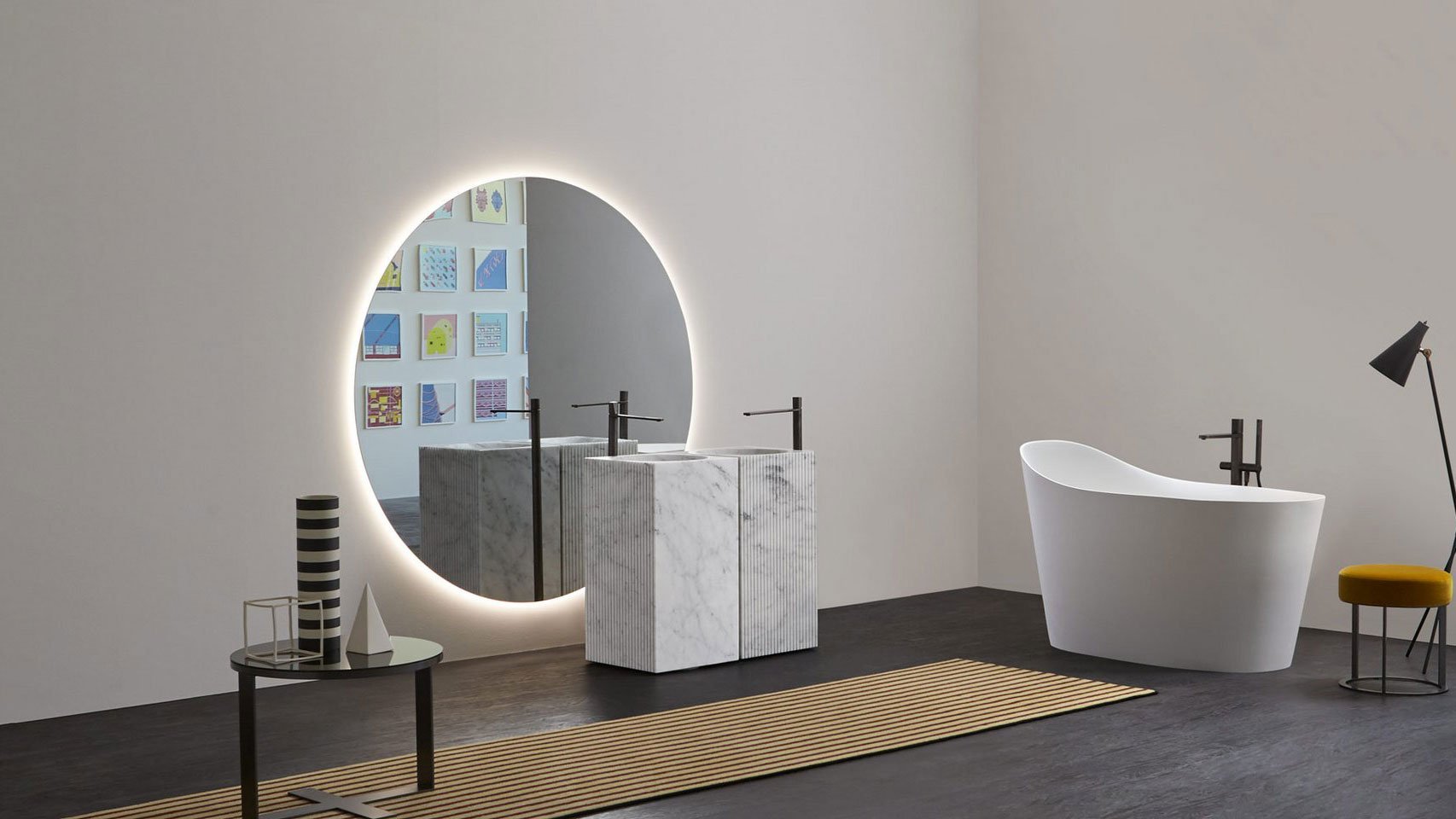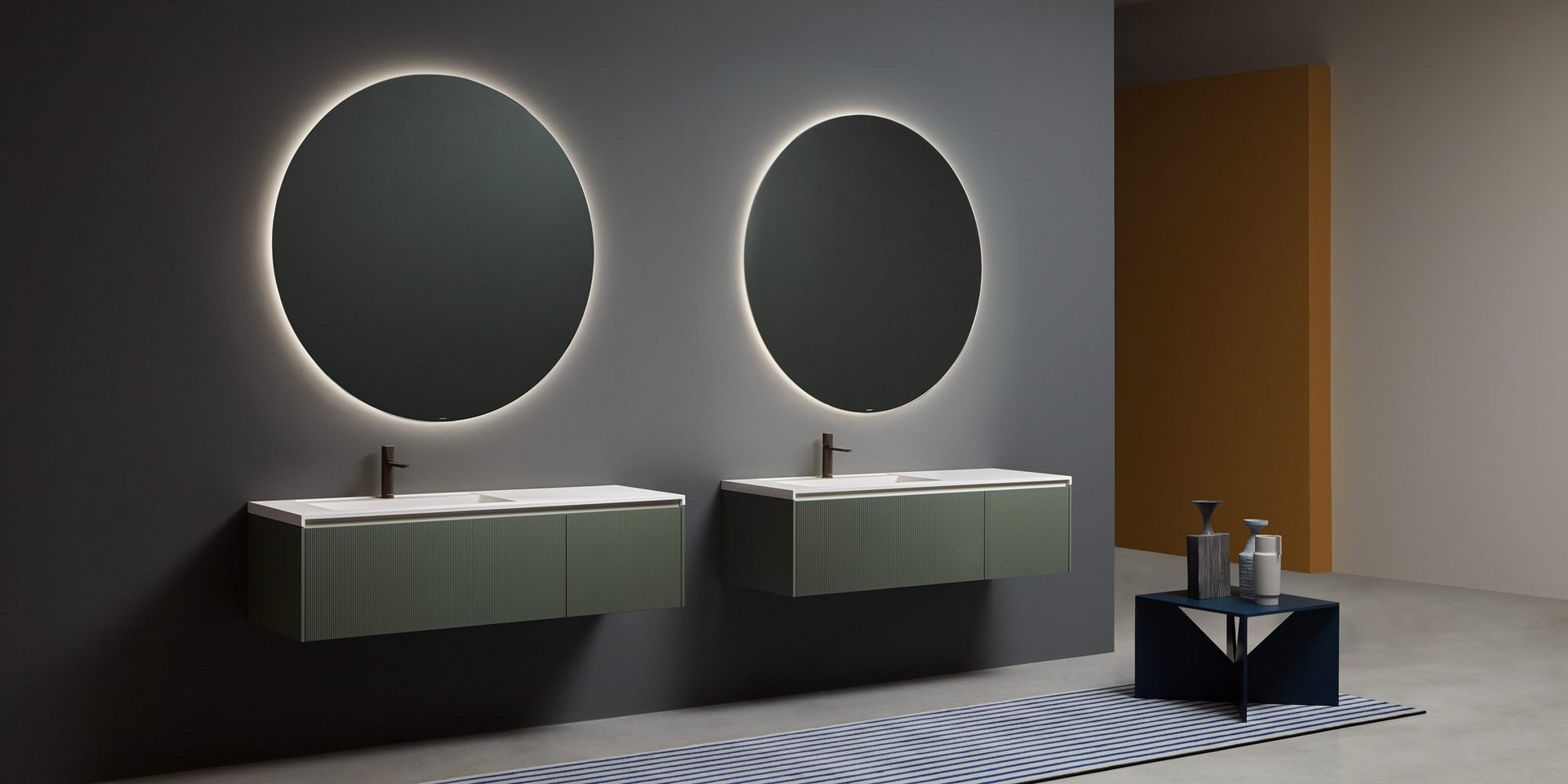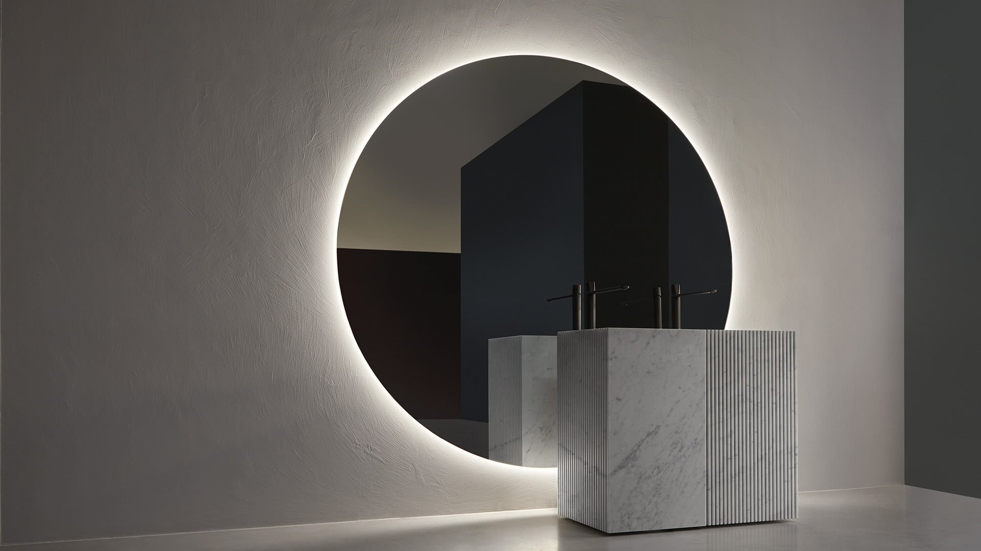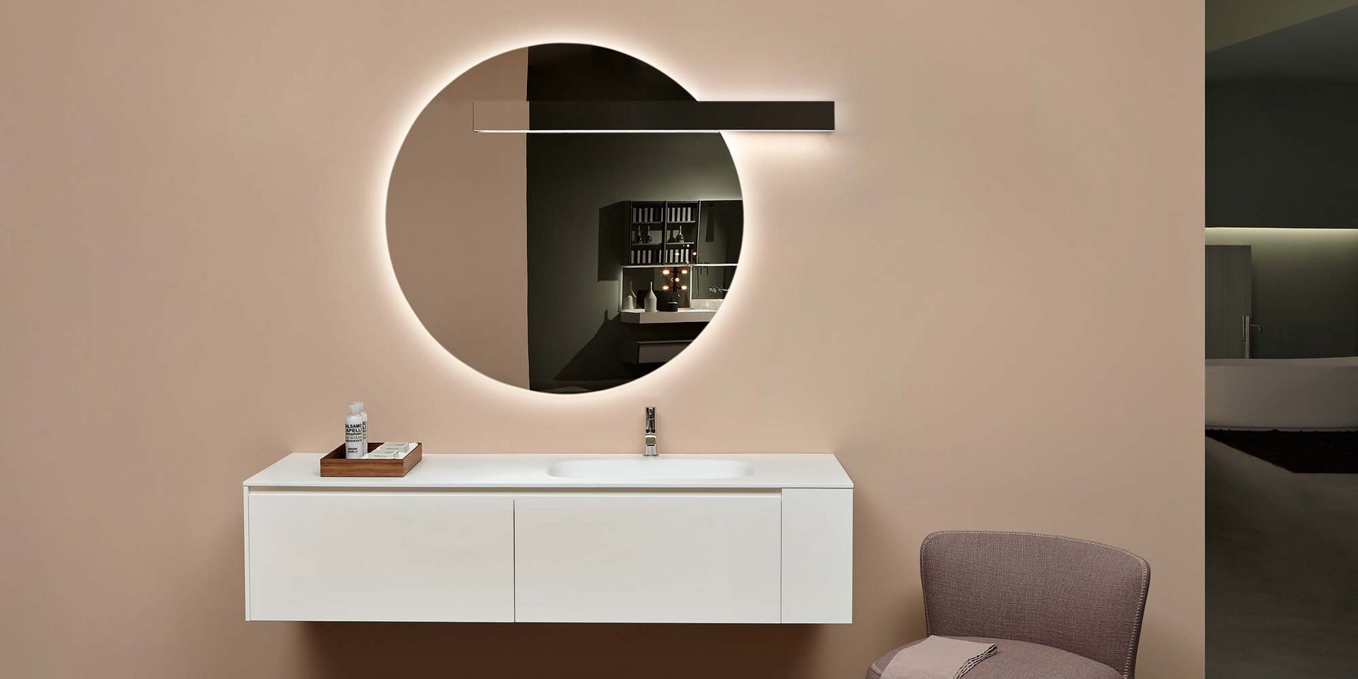 Polished edge mirror 5 mm thick with white led lighting, complete with frame and lamp LUCENTE, right or left hand version.