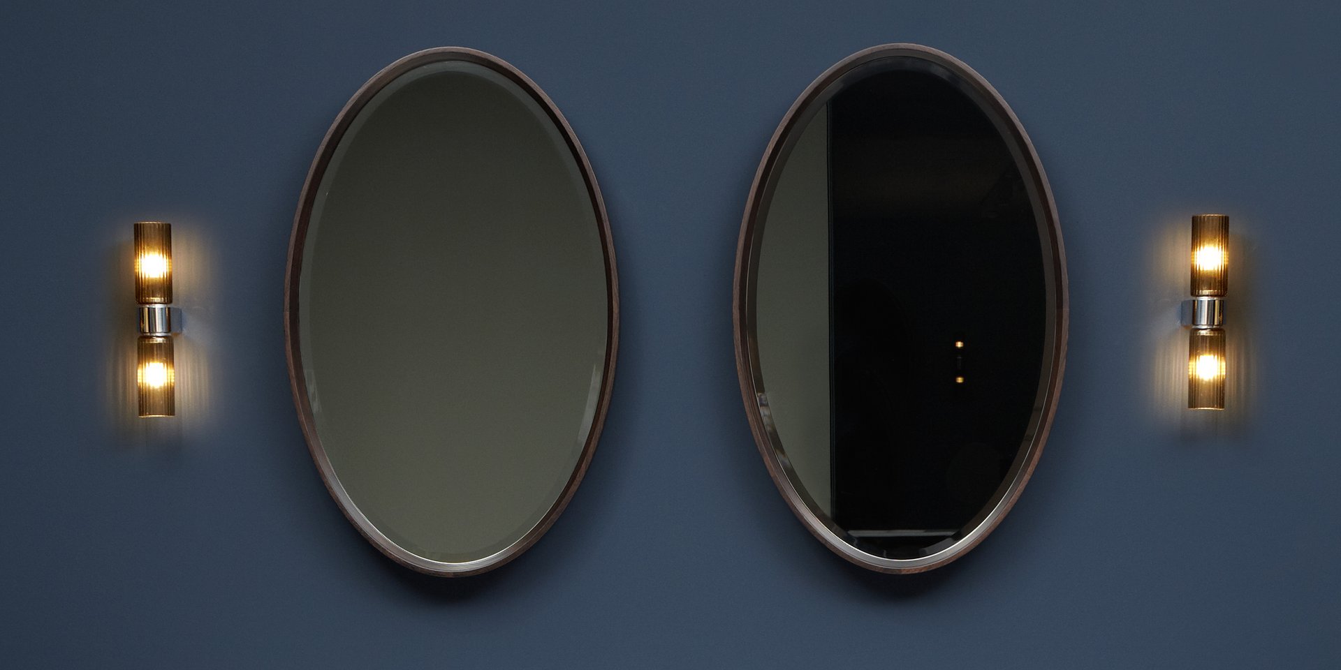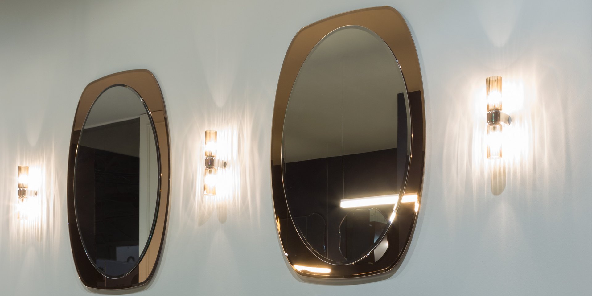 Wall Led lamp with blown bronzed glass and polished brass supports complete with 2 bulbs.