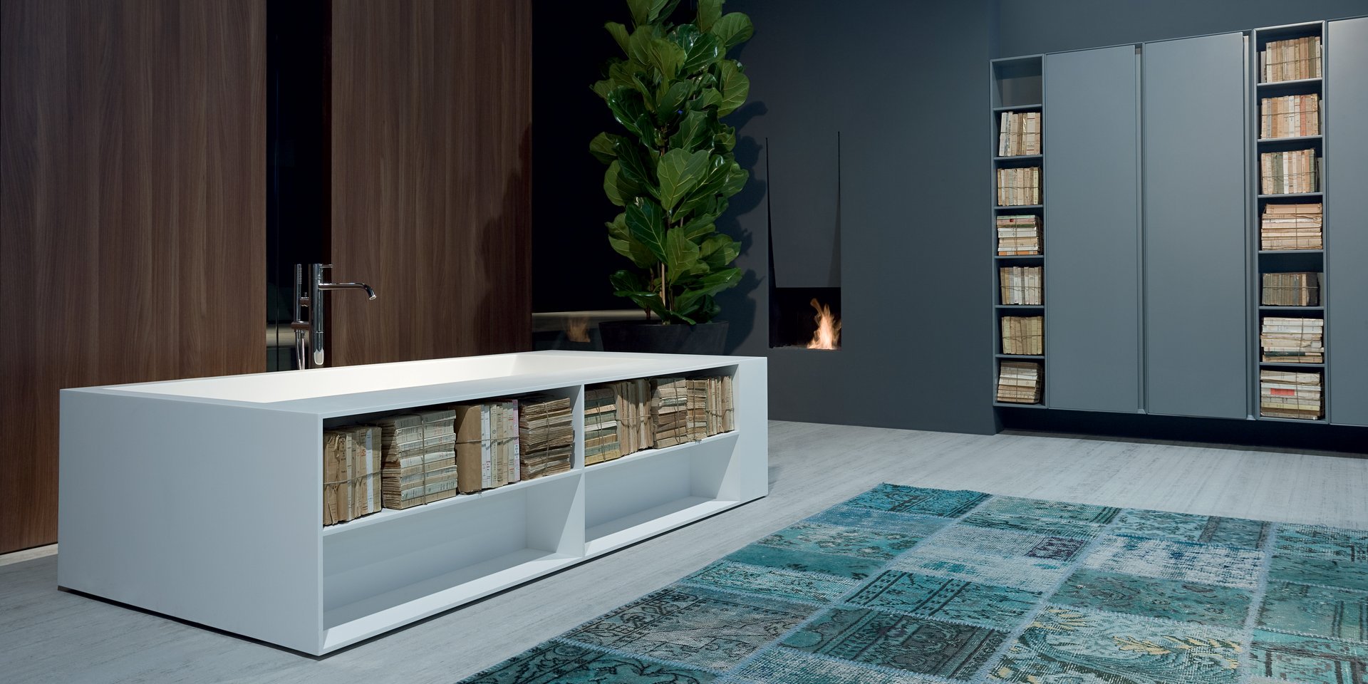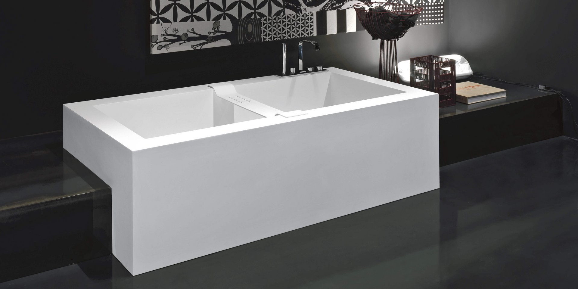 BIBLIO13 :Rectangular Corian bathtub, complete with regulating feet and drain with pressure plug.Dimensions cm 180 x 80 x 53,5