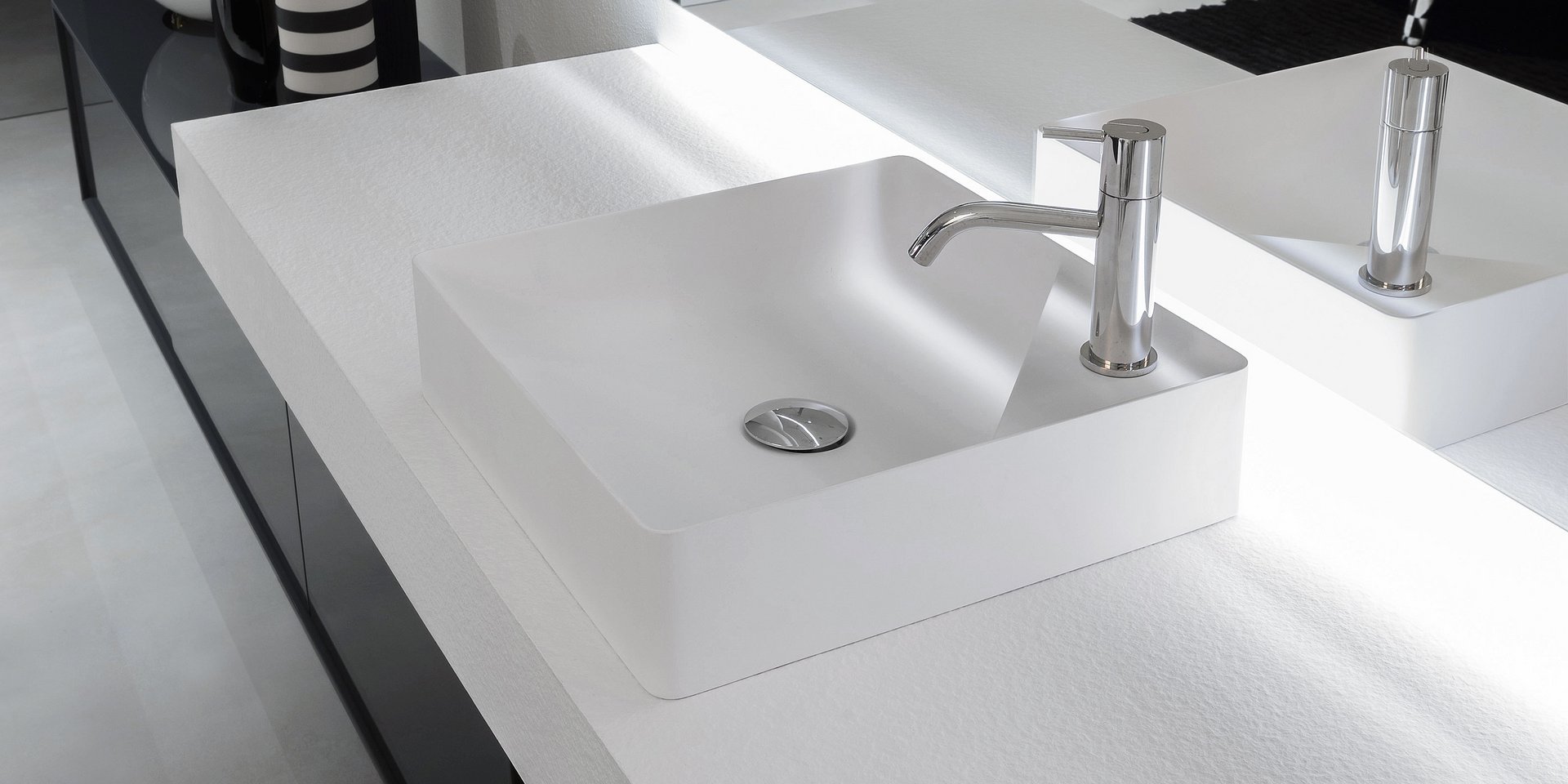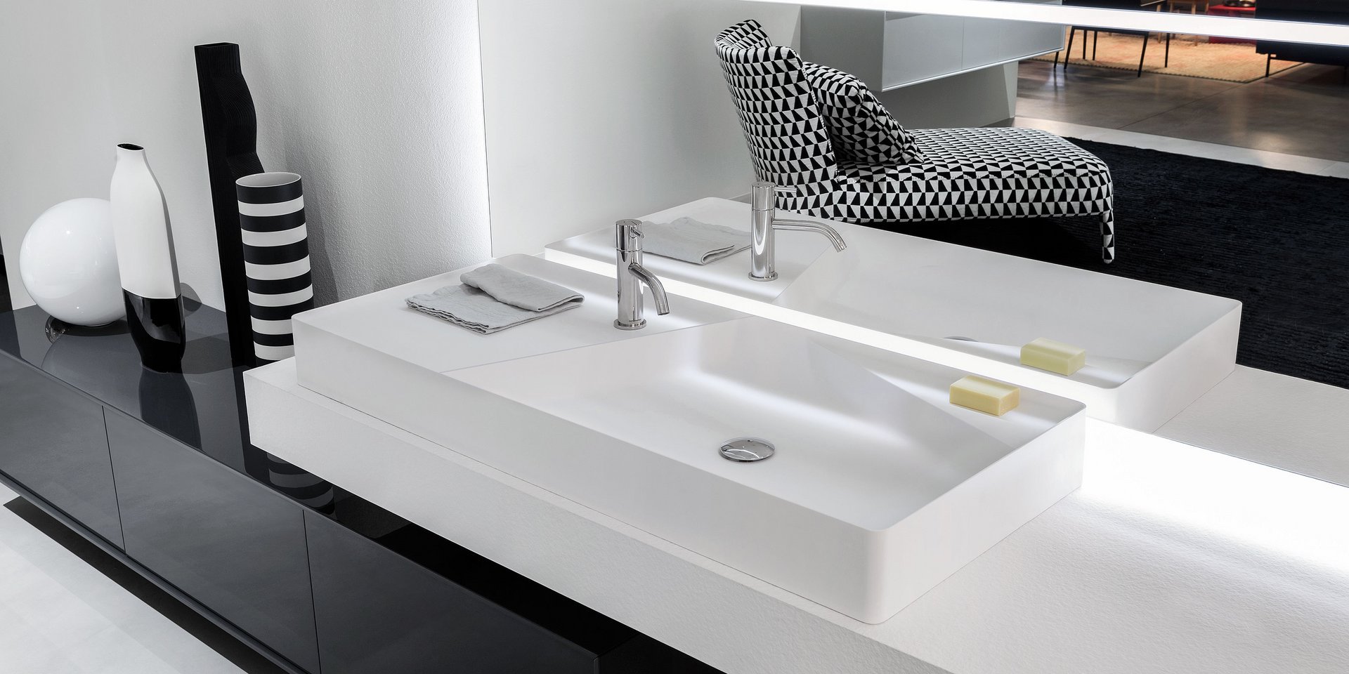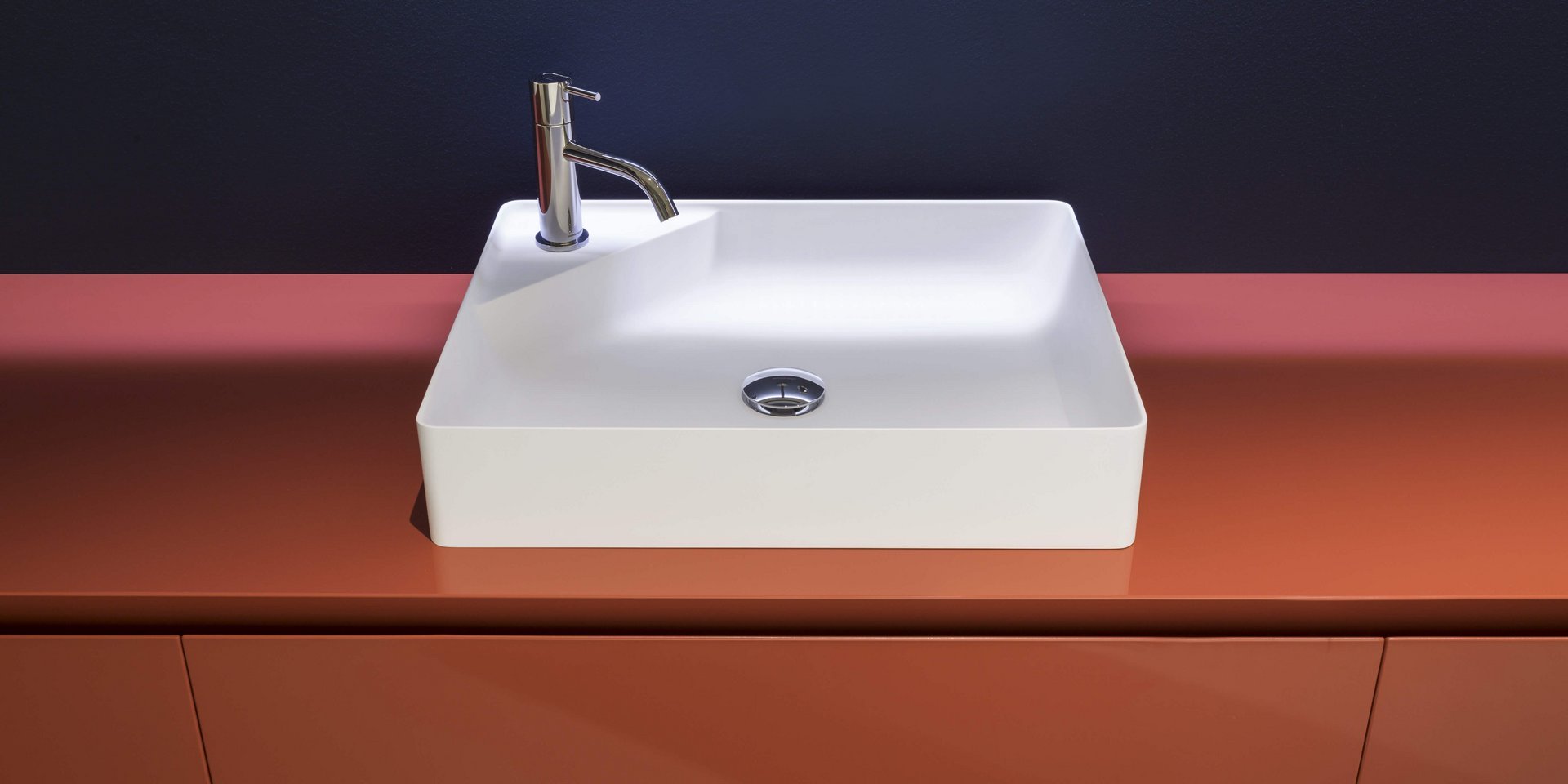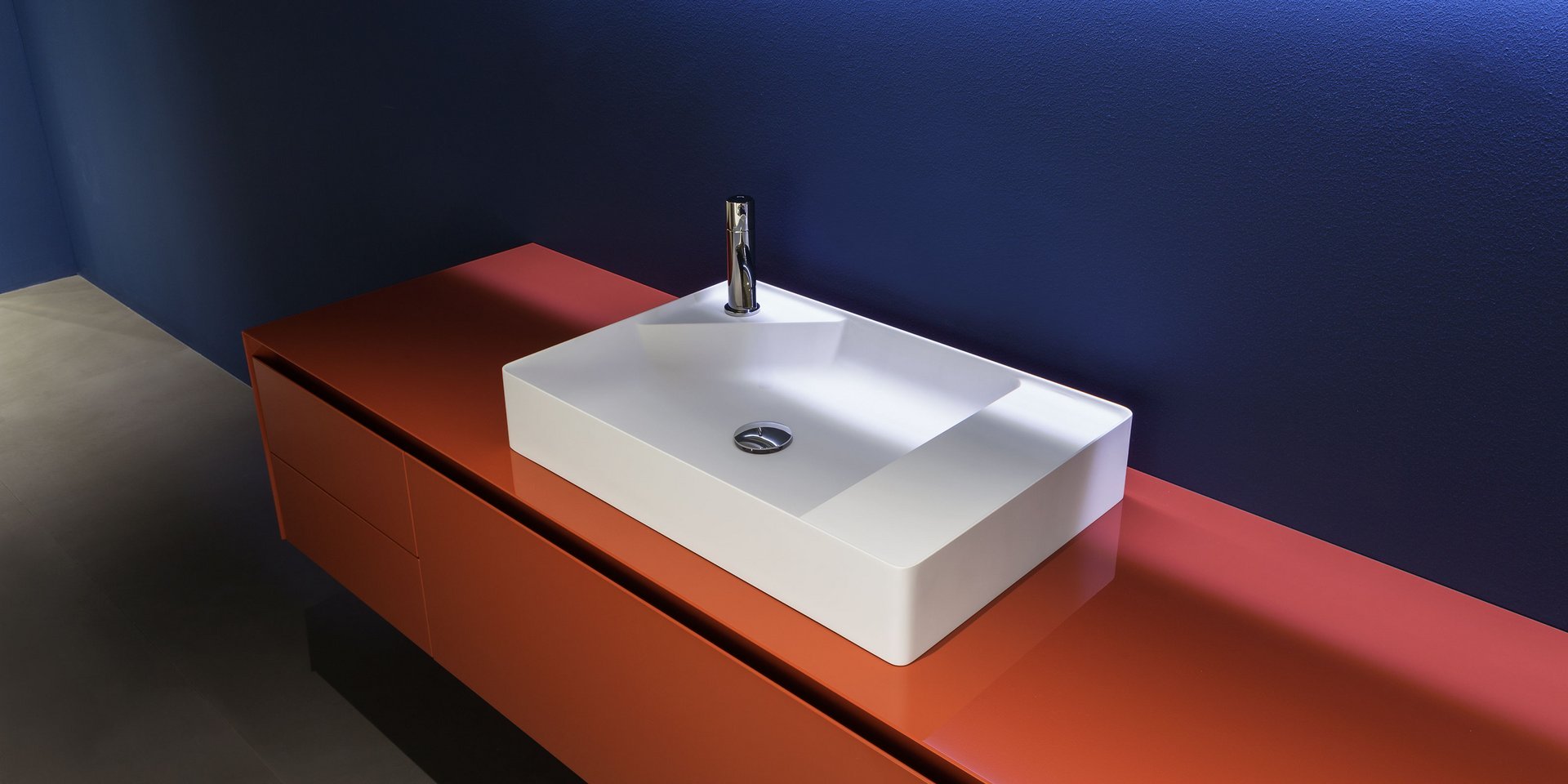 Rectangular top or wall mount Flumood? sink complete with drain pipe fitting and opening plug. Can be lacquered externally.