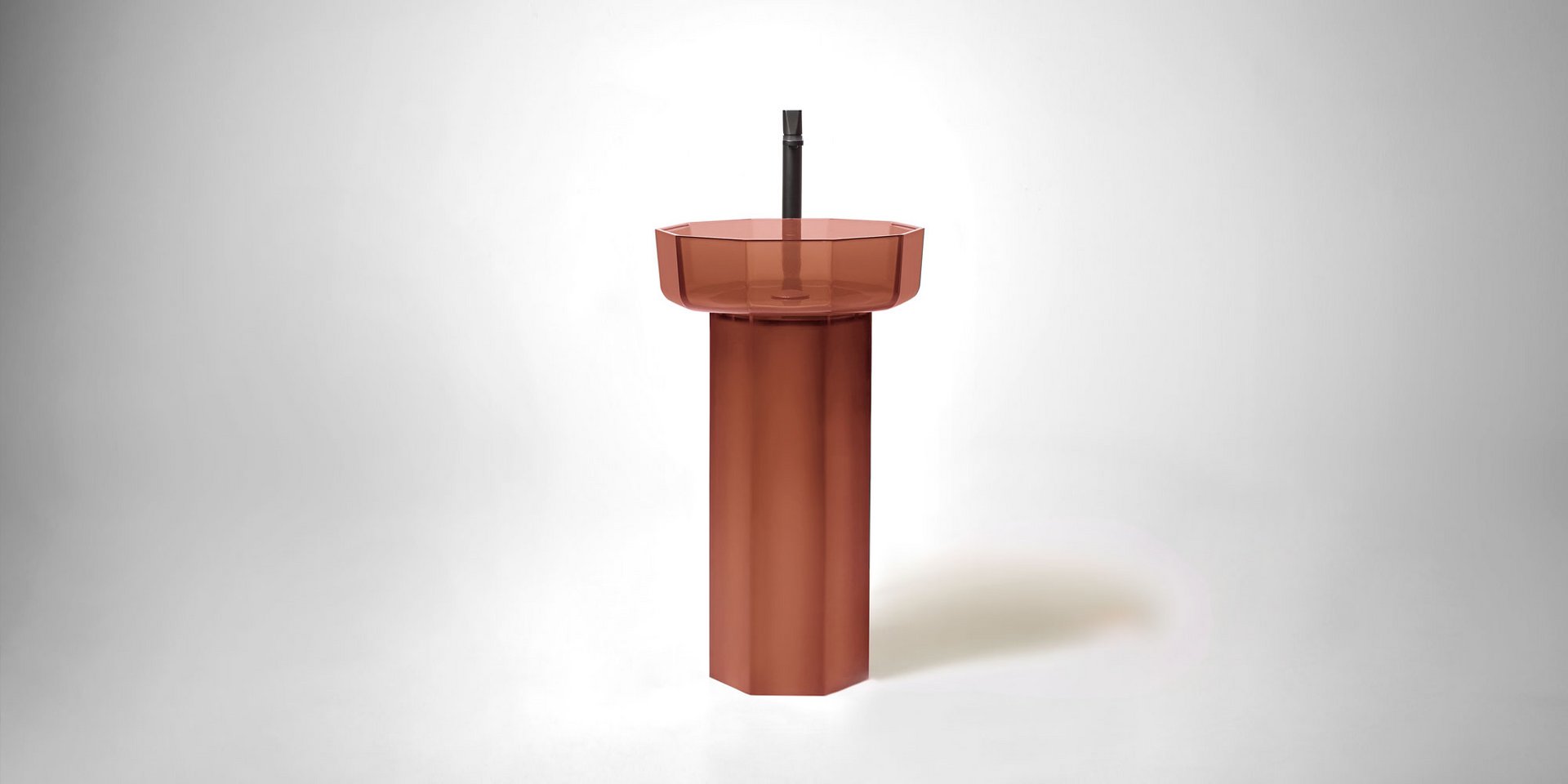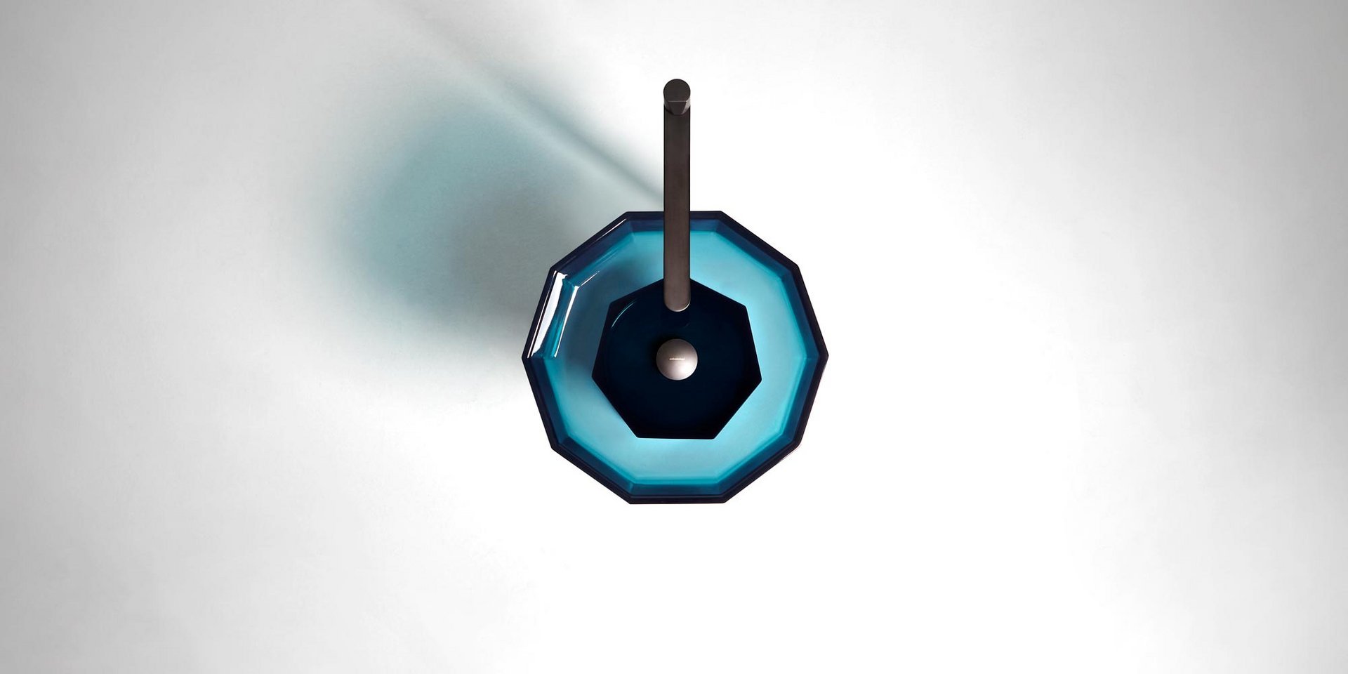Decagonal shape sink in Cristalmood available in various colors as per our color chart, to be used top mount or combined with base Art. OPALE20 or Art. OPALE21, complete with drain pipe fitting and open plug.