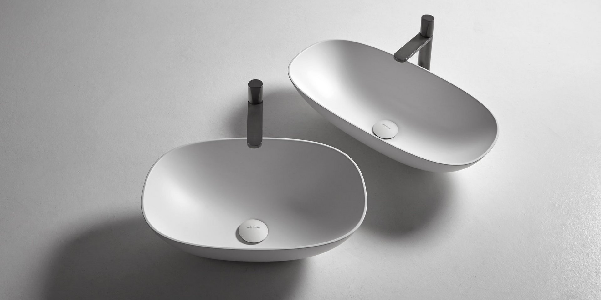 Round top mount Flumood, can be externally lacquered in all colors of our collection or Ceramilux sink complete with drain pipe fitting and open plug.